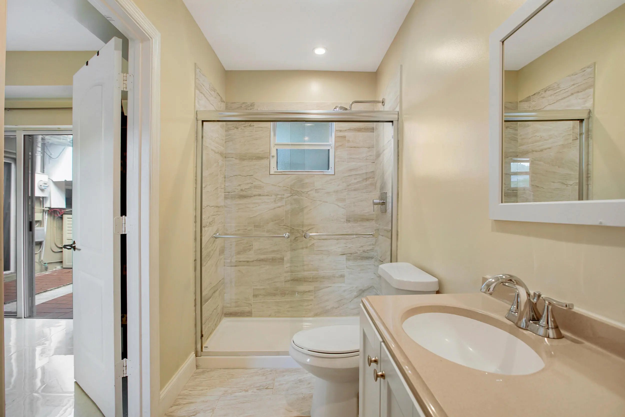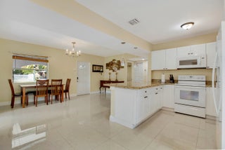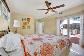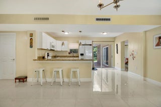 Welcome to this single-story 3-bedroom, 2-bath home offering comfortable living with 24x24 porcelain tile flooring throughout and abundant natural light. The updated kitchen features granite countertops, bar seating, and a functional layout that opens to the main living areas—perfect for everyday living and entertaining. Both bathrooms have been updated with modern finishes. The spacious primary suite includes an ensuite bath, walk-in closet, and sliding doors that lead directly to the backyard. Outside, enjoy a large backyard with a covered patio and mature landscaping including fruit trees like mango, star fruit and avocado, creating a private setting for relaxing or hosting gatherings. Additional upgrades include a tankless water heater and a new HVAC system installed in March 2025.