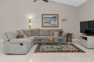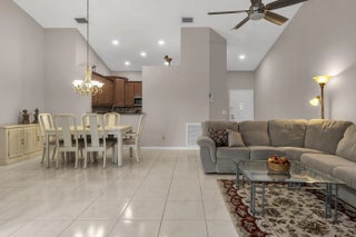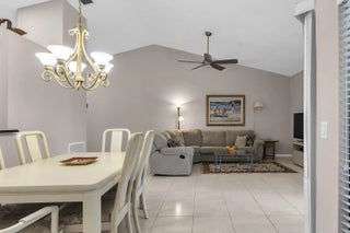 This lovely home can be had fully furnished and is move in ready. PLEASE NOTE. The HOA has significantly been reduced. HOA fee is the lowest in Aberdeen East. This home has a courtyard entrance with 2 bedrooms and 2 full baths, and an enclosed air-conditioned Laini with a spectacular lake view, The updated kitchen has lots of counter space and cabinets with a eat in feature. The Kitchen has a view of the Dining and Living room. This home has a full one car garage and attic space. Aberdeen is close to shopping and entertainment and has great amenities with many activities available to residents. Community pools, Tennis, Pickleball, Clubhouse and Gym. Priced right to move fast, come see what can't be missed. Easy show, Vacant and on a lock box. 55 and over community. Not gated. Pets allowed.