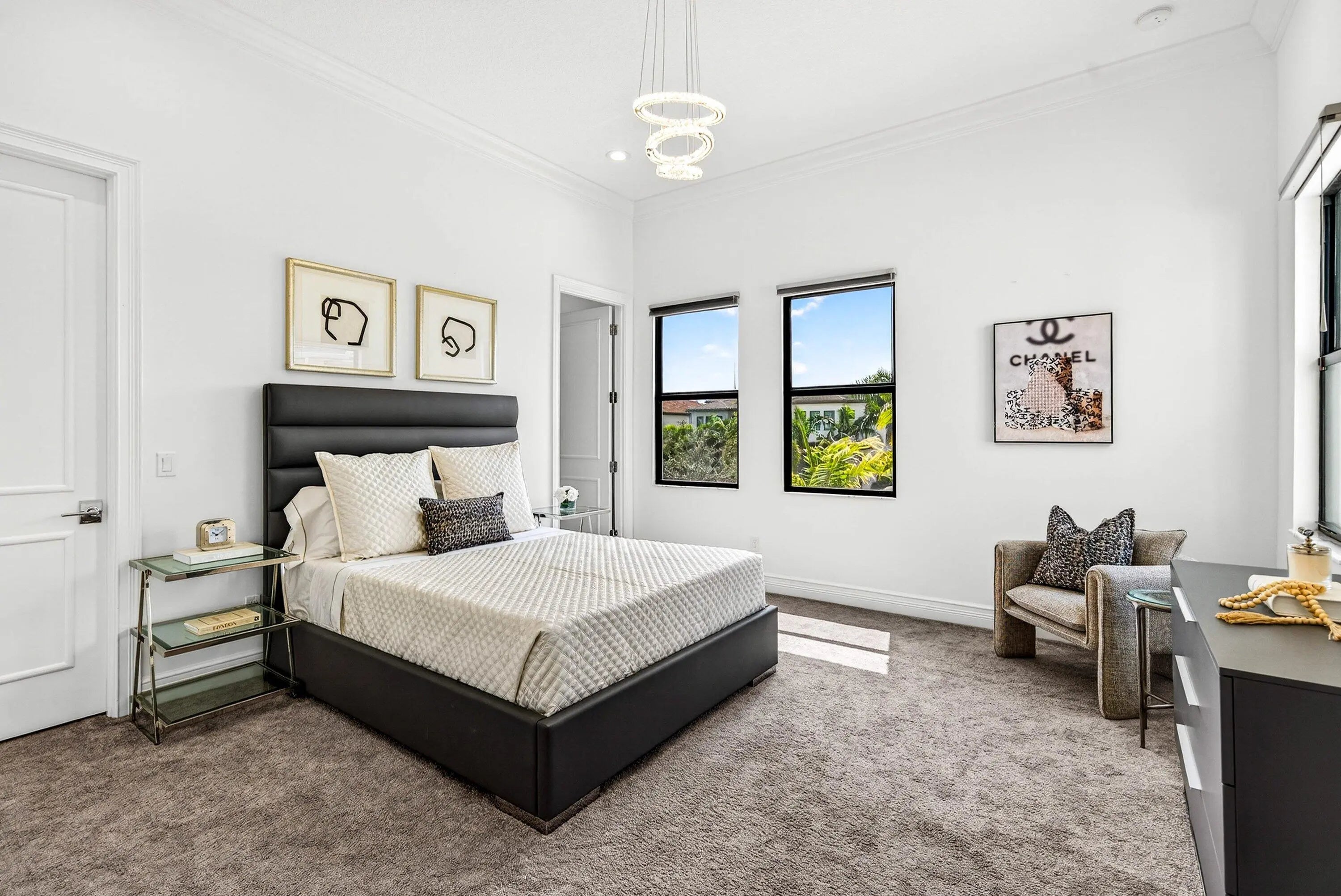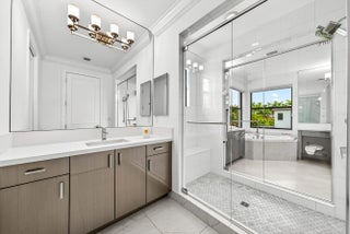 Welcome to a truly turnkey, designer finished masterpiece in the prestigious Boca Bridges. Set on an expansive lot with no rear neighbors, this Sanibel model offers over 5,330 sq ft of refined living with 5 ensuite bedrooms and 6.5 baths. Elegant interiors showcase a striking porcelain accent wall, upgraded chef's kitchen, custom millwork, Google smart home integration, Lutron lighting, and Sonos sound throughout. The private backyard features a saltwater pool and serene outdoor living. Boca Bridges offers resort-style living with no club dues, including a 27,000 sq ft clubhouse, gourmet restaurant, resort pools, state of the art fitness center, tennis, pickleball, indoor and outdoor basketball, splash park, and more.