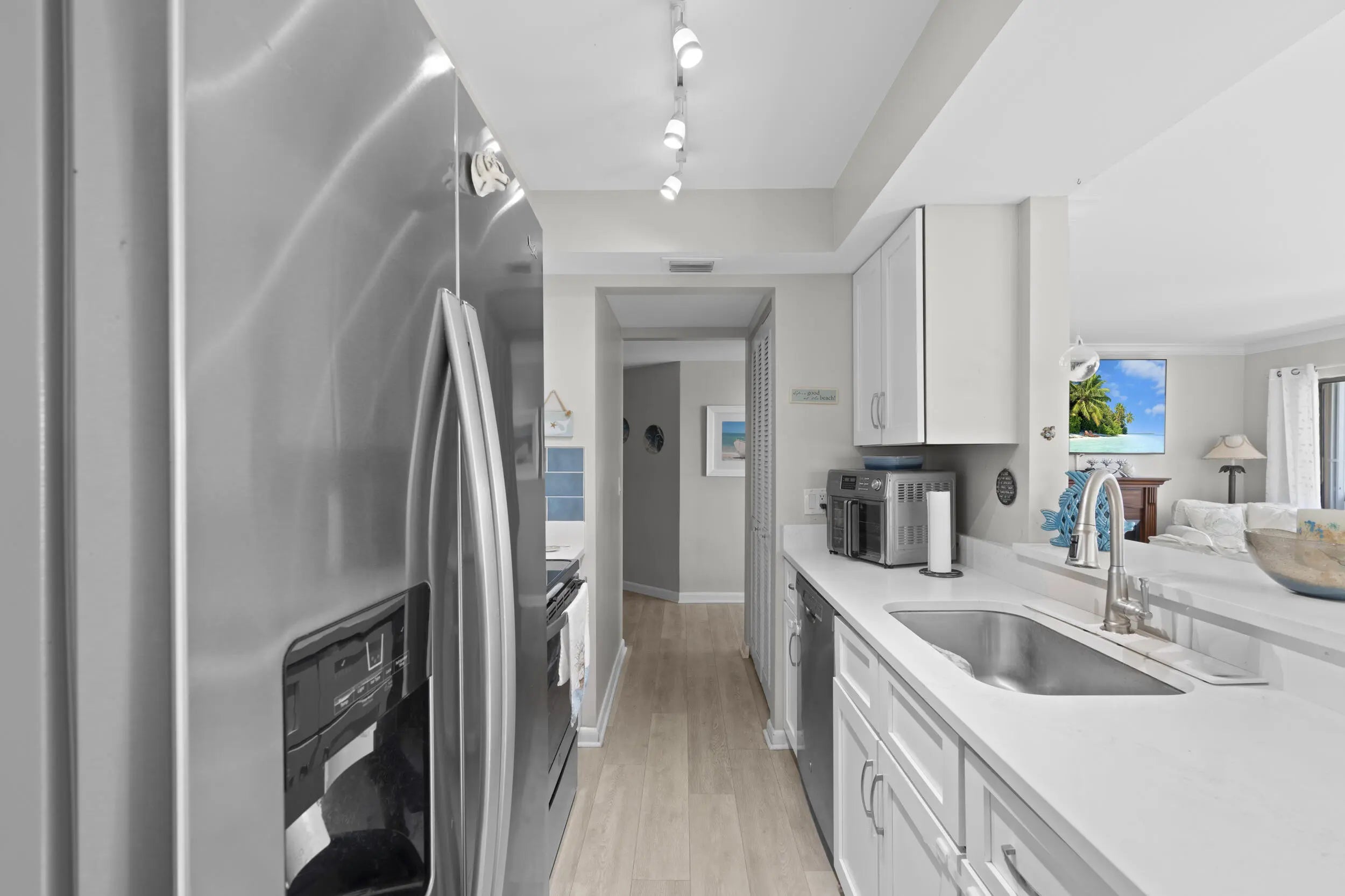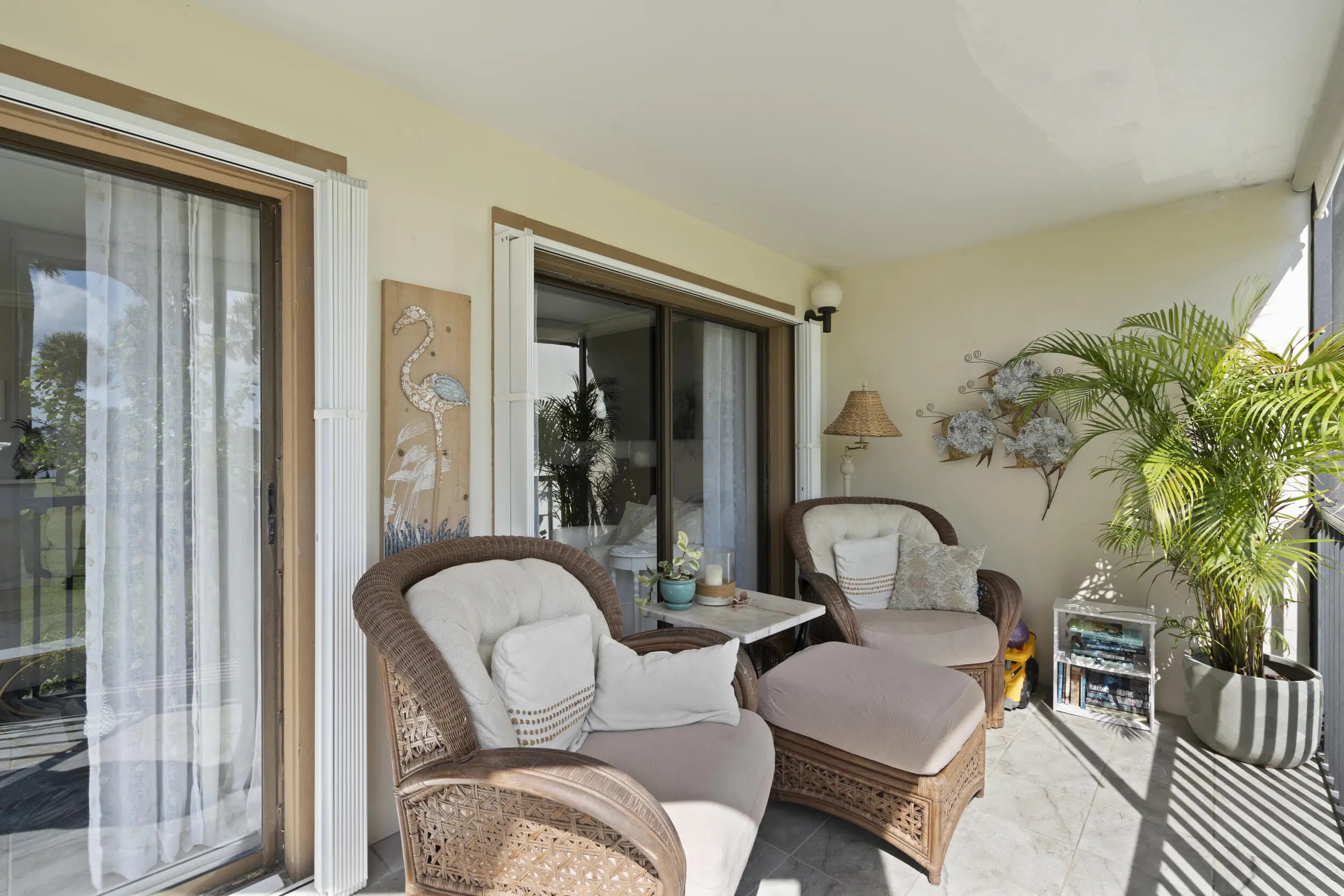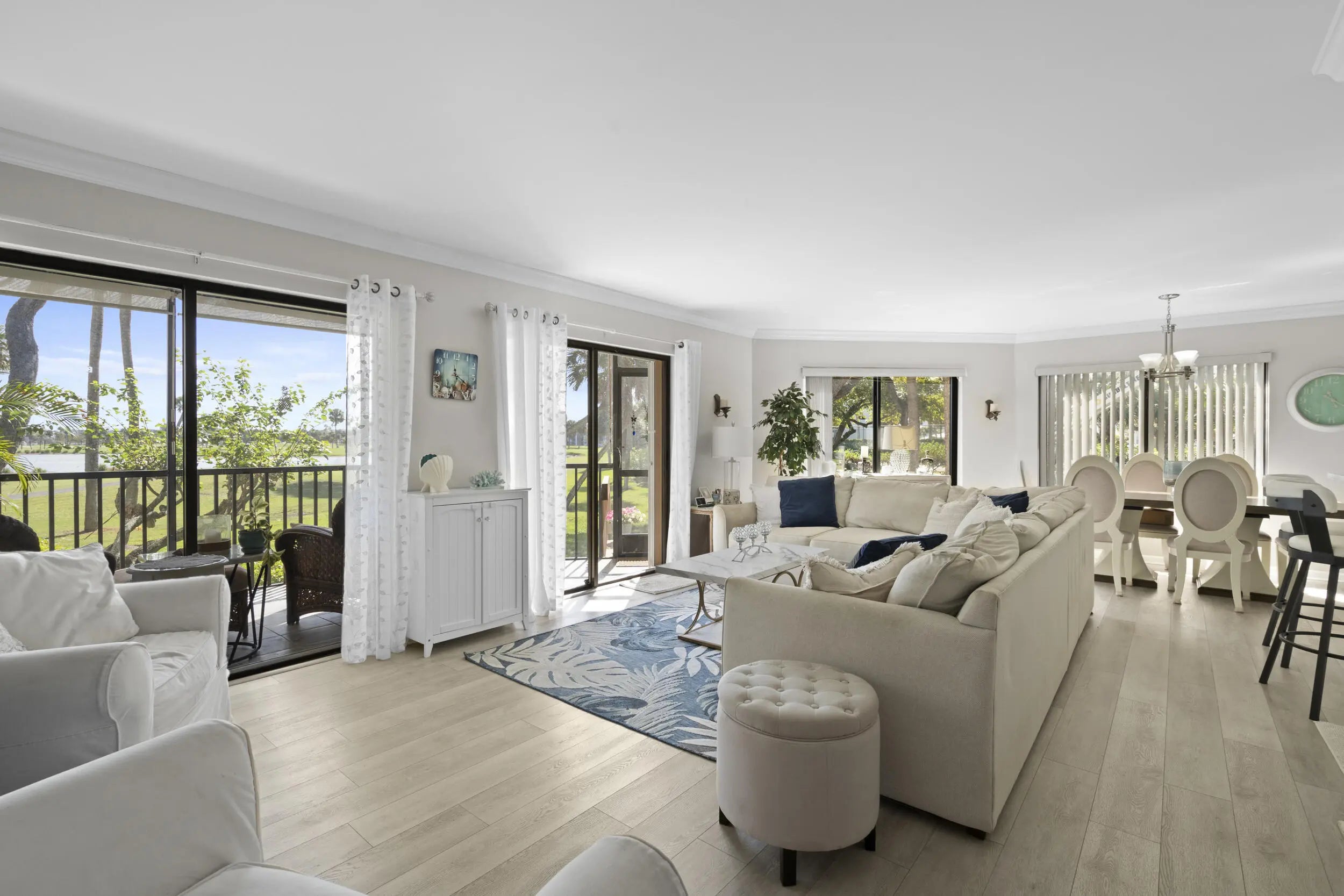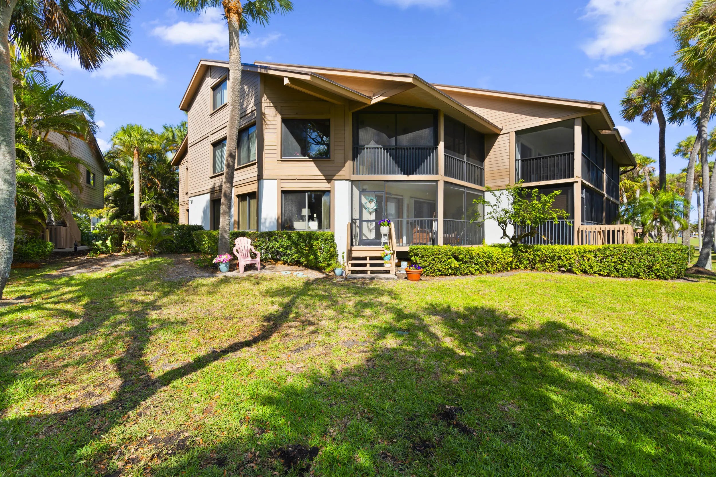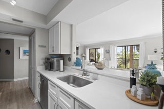 Properties like this rarely come on the market! This spacious 2-bedroom, 2-bath corner unit offers the convenience of first-floor living with wide open space and an airy layout that feels comfortable and inviting from the moment you walk in. Enjoy peaceful views of the pond and golf course right from your screen porch creating the perfect backdrop for relaxing morning. Across the street to the river to enjoy the beautiful sunsets. The kitchen features elegant quartz countertops and opens to the living area, making it ideal for entertaining or simply enjoying the spacious design. Both bedrooms are generously sized, offering comfort and privacy, while the well-maintained community provides a wonderful lifestyle just minutes from the beach. Now is the time to own your piece of paradise.