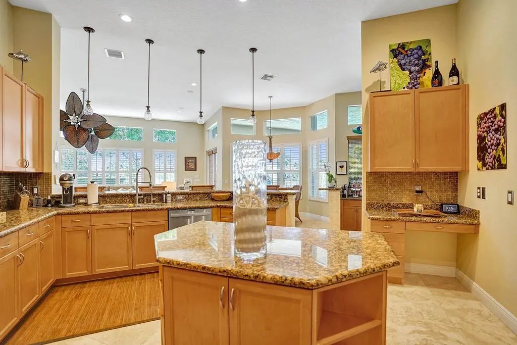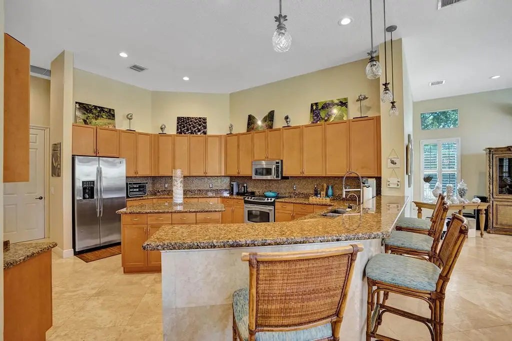 Absolutely exquisite fully furnished luxury rental in the exclusive Riverstone community in Davie. This is a large 5 bedroom home with an additional office/den (potential 6th bedroom). It is currently set up as 4 bedrooms, an office and home gym. This gorgeous estate home is loaded with upgrades and boasts soaring volume ceilings, travertine flooring in the common areas & bamboo wood in the bedrooms, large open kitchen with additional wet bar area, separate living, family and formal dining, desirable split floor plan and much more! The home site on a large corner builder's acre lot with relaxing lake views. The back yard features a large covered area and custom tropical pool ideal for relaxing with the family or entertaining guests. Rentals of this quality don't come up often.