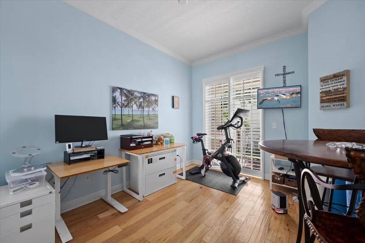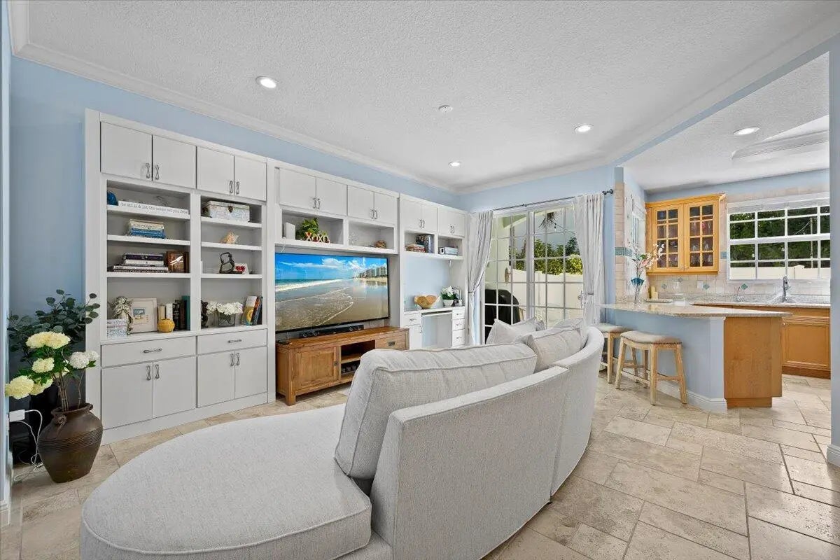 Enjoy the best of coastal living just steps from the beach in this light, bright, and beautifully maintained townhome in Juno Beach. Located in a charming boutique community, this move-in ready residence offers exceptional walkability to local shops, restaurants, Pelican Lake, the Juno Beach Pier, and the Atlantic Ocean. The updated interior features travertine tile flooring throughout the main living level, crown molding, a custom built-in entertainment center, and hurricane impact windows. The open living and dining areas flow seamlessly to a private tiled patio, perfect for outdoor entertaining and grilling. Upstairs, the staircase and second floor showcase beautiful hardwood flooring, along with fully finished walk-in closets and two private balconies that invite in the ocean breeze. This exceptional townhome offers comfort, convenience, and the relaxed lifestyle that makes Juno Beach so special.