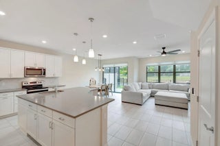 Stunning lakefront townhome in the gated community of Oak Tree. Built three years ago, this modern 3-bed, 2.5-bath with a 2-car garage offers a stylish design. The open-concept floor plan features sleek ceramic tile and a contemporary kitchen with white shaker cabinetry, quartz countertops, stainless steel appliances, and a large center island. Upstairs, the spacious primary suite includes dual walk-in closets and a spa-inspired bathroom with double vanities. Two additional bedrooms, a full bath, and an upstairs laundry room with a utility sink and extra storage complete the second floor. Enjoy lake views and Oak Tree's exceptional resort-style amenities, including a newly built clubhouse, fitness center, pickleball, dog park, BBQ, screened bar, and a beautiful pool with cabanas.