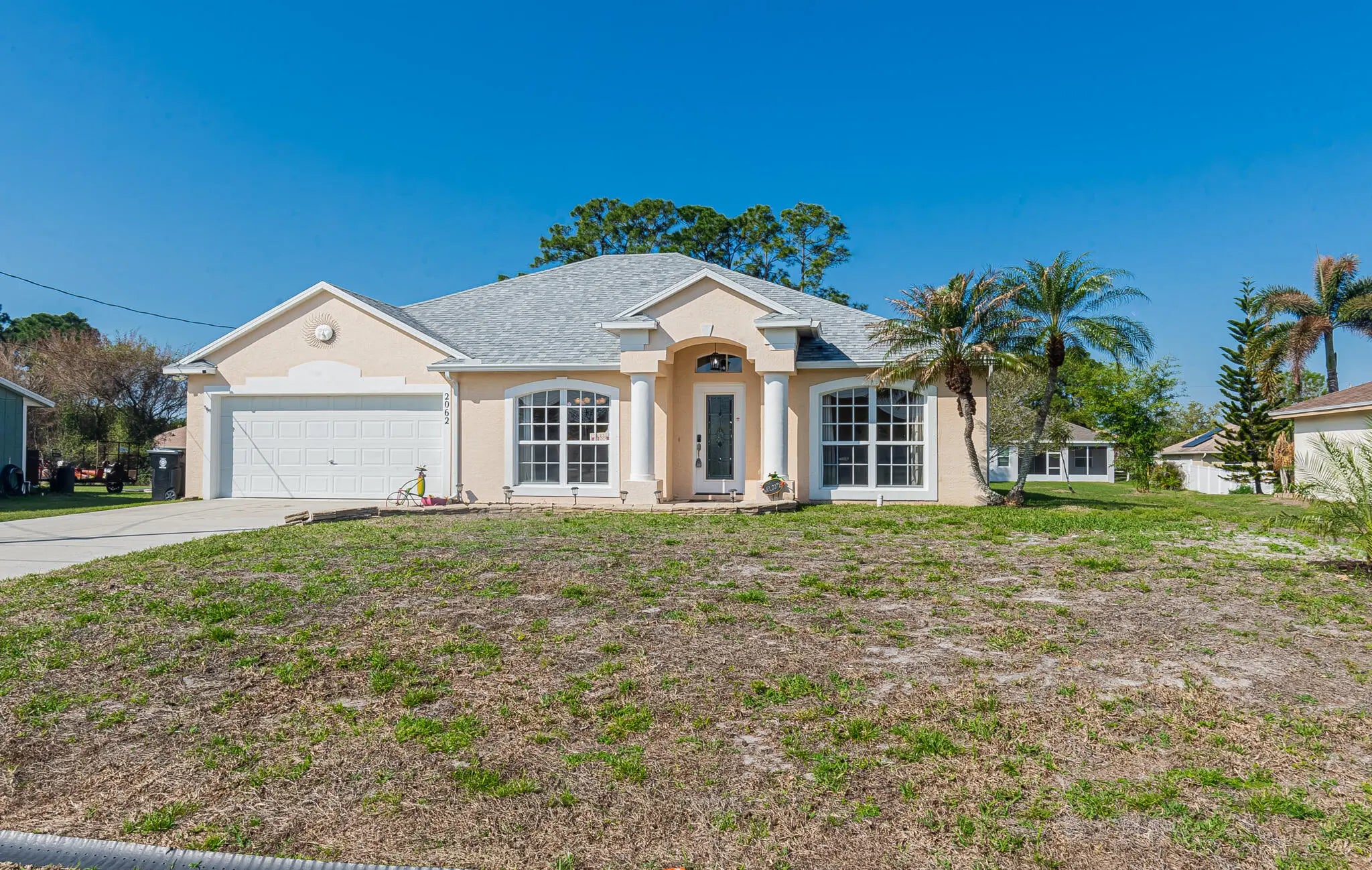 Welcome to your tropical oasis in Port St. Lucie! This meticulously maintained 3-bedroom, 2-bathroom, 2-car garage home offers the perfect blend of comfort and Florida elegance. Step inside to discover a bright and airy open floor plan featuring beautiful tile flooring throughout—no carpet here! The heart of the home is a spacious kitchen designed for entertaining, complete with sleek Corian countertops, stainless steel appliances, and a functional center work island. Slide open the doors to your private outdoor retreat. The expansive covered lanai leads to a stunning screened-in, heated pool featuring a relaxing spillway spa. Whether you're hosting a summer BBQ or enjoying a quiet morning coffee, this backyard setup is a dream. 2022 Roof & 2022 Pool Heater. Great location!