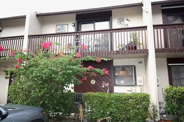 Welcome to Villager Townhomes, 2 bedrooms, 2.5 bath 1250 sq ft located in beautiful Deerfield Beach. Recent updates include new roof 2024, new AC 2023. AC includes UV allergen deterrent. Both bedroom suites w/private baths, perfect for sharing the property. The primary bedroom(14x14) w/large walk-in closet(10x5) on-suite w/double sink and glass doored shower/tub combo. The secondary bedroom (14x10) w/newly remodeled bath, outdoor balcony w/view of large green space. Renovated baths and updated kitchen. Laminate and tile flooring, custom woodworking built-ins and shelving. W/D, extra storage closet. Spacious screened in private lanai for relaxing. Hurricane protected windows and doors. Maintenance includes pool. building maintenance. Exterior building covered by association insurance.