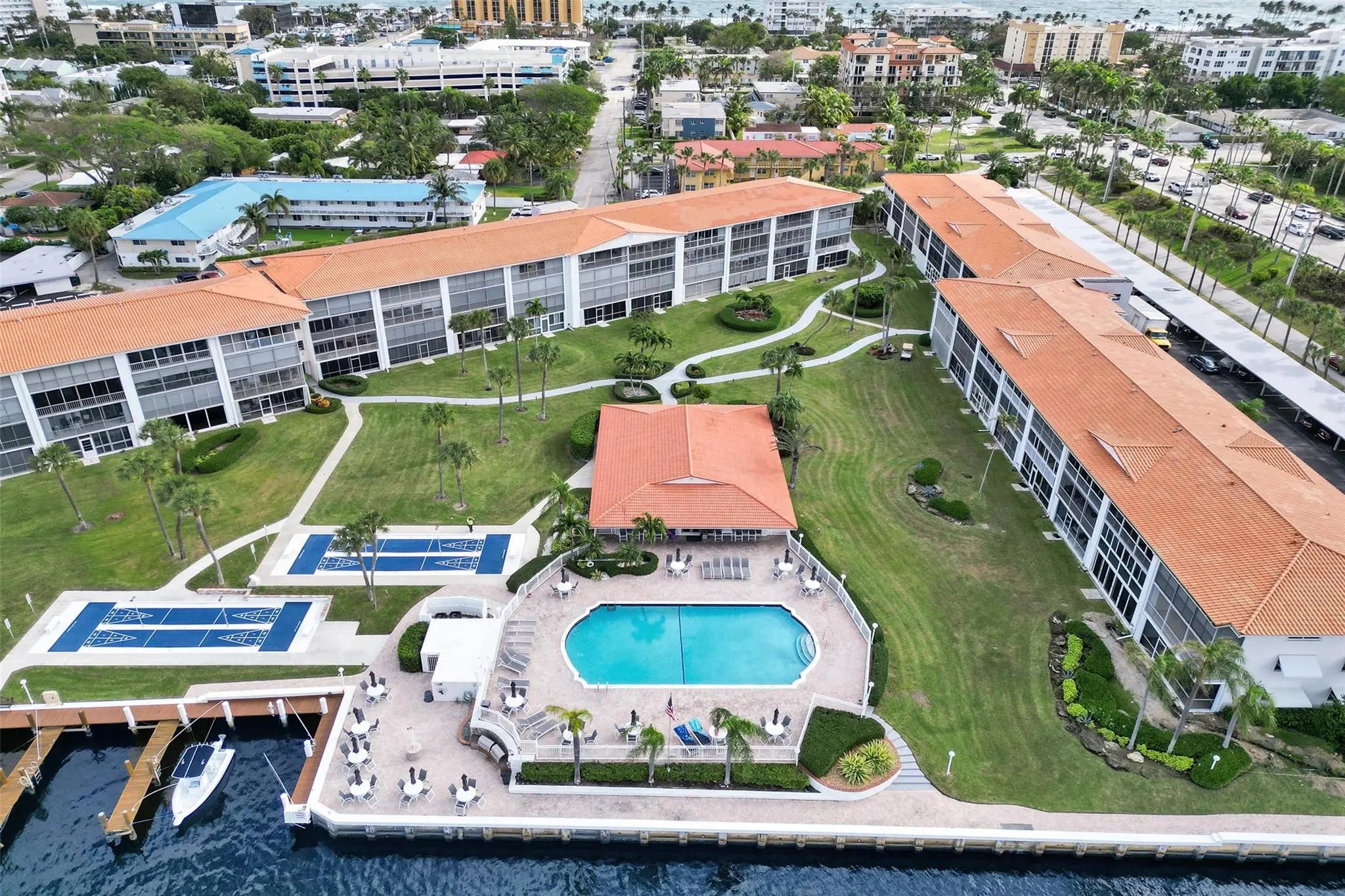 PRICE REDUCTION. Welcome to Penthouse North, a hidden gem on the Intracoastal in beautiful Deerfield Beach! This spacious furnished 2-bedroom, 2-bath residence with COVERED PARKING offers stunning direct Intracoastal views from your private balcony—perfect for watching boats glide by and enjoying spectacular sunsets. The condo features generous living and dining areas, and large windows with accordion shutters for hurricane protection. The AC and water heater are approx 2 years old with floors and bathrooms updated approx 3 years. Penthouse North is a boutique waterfront community offering resort-style living with a heated pool, BBQ area, clubhouse, private dock (when available), and tropical landscaping. Two blocks from the beach, restaurants, and the Deerfield Beach pier.