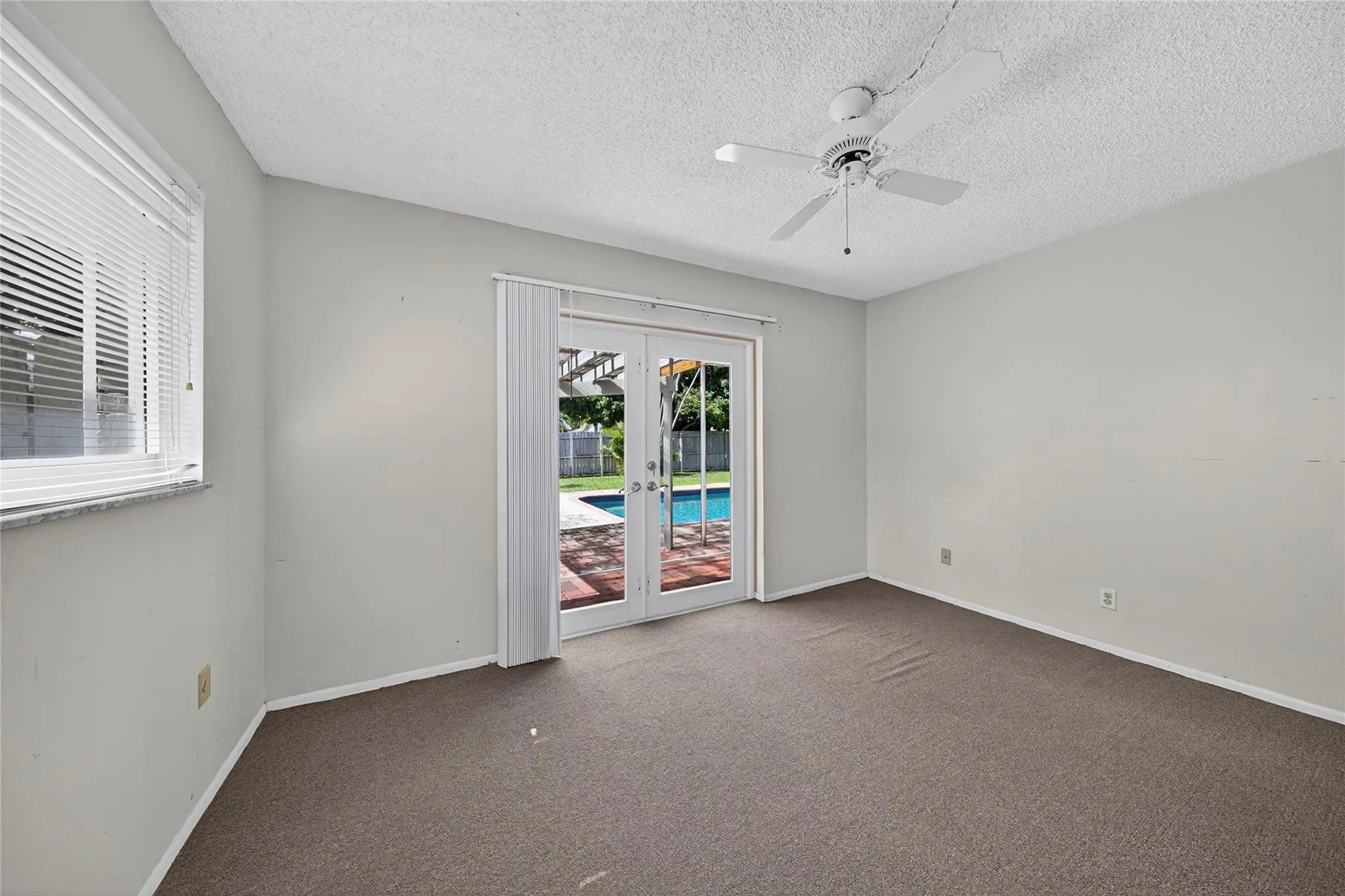 This one-story, lakefront home in Palm-Aire Village sits on a quiet cul-de-sac, featuring an oversized backyard with a pool and a peaceful water view and lake access from the edge of the property. The outdoor space includes a pool deck with a shaded area for relaxing, plus avocado, mango, and sapodilla trees. Truly a birders paradise. Inside are four bedrooms, two bathrooms, a Florida room, and an interior ready for updates. The home features impact doors and windows. The exterior was freshly painted in 2023, and the roof has solar panels installed in 2023. The AC was replaced in 2024. A one-car garage provides additional storage and parking.