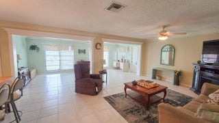 Large 2 bedroom 2 bathroom single family home in Meadows of Crystal Lake, a 55+ active adult community. All tile in the living area with laminate flooring in the bedrooms. Central air and heating unit is approximately 4 years young, Accordion shutters, Hurricane approved garage door, and 8 inch crown molding in the living area. The home is located in the back corner in a low traffic area of the community. The clubhouse has a fitness room and a heated pool. Easy to show, See Broker remarks.