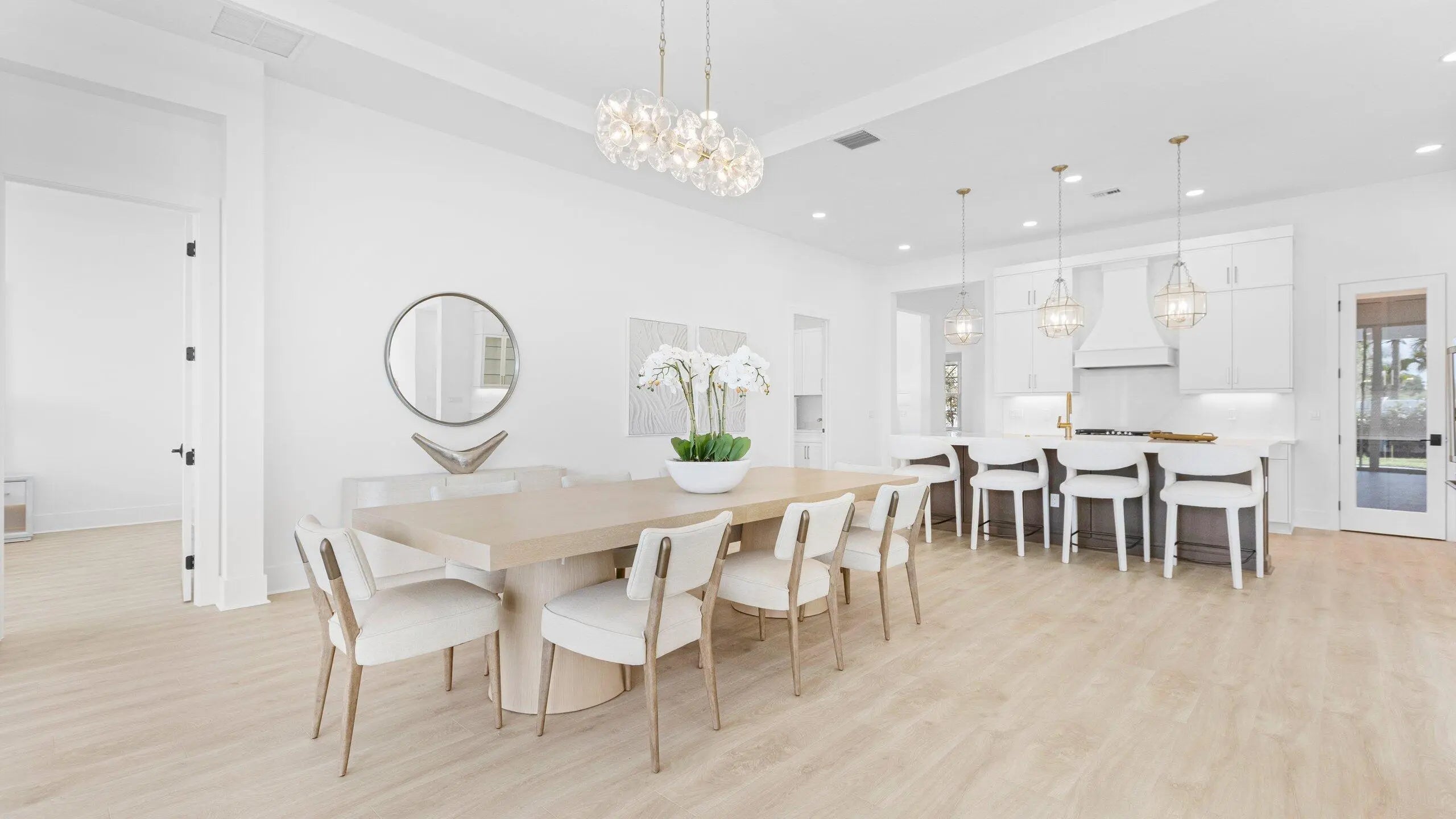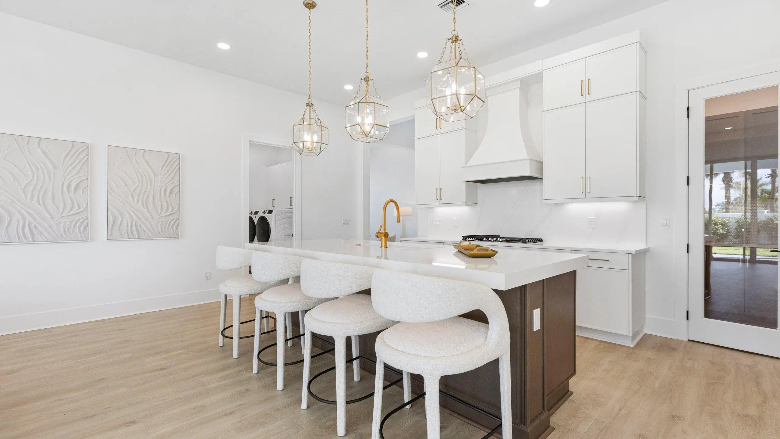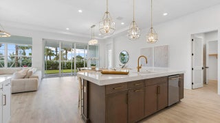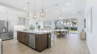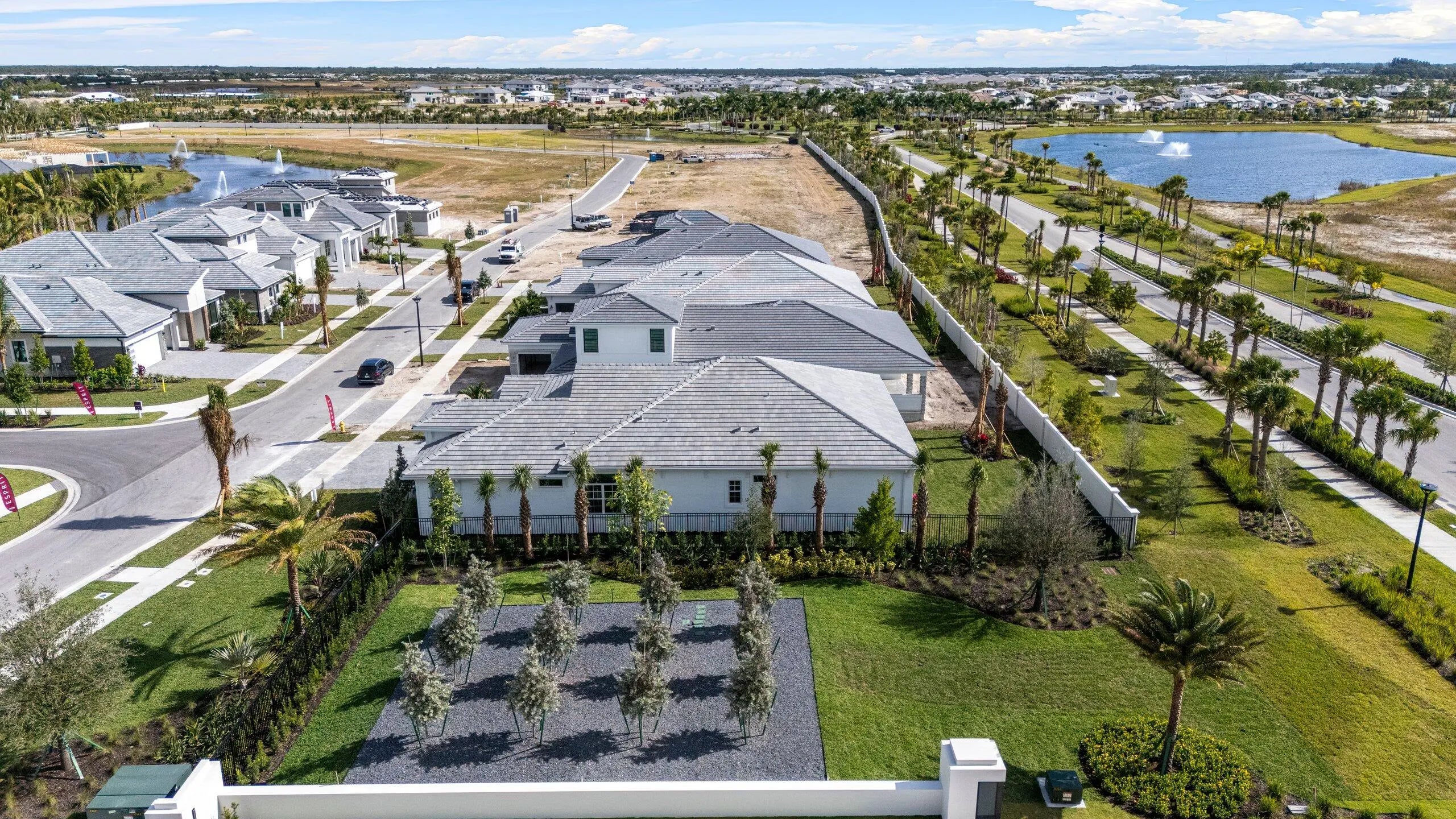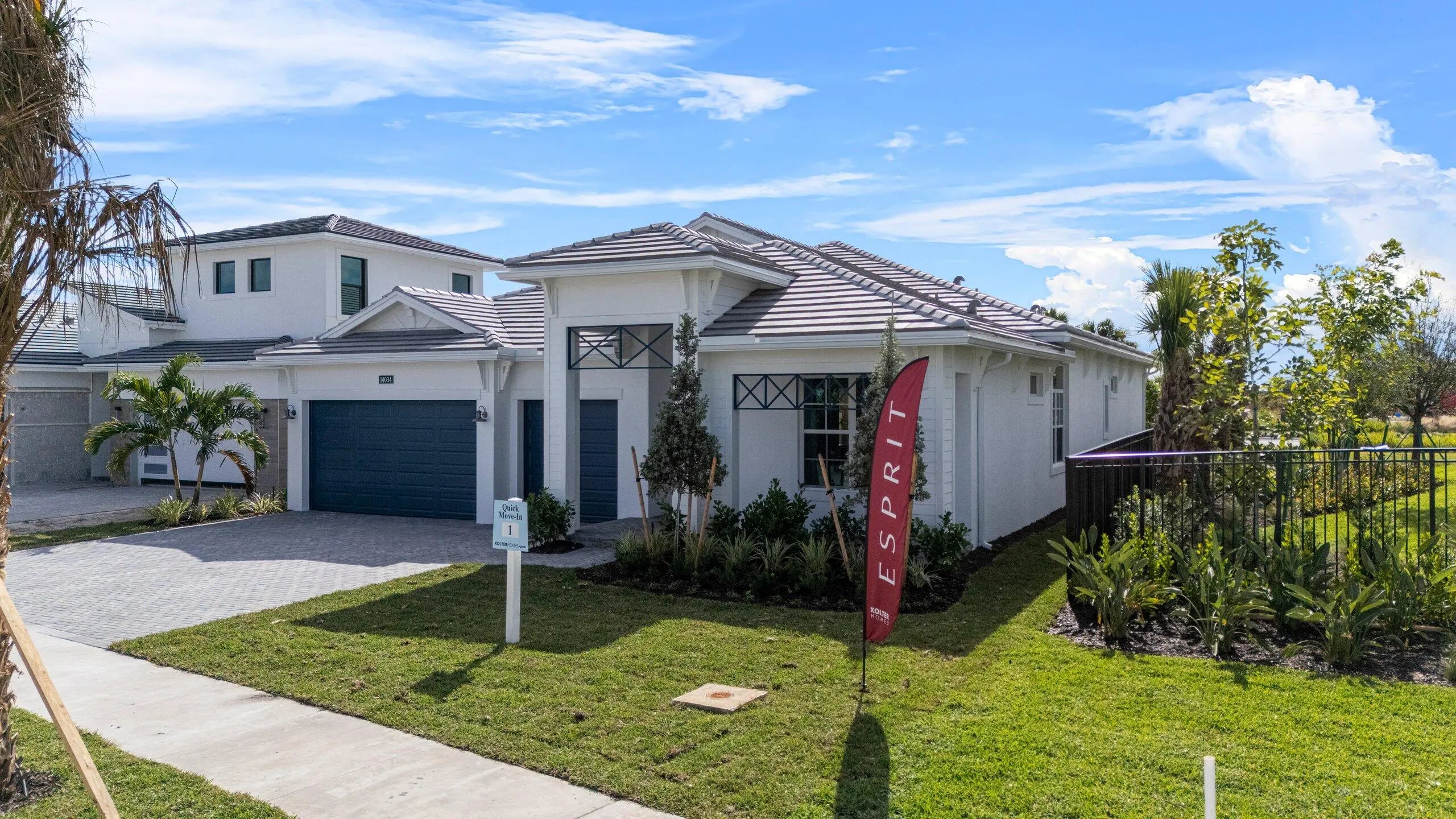 **Move in Ready** This brand-new Priscilla floorplan, built by Kolter Homes, is situated on a southern facing, corner homesite in the new 55+ Esprit community. The home includes 3 bedrooms, 3 bathrooms, and a 3-car garage. The owner's suite and lanai have been extended by 4' to increase both indoor and outdoor living space, and a 16-foot wide by 10-foot-tall sliding glass door connects the great room to the lanai, which also features an added privacy wall with electric, gas, and water connections for a future summer kitchen.