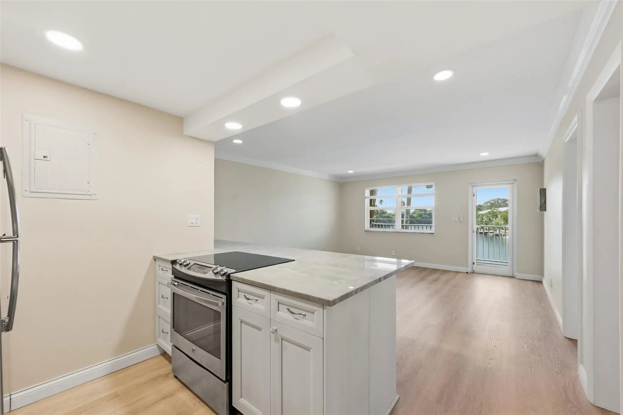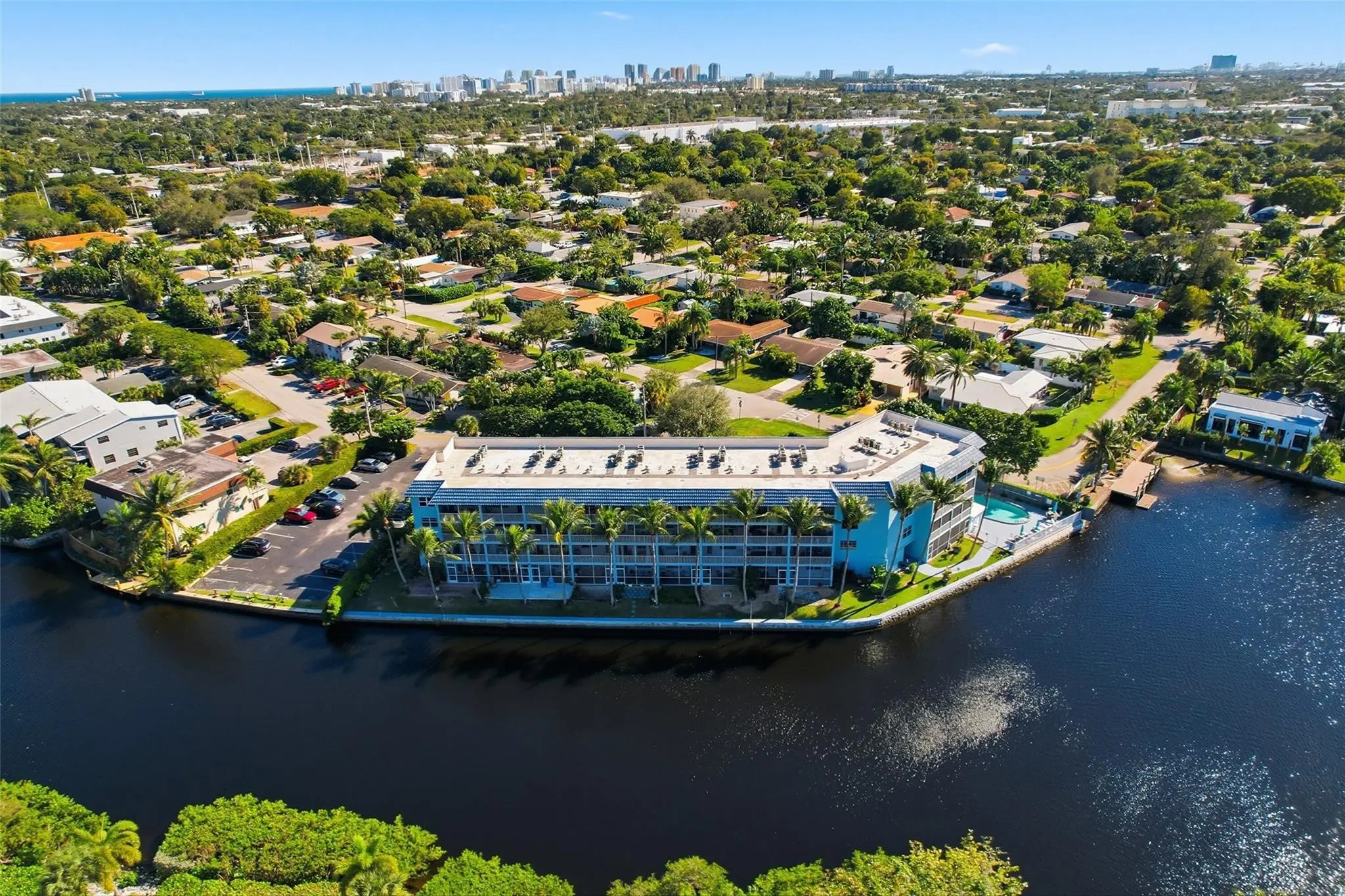 Enjoy theatrical sunsets every single day from the tranquility of your own private, spacious, screened balcony overlooking the Middle River! This tastefully updated 2/2 with over 1,000sq. ft, has a bright open kitchen and living area, with high-end finishings such as touch-free kitchen faucet and dimmable lights, an oversized double-spouted Italian style shower and two walk-in closets for the primary bedroom that boasts the most beautiful river view. A very rare find nestled in Middle River Terrace a short stroll to Wilton Manors.Spend your afternoons relaxing at the pool on our luxurious sun chairs right on the river and animate your evenings strolling on the Drive in Wilton Manors! Other perks Include a BBQ area and 2 private parking spots located 20ft from the main entrance.