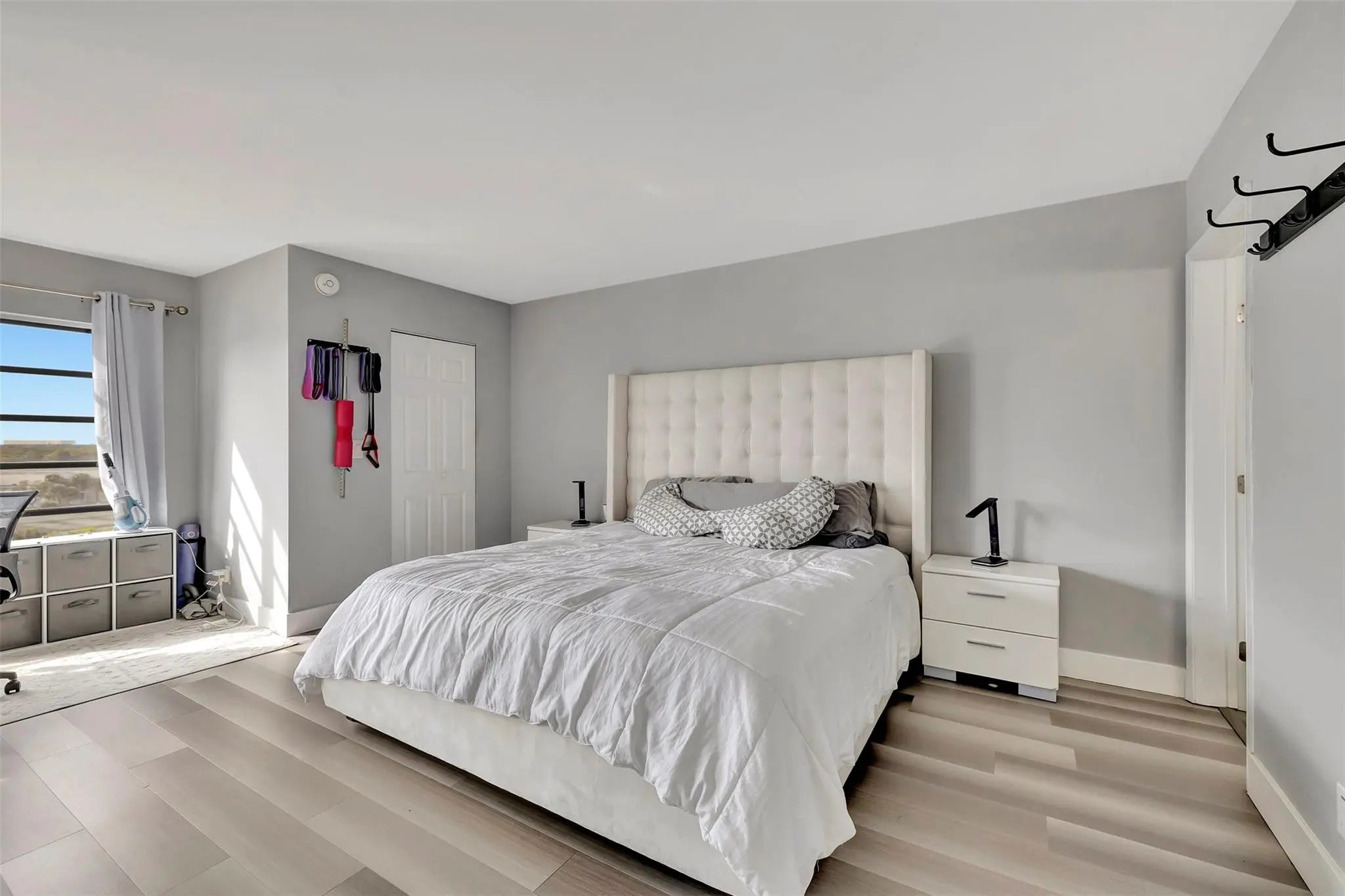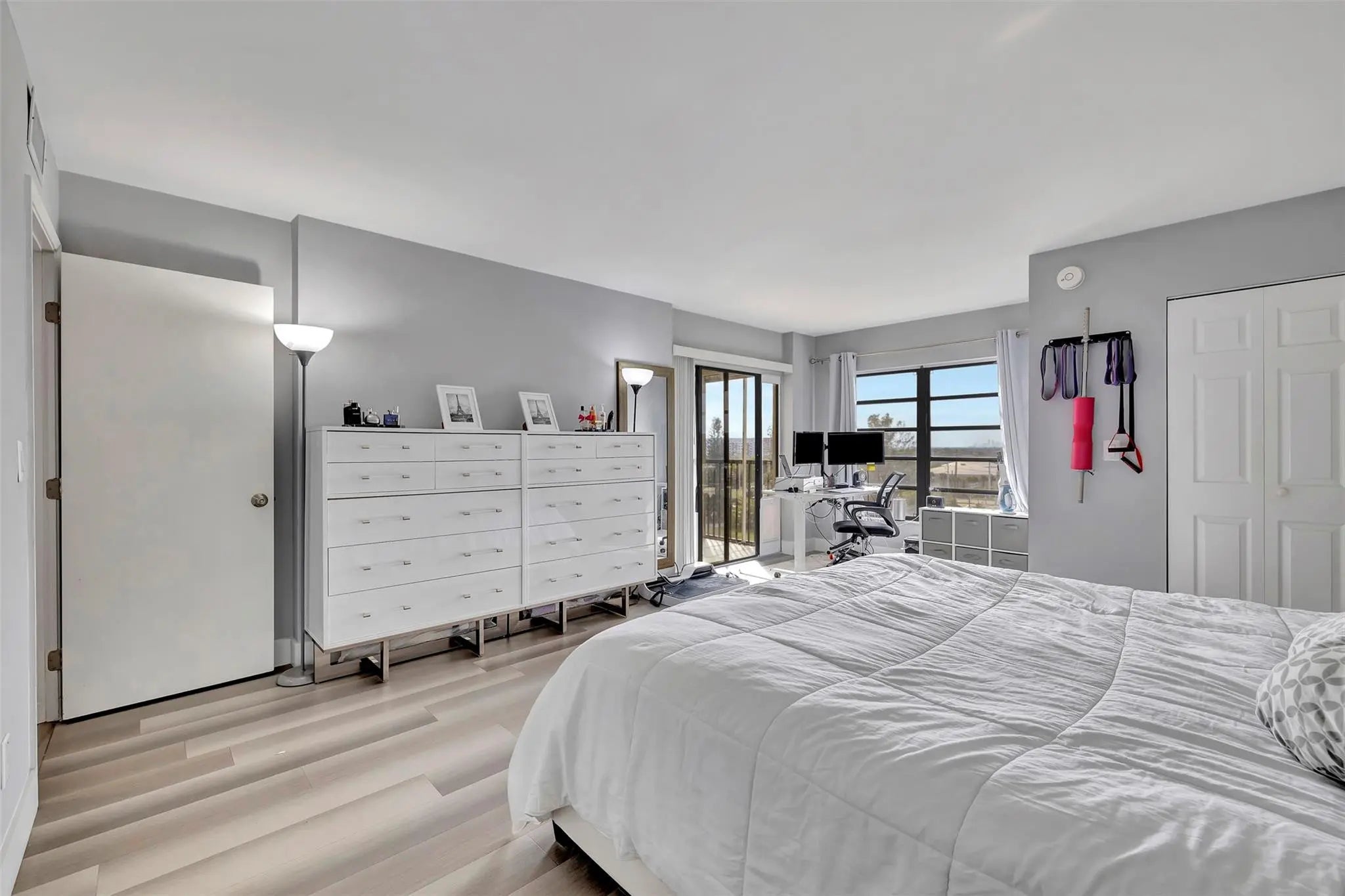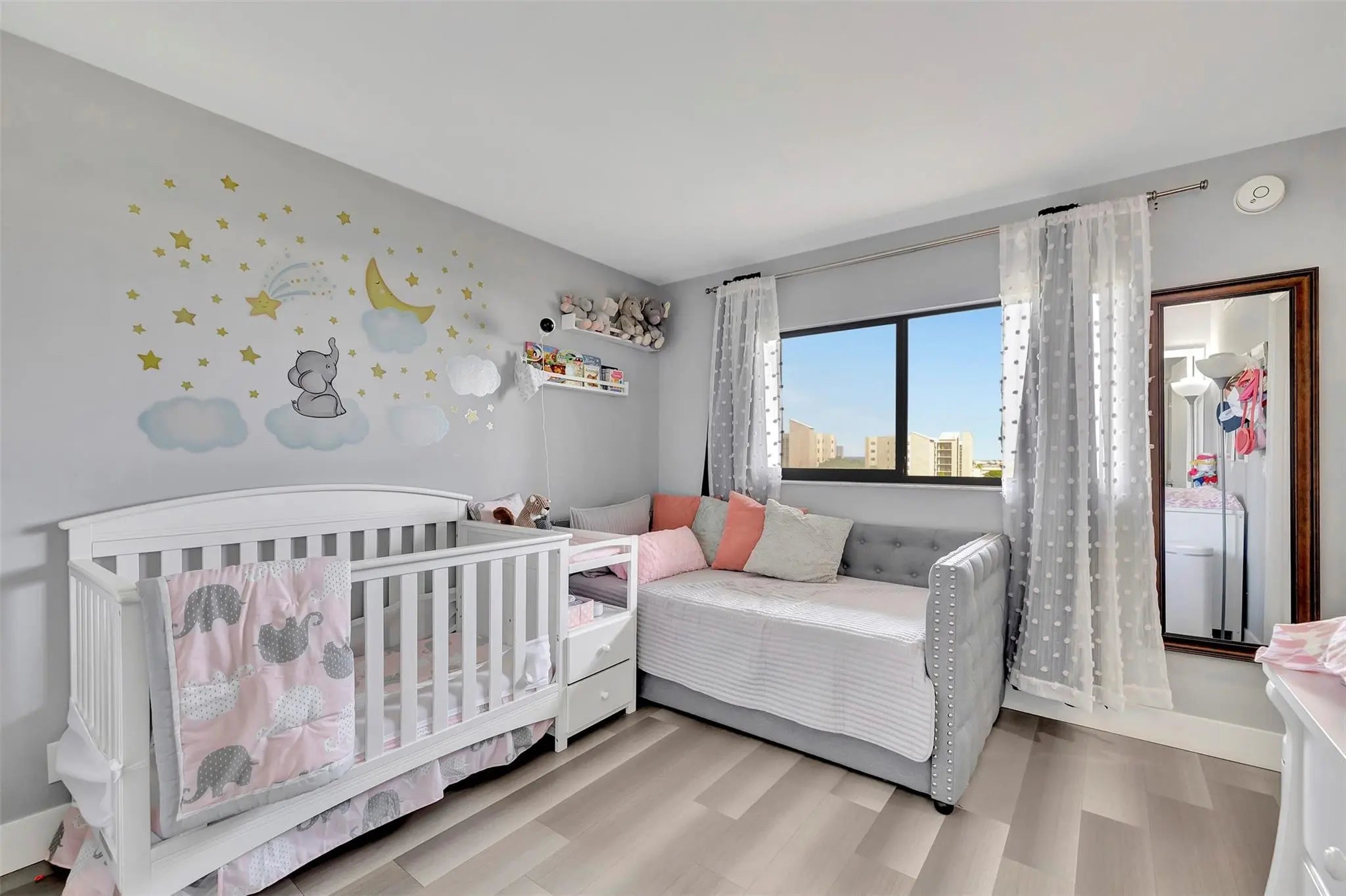 Discover this spacious 2-bedroom, 2-bath condo with stunning skyline and water views from its desirable 7th-floor location. The open and well-designed layout offers generous living, complemented by a private screened-in balcony—perfect for morning coffee or evening relaxation. The updated kitchen features stainless steel appliances and a contemporary design. Both bathrooms have been recently updated. A custom wet bar with sink is located off the dining area, ideal for entertaining. The oversized primary suite opens to the balcony and includes two walk-in closets plus a bonus sitting area with beautiful views, perfect for a home office. Separate laundry room with full-size washer+dryer. AC and W/H replaced in 2019. Fire sprinklers updated in 2020. All-age community and pet friendly.