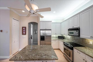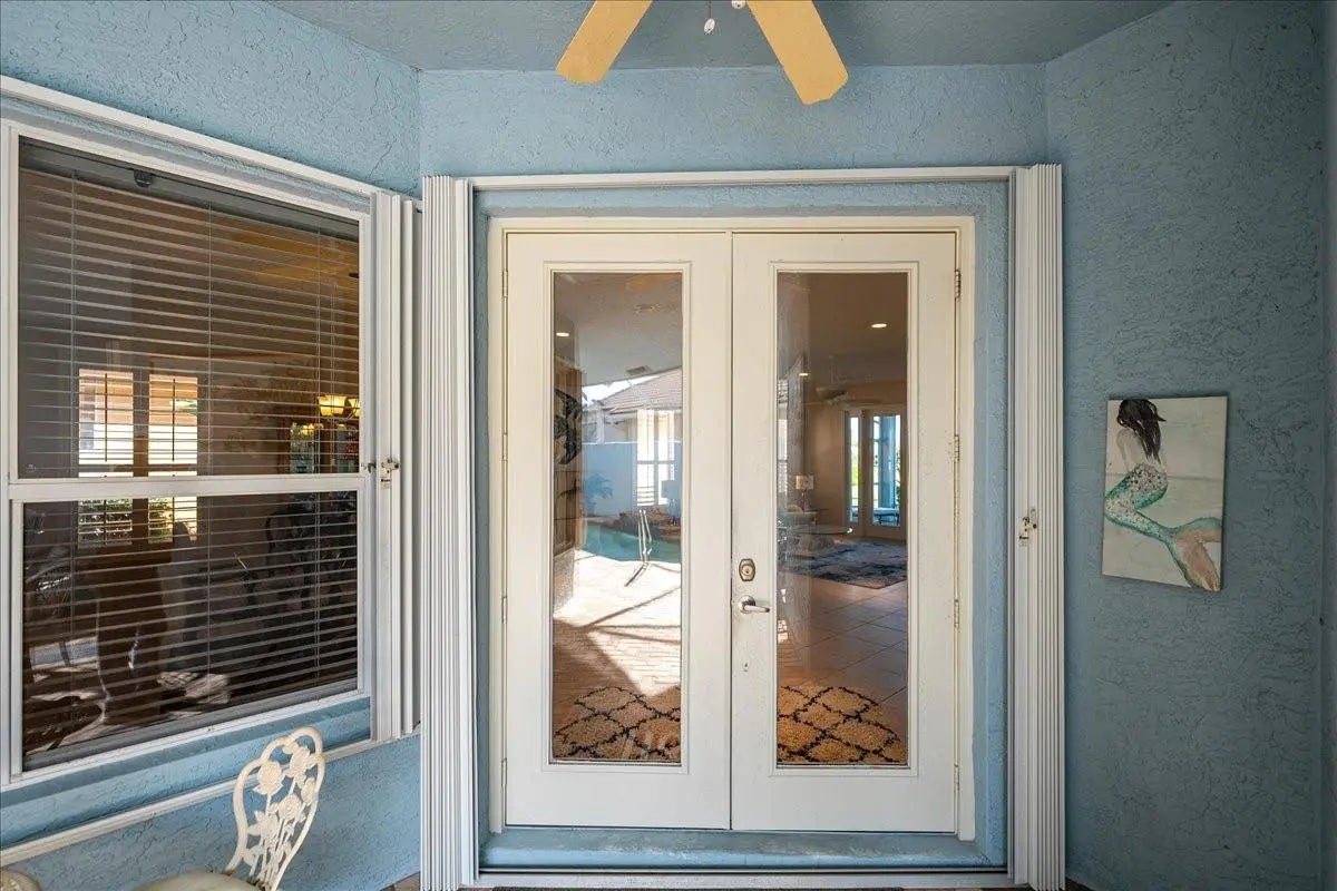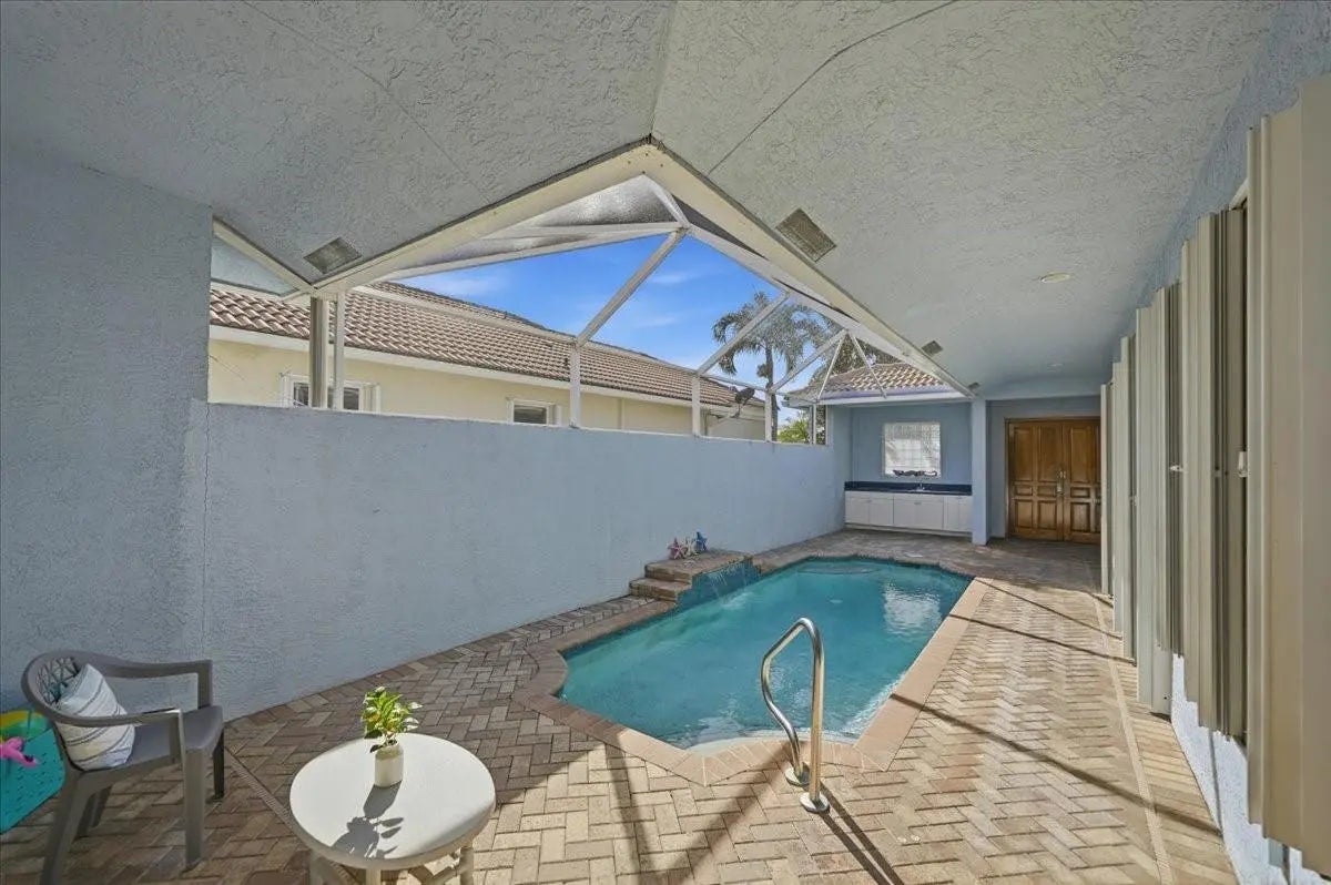 Experience the ultimate coastal lifestyle in this stunning 3BR/3.5BA courtyard pool home, perfectly situated on an extended lot just steps from Pepper Park, the Navy SEAL Museum, and private beach access. This unique property offers a rare blend of river and ocean living with available boat slips and a private walkway leading directly to the sand. The heart of the home is a secluded, screened-in courtyard featuring a private pool, summer kitchen, outdoor shower, and a dedicated pool bath, making it an entertainer's dream. Inside, the residence exudes elegance with volume ceilings, crown molding, tile flooring, and plantation shutters throughout The light-filled great room offers peaceful lake views, while the updated chef’s kitchen features granite countertops, stainless steel appliances, and a spacious walk-in pantry. The primary suite serves as a private retreat with direct lanai access, and the guest bedrooms are thoughtfully designed with their own entrances to the courtyard oasis. Sitting on a larger lot with added green space, this home provides a sense of privacy and tranquility rarely found in beachside communities. Additional features include accordion shutters for peace of mind and a prime location that balances luxury with Florida’s natural beauty.