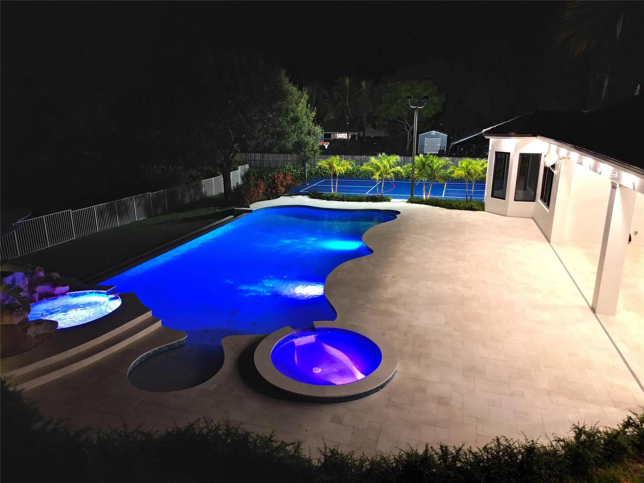 Step into your own luxurious tropical retreat. This fully upgraded 6BR/5BA Davie estate feels like a private resort, featuring a 2025 roof (transferable warranty), new impact windows, and refined finishes throughout. Inside, a chef’s kitchen with Wolf & Thermador appliances, executive office, theater room, and an upstairs loft with private suite create space to live, work, and unwind. Custom LED lighting and spa-inspired bathrooms set the mood. Outside, lush landscaping surrounds a 50+ ft pool with spa & kiddie pool, private pickleball and basketball courts, and a tranquil 25-ft koi pond. Nearly an acre with parking for 12+ cars—luxury living, vacation vibes, every day, perfect for hosting, entertaining, or simply escaping at home.