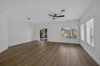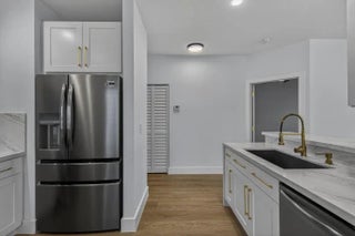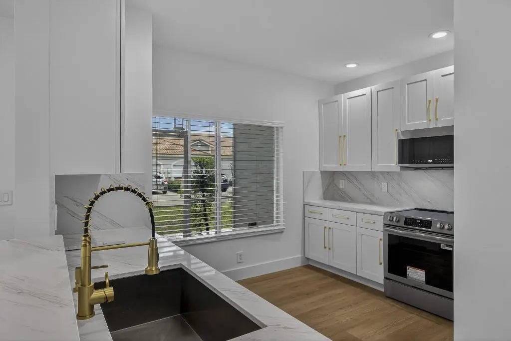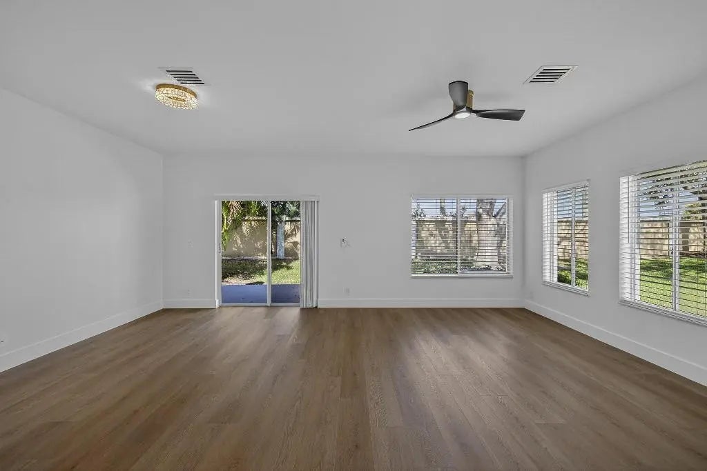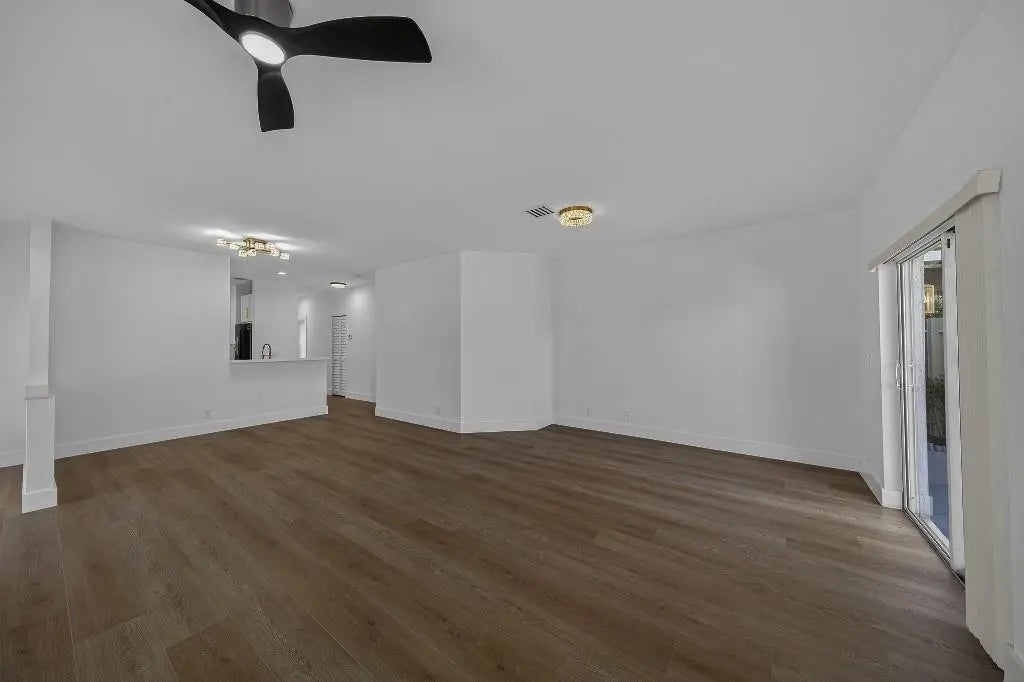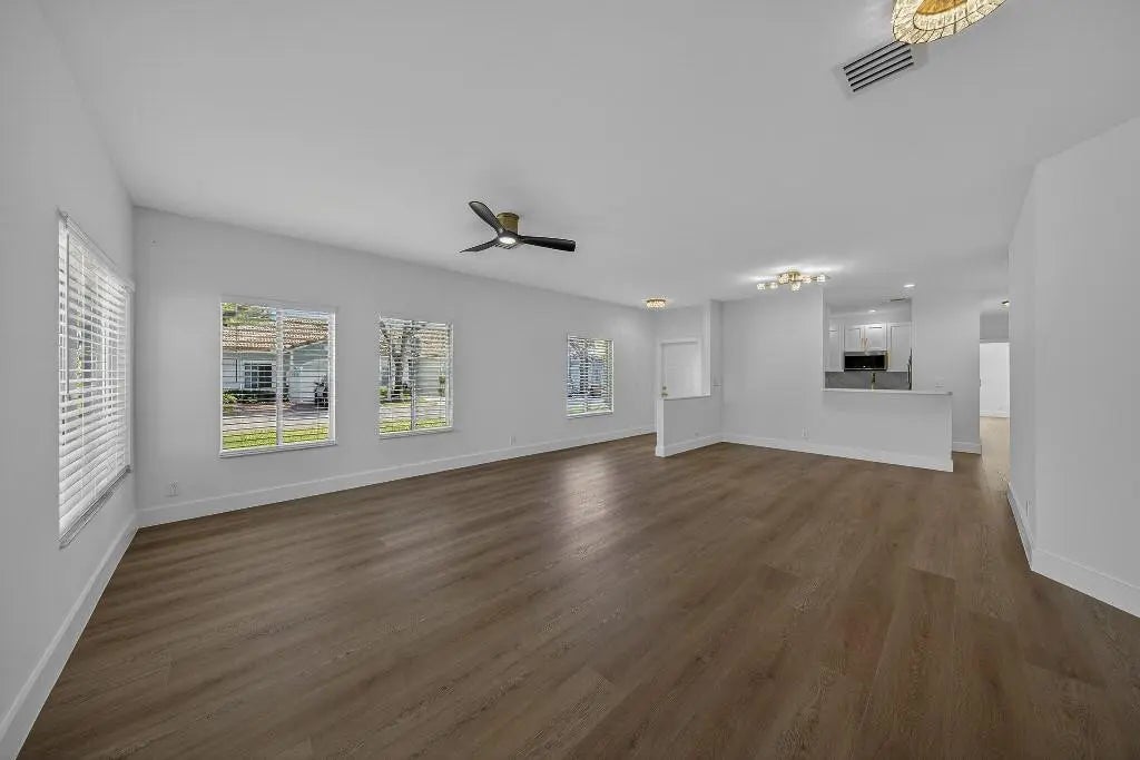 Step into this fully renovated 3-bed, 2-bath corner-lot home where timeless elegance meets modern luxury. Reimagined top to bottom, it shows like a brand-new build with no detail overlooked. Rich wood-grain, water-resistant flooring flows throughout. The designer kitchen features quartz countertops, stainless steel appliances, soft-close cabinetry, and bold gold hardware. Spa-inspired baths offer LED mirrors, marble-style tile, gold rainfall fixtures, and a double-sink primary vanity. Enjoy heated pools, pickleball, fitness center, two clubhouses, 24-hour security, and a boat-friendly lake. HOA covers roof and lender-required insurance.