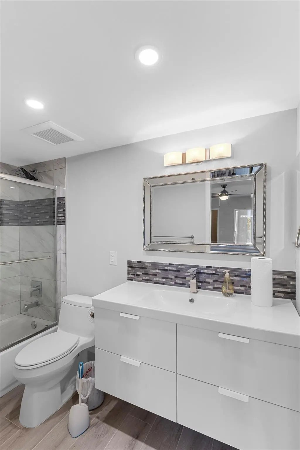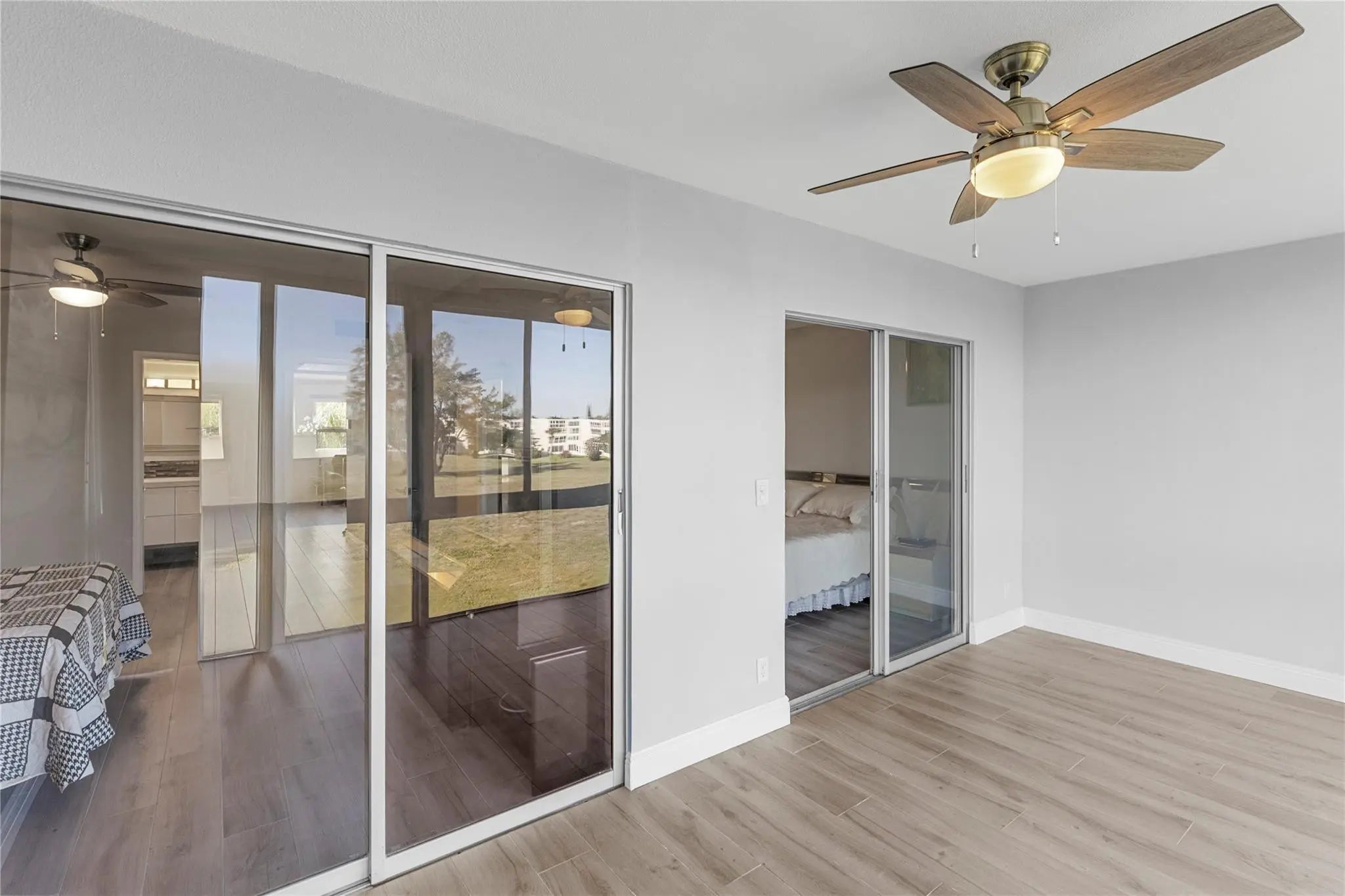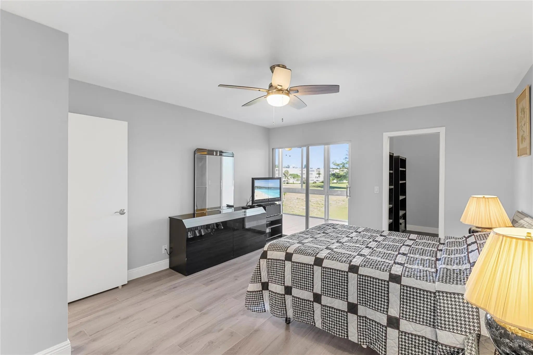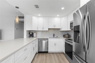 COMPLETELY REMODELED 2 bedrm, 2 bath condo featuring a modern open-concept kit w/ss appl, quartz cntrs, designer tile backsplash, recessed ltg & crisp white shaker cabs. Elegant Italian porcelain tile flows thru-out, complemented by smooth ceilings & abundant natural lt. Upgrades incl HURRICANE IMPACT WINDOWS & DOORS, a new electrical panel, A/C & water heater for peace of mind. Bathrms have been beautifully renovated—guest bath w/tub/shower & shower stall in primary. The encl patio offers a lovely, serene garden view. Enjoy a comm BBQ/picnic area rt in front! Resort style gated comm w/24hr sec, free busses, pools, tennis, pickleball & an on-site café. State of the Art Clubhouse w/a gym, billiards, clubs & classes, movies, shows & more! Close to beach, dining & shopping! ASSOC. CLAIMS 55+
