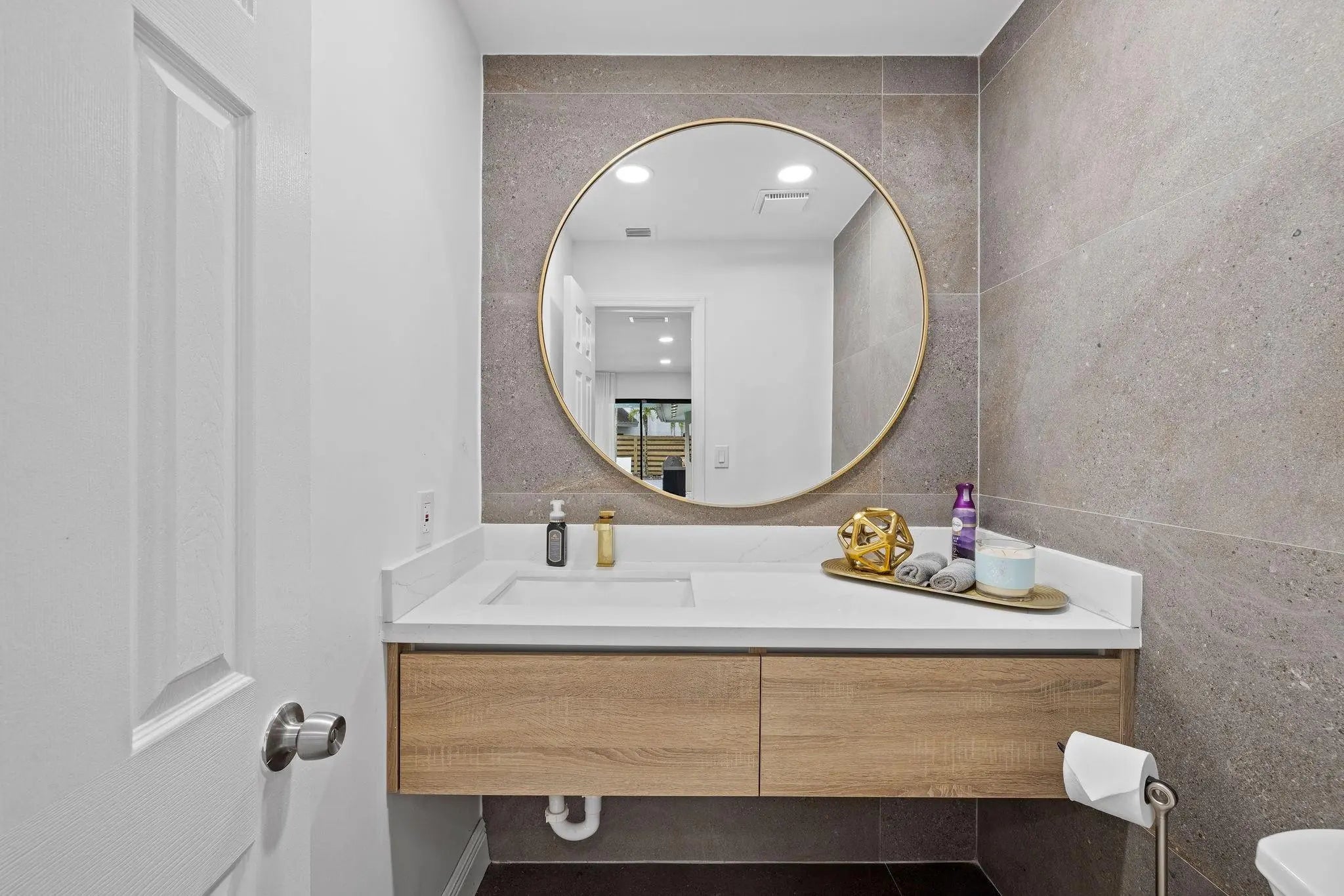 Situated in The Greens of Emerald Hills, this no expense spared, top-to-bottom renovation sets a new standard for the community. This 3-bedroom, 2.5-bath residence has been completely reimagined with a designer kitchen, featuring high-end cabinetry, premium appliances, and sophisticated finishes. The bathrooms have been fully renovated with a sleek aesthetic highlighted by elevated materials throughout. Step outside to a newly resurfaced pool, creating a true resort-style outdoor space. Located within a gated, highly desirable enclave, HOA benefits include structural homeowners insurance, exterior painting, community landscaping and secure gated entrances. Ideally positioned and highly walkable to houses of worship, this home is truly turnkey and the finest in The Greens of Emerald Hills.
