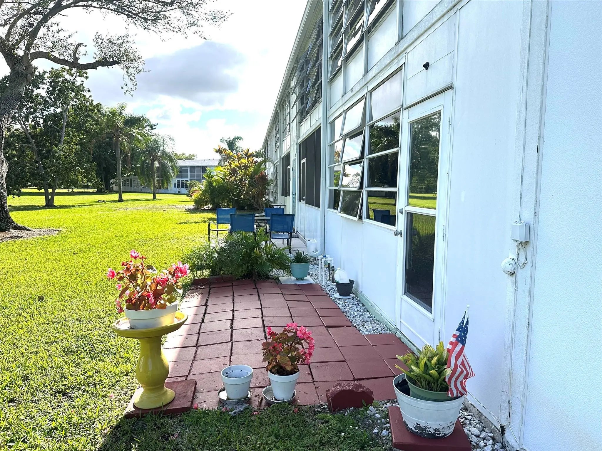 FABULOUS LOCATION! Just steps to the pool, this charming & bright, 1 bedrm, 1.5 bath condo on the 1st flr. offers comfort, style & convenience. The updated kit features quartz cntrs, tile backsplash, ss appl w/a dishwasher--perfect for easy everyday living! Furnished & ready for you! The new A/C, plush carpet & custom shades in living area add to the coziness of this condo! Updated bathrms w/shower stall in primary w/glass shower drs! 2nd A/C in bdrm! Encl patio overlooks a quiet garden view w/a paved patio outside the door for your entertaining! Enjoy the BBQ/PICNIC AREA in front of bldg! Welcome to this AMAZING resort style living gated community w/24 hr sec, bus service, pools, tennis, pickle ball, state of the art clubhouse w/shows, movies, billiards, classes & more! Assoc. Claims 55+.