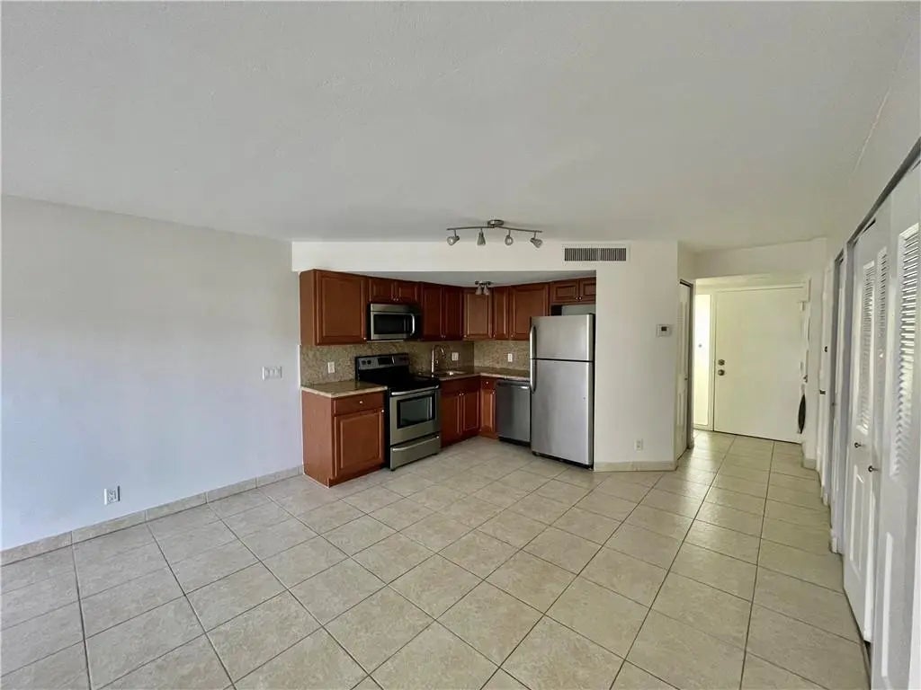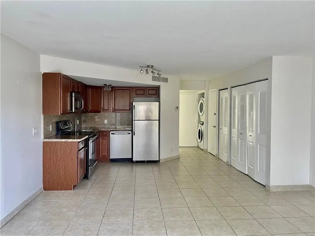 Unique open concept studio/efficiency type condo in the prestigious Deer Creek Country Club community. Convenient first floor location. Updated open kitchen with granite counters and backsplash, stainless steel appliances. Bathroom has also been renovated and has a huge walk-in shower. Tile floors throughout. Lots of closet space. Front loading W/D in unit. Open patio overlooking tennis courts. Roofs were just replaced and buildings painted in 2025. Beautiful golf course community w/NO mandatory golf membership required! Across from Constitution Park/Deerfield Beach Arboretum & close to shopping, major highways, & just over 4 miles to the Blue Wave award winning Deerfield Beach. Great investment property, can rent annually immediately!