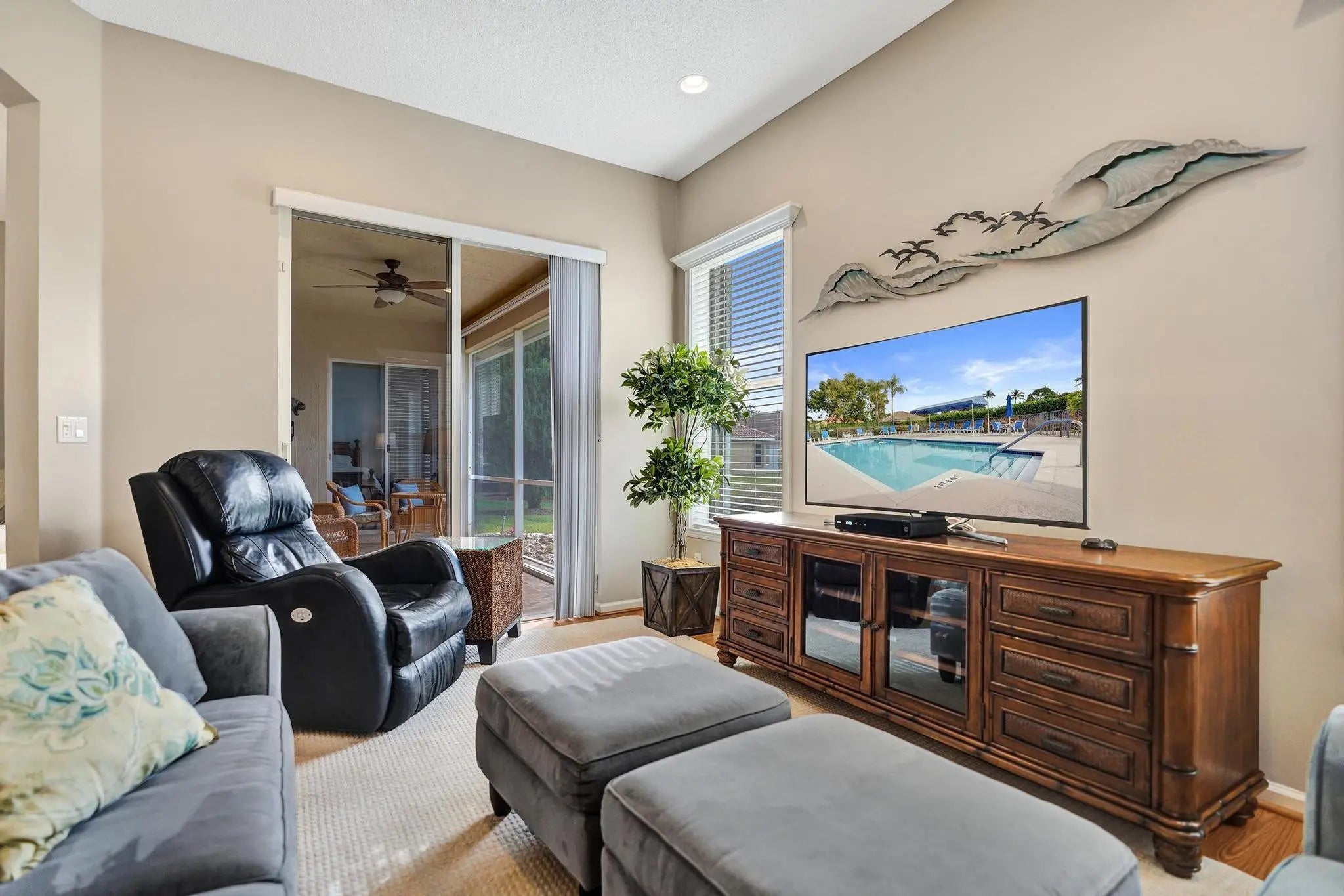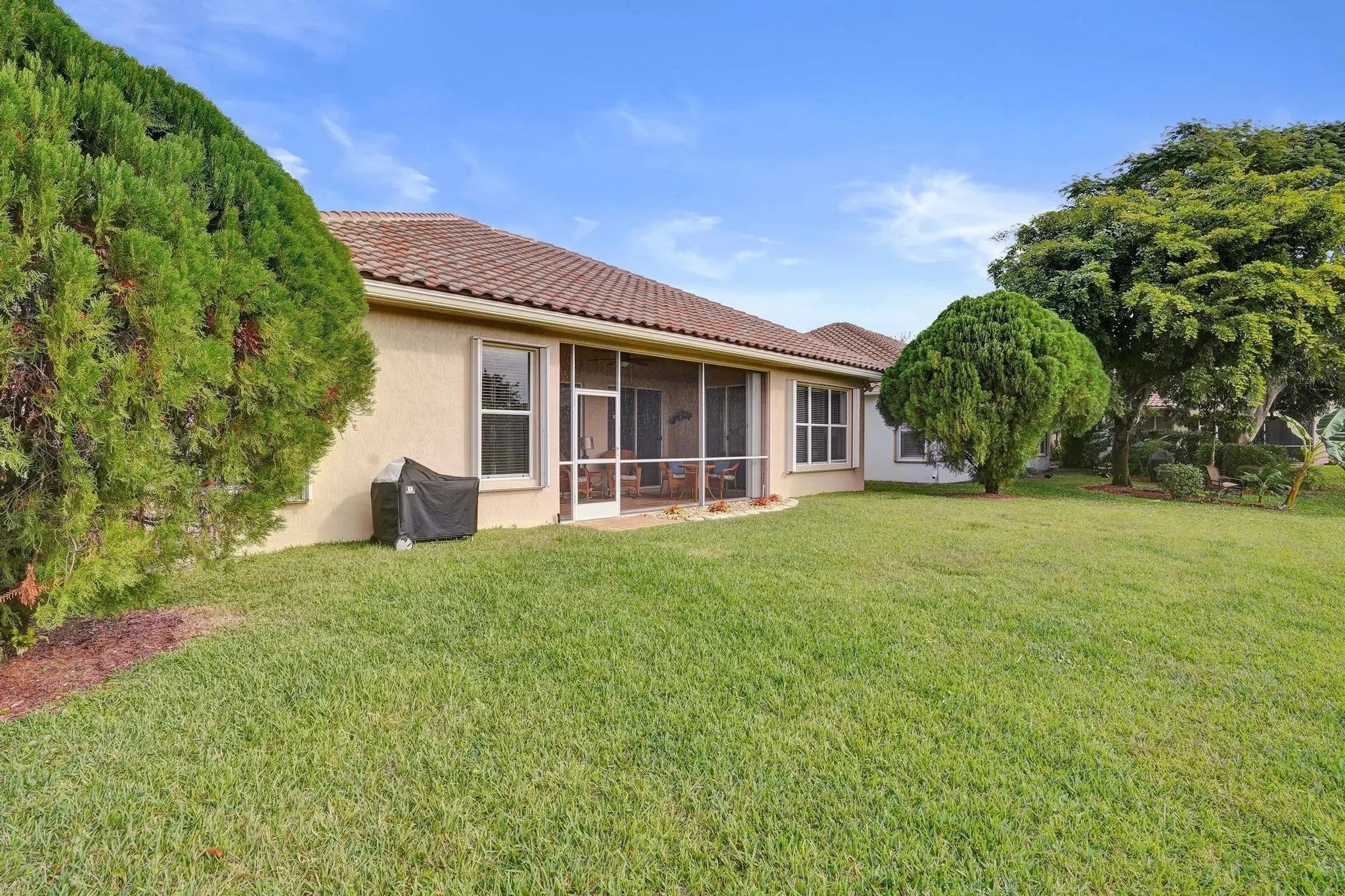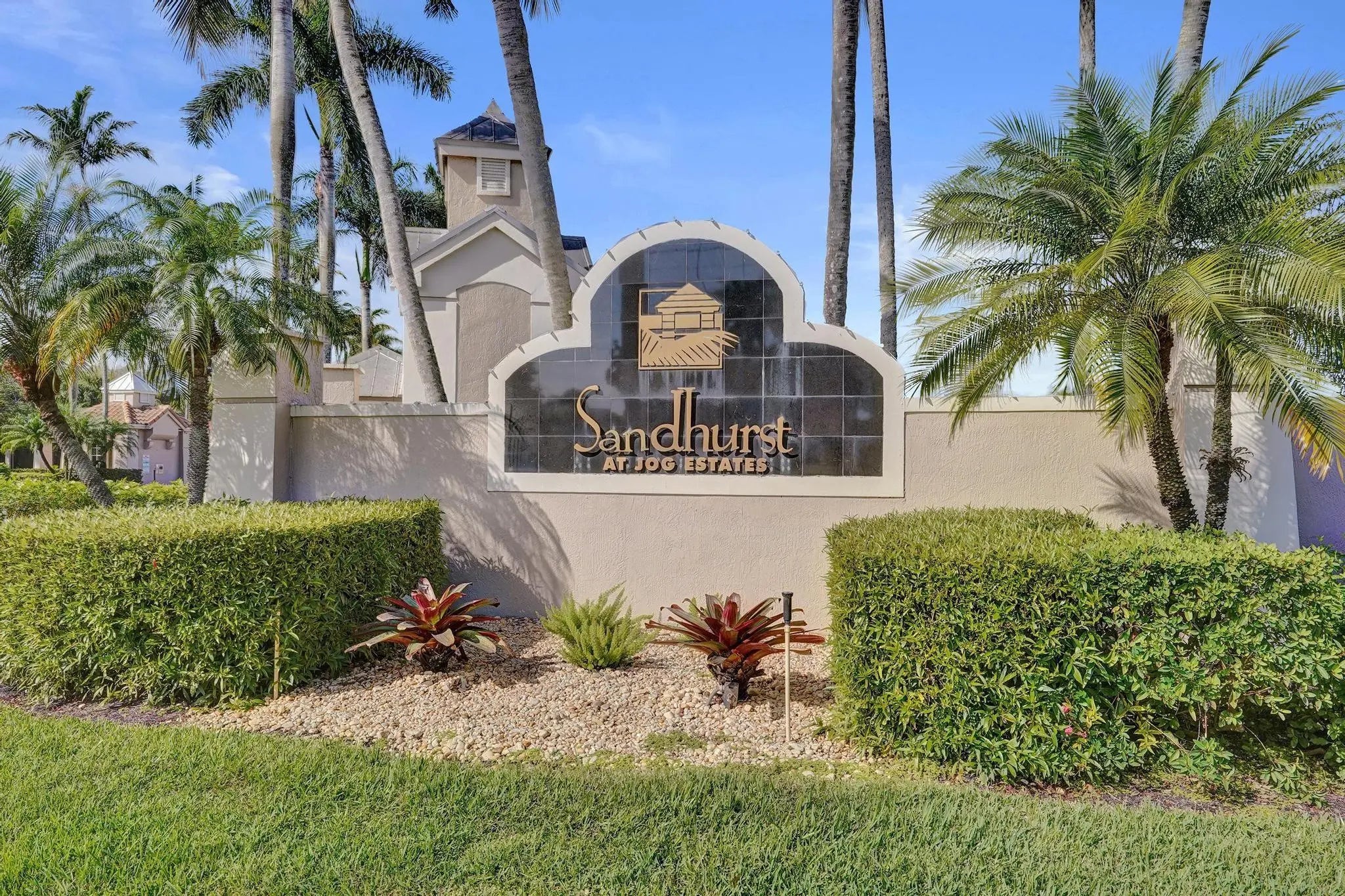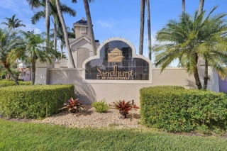 Beautiful 4BR/2BA/2CG in pristine Sandhurst 55+ community. New roof in 2025 & freshly painted exterior. Volume ceilngs into formal dining & living area. Cozy family rm & spacious kitchen w/cooking island & tons of cabinet space. Split BR flr plan. Walk-in closet & priv. bath w/sep. shower & roman tub in primary. 4th BR utilized as den off the primary is perfect home office space w/water view. Screened patio. Sep. laundry rm. Accordion shutters. Well maintained community is sought after for low HOA, offering a renovated clubhouse, sparkling pool, hot tub, fitness center, tennis court & security gated entry. No weight limit on pets! Publix is just next door & close to many public & priv. club membership golf courses. Quick ride to gorgeous tropical beaches, sun & fun, nightlife & shopping.