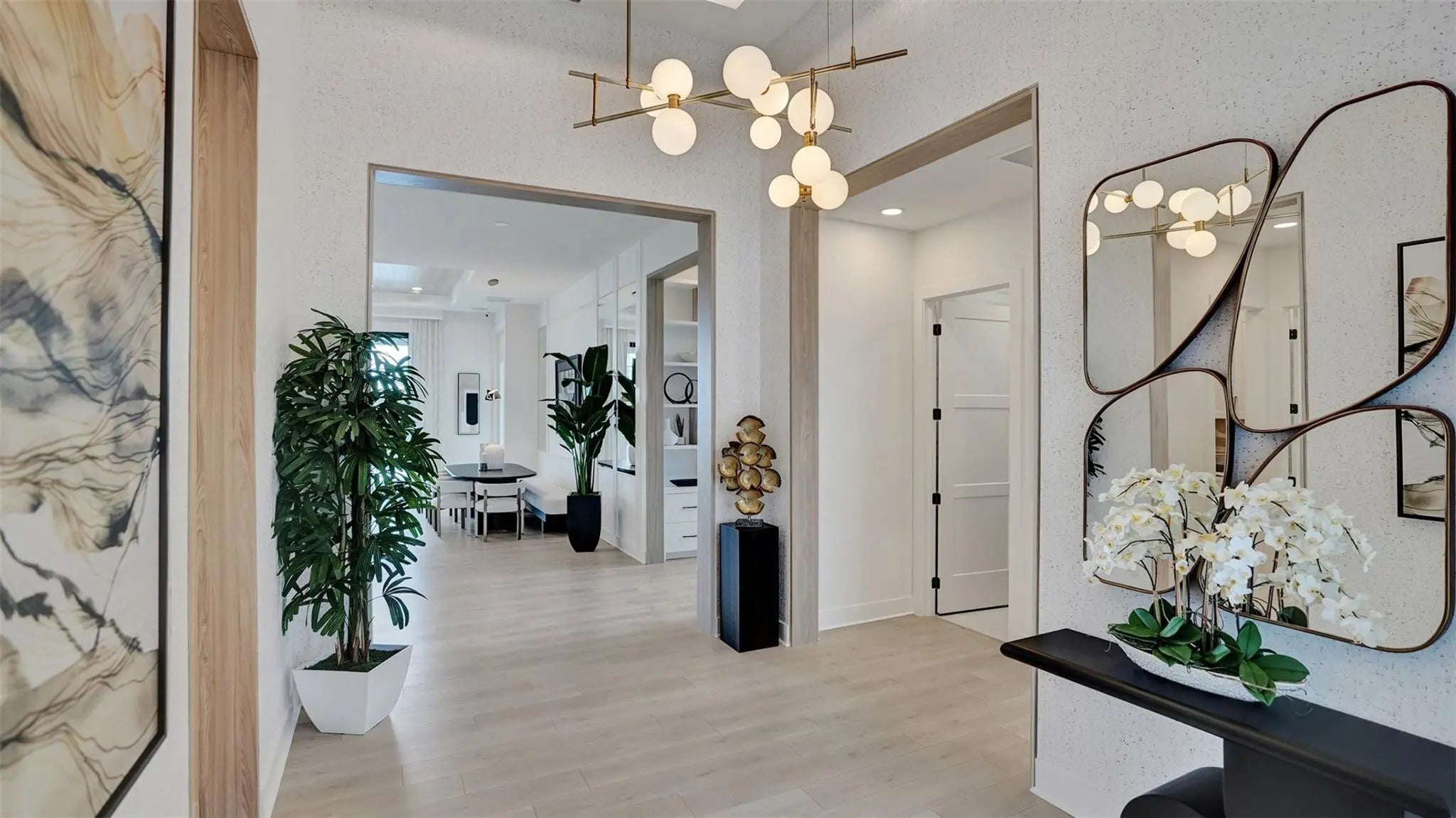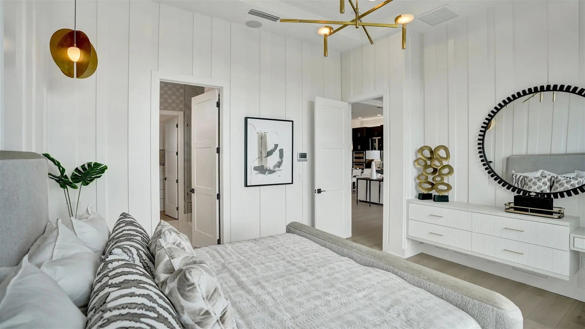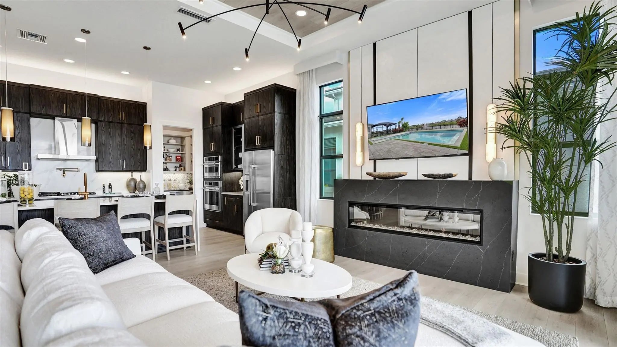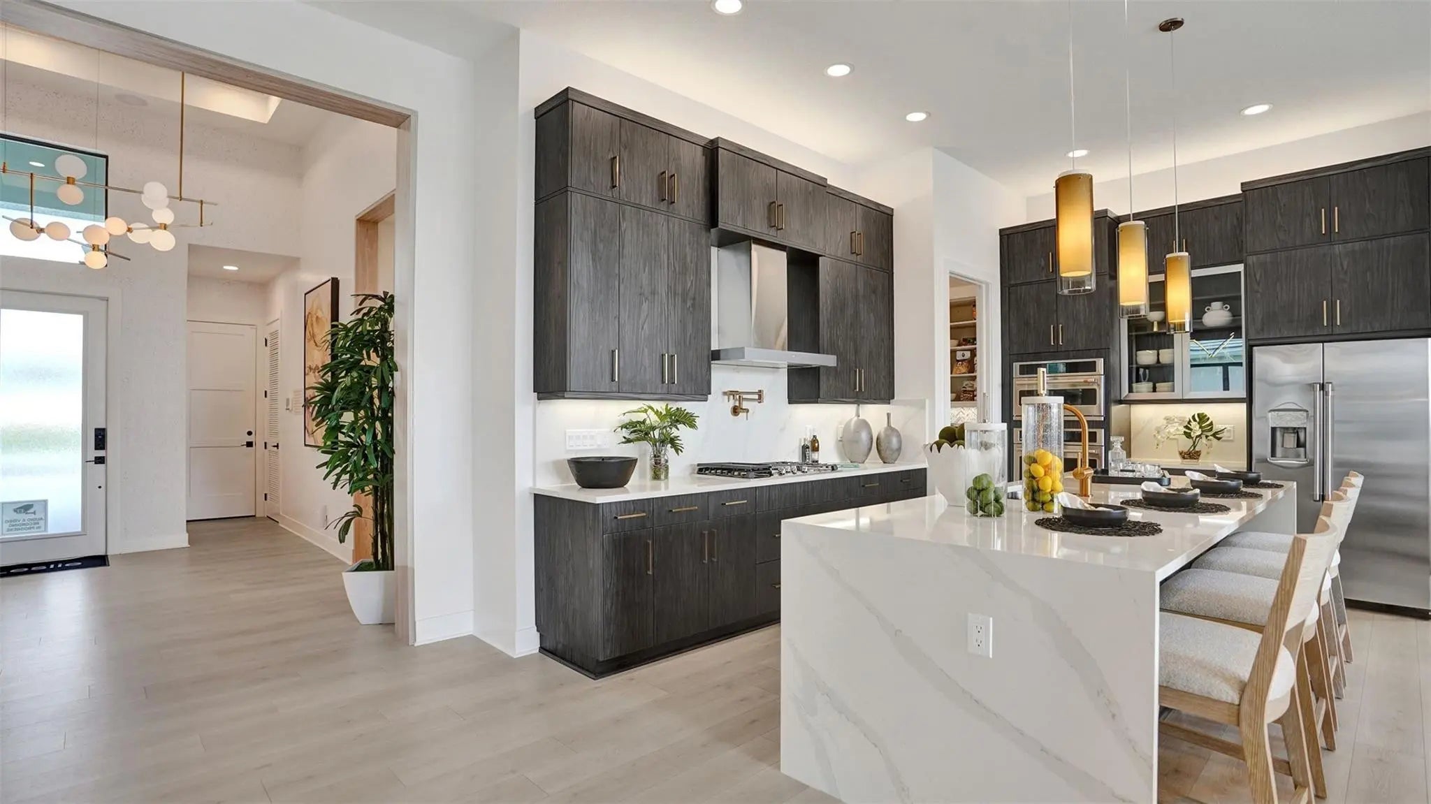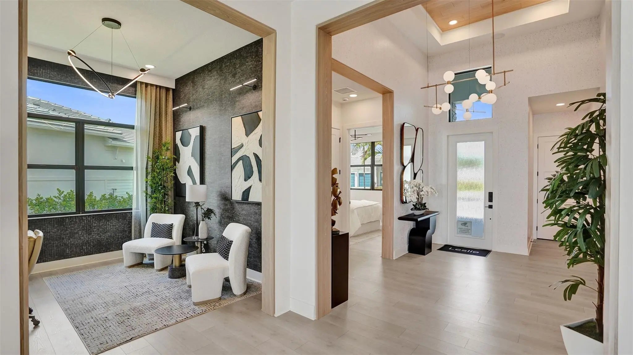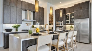 Entertainers laud the Leslie for its large, centrally located Kitchen. The wide island overlooks the Great Room and Dining area with open views out to the Lanai with windows across the back of the home. The Kitchen also gives the chef in your family lots of space to work with and house their tools of the trade with ample countertop area, cabinetry and a walk-in pantry. The second and third Bedrooms and Baths are located at the front of the home to provide privacy from the Owner’s Suite which is comfortably tucked off the Great Room in the rear. Owner's Suite include a tray ceiling, dual vanities in the Owner’s Bath and option to further expand the Owner’s Closet and create Office in lieu of the Flex space. Photos of a decorated model home are for reference only. Actual home will differ.