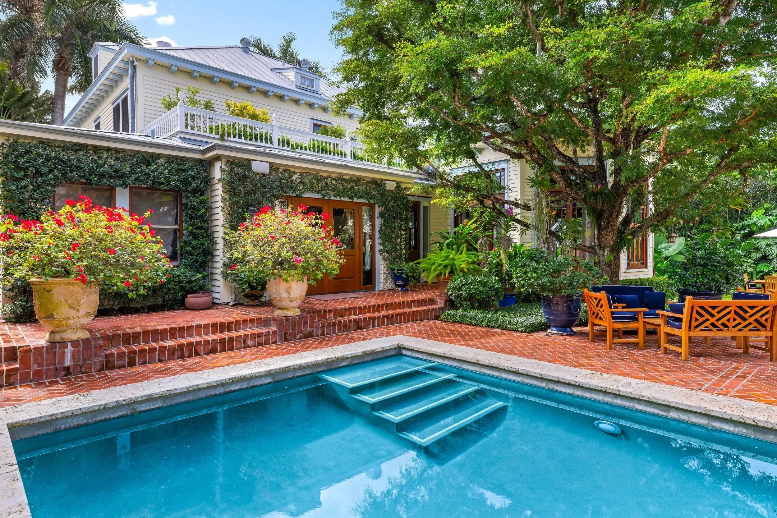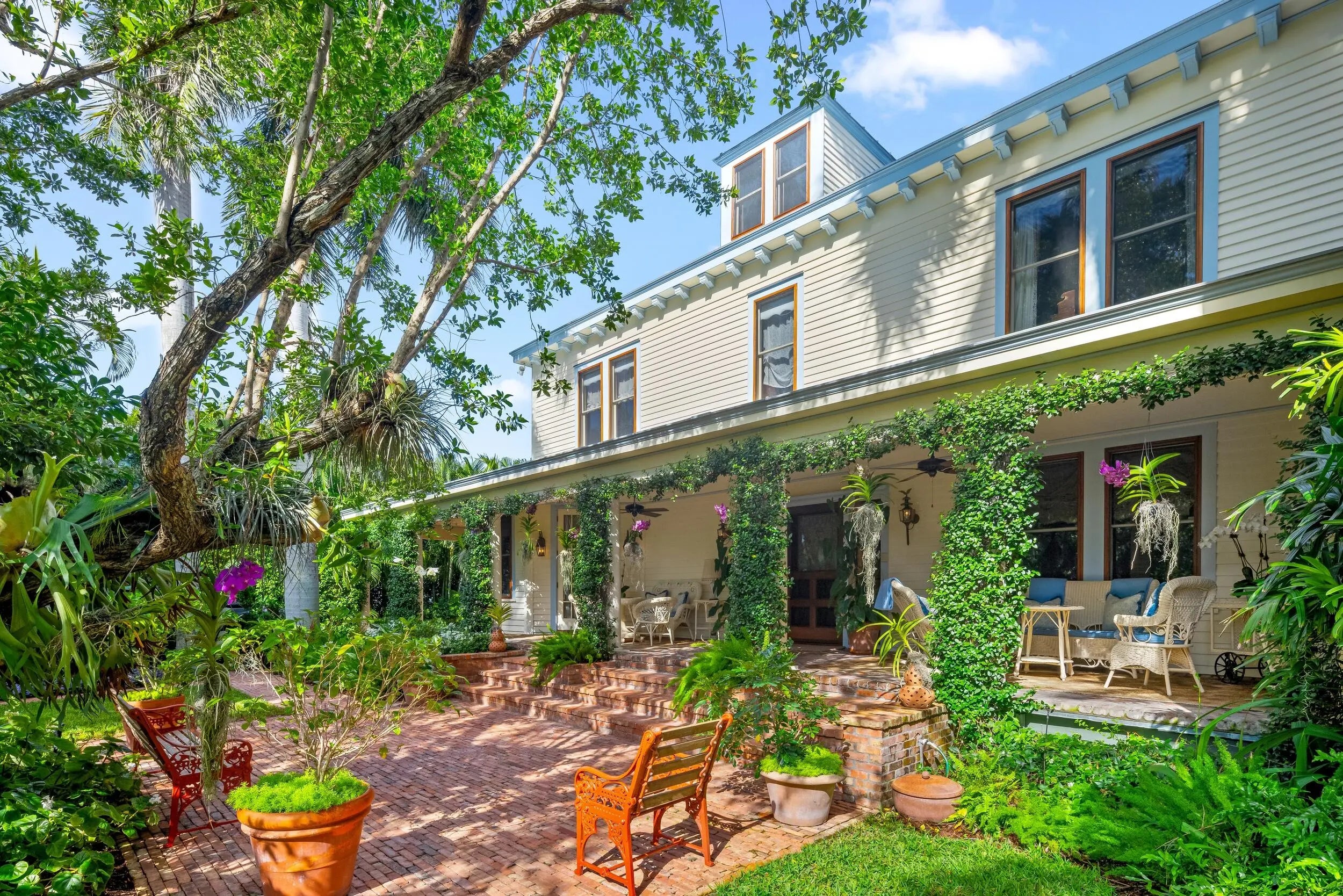 Welcome to Buttonwood - Beautiful and historic In-Town property with 8BR/9BA on oversized 19,600+/- SqFt lot. Private driveway leads to welcoming and charming front porch with ample seating. Stunning architectural detailing and hardwood flooring. Two beautiful fireplaces in the formal living room and family room. Romantic sunroom with sweeping ceilings. Elegant formal dining room opens to stunning patio. Additional highlights include beautiful library, study, mudroom, and beautiful kitchen and butler's pantry. Fabulous 4BR/4BA guest house with living room, kitchen, two covered balconies, and two covered patios. Stunning backyard with 40' pool and spa. Gorgeous, mature landscaping surrounds this 195'x100'+/- property. Fantastic Dunbar Road location with Lake Trail and Beach access.