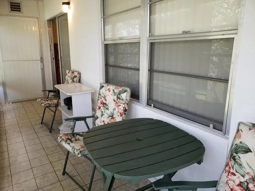 Light and bright corner apartment in Century Village. Spacious 2 bedroom, 1.5 bathrooms with a relaxing garden view. BRAND NEW AC UNIT! Updated kitchen with granite counters and light wood cabinetry. Enclosed Florida room with a garden view. Five minute walk to the clubhouse and houses of worship. Move in ready! Don't miss this opportunity! *SELLER MOTIVATED, BRING ALL OFFERS!*