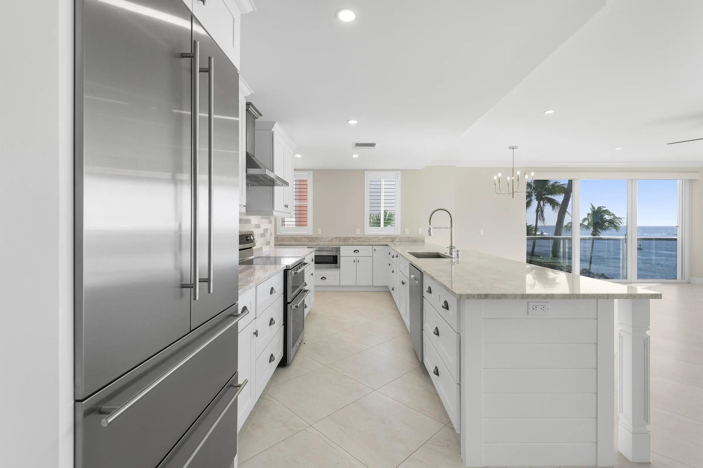Direct Oceanfront - Palm Beach Inlet. A Very Rare Opportunity to Wake up to the Most Glittering Turquoise Water Views in the Country! This exceptional unit offers privacy and uncompromising 180-degree views of the Palm Beach Inlet, Atlantic Ocean, Palm Beach Island, as well as breathtaking sunrises, sunsets, and some of the World's Most Luxurious Mega-Yachts passing by! A 3-minute walk to see the very famous Peanut Island and a sandbar by the Blue Heron Bridge. Completely professionally renovated, combining two units into one. Interior features include open living, 9-ft. floor-to-ceiling high-impact windows/doors, and abundant natural light. High-end appliances are included. Exterior features include gated entry, additional storage, a pool, a gym, and a BBQ area overlooking the inlet.