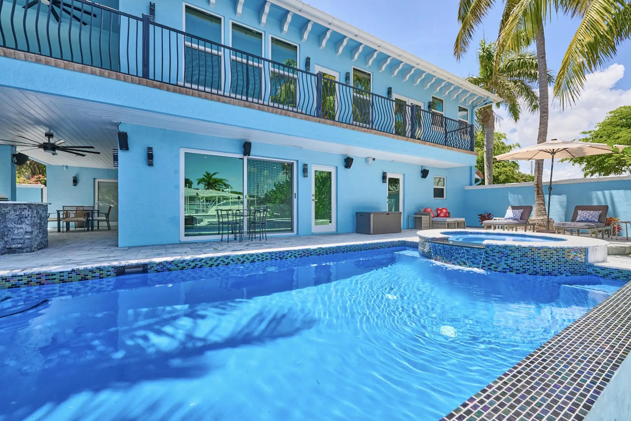 Experience the ultimate Florida getaway in this beautifully appointed five-bedroom, five-bath short-term rental, ideally located just minutes from two of South Florida's most desirable destinations Delray Beach (7.1 miles) and West Palm Beach (13 miles). Whether you're looking to explore vibrant downtowns, enjoy world-class dining, or relax on pristine beaches, this home places you in the heart of it all. Set in the exclusive Hypoluxo Pointe neighborhood, this home is a boater's dream, featuring a 55-foot dock with a motorized lift, direct access to the Boynton Beach Inlet, and no fixed bridges ideal for a day on the water or an evening of dockside dining. Recently upgraded, the property boasts hurricane-impact windows, fresh exterior paint, artful light scaping, and a revitalized pool and spa area with tumbled marble decking. The impressive outdoor kitchen makes entertaining effortless, while the open-concept interior offers spacious living areas, en-suite bedrooms, and large windows that showcase stunning water views. Whether you're spending your days cruising the Intracoastal, lounging by the pool, or dining al fresco under the stars, this waterfront retreat delivers the ultimate Florida lifestyle.