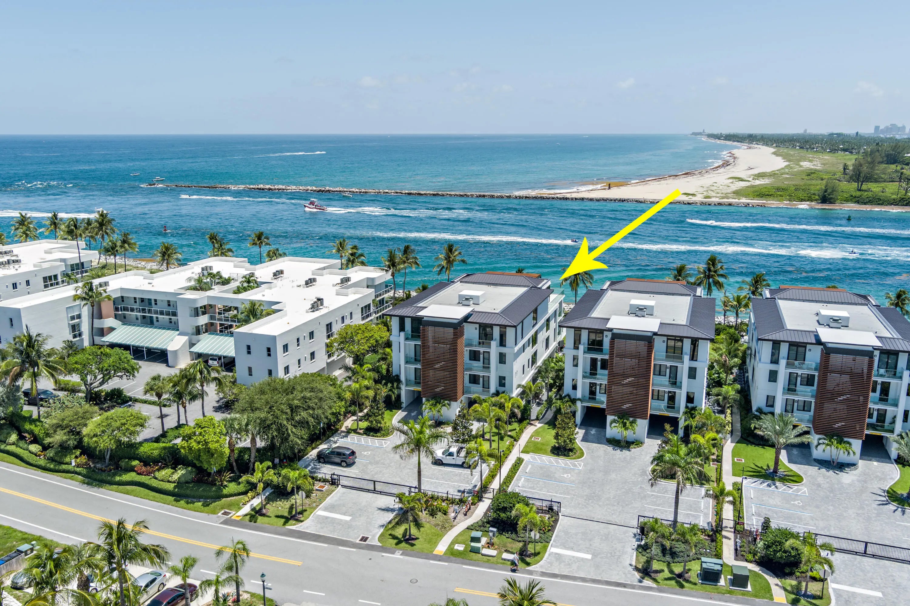 DIRECT OCEAN/PALM BEACH INLET VIEWS. New construction 2024. This modern contemporary (3 br 3.5 ba corner unit with den/office) offers incredible direct views of both the Atlantic Ocean and Palm Beach Inlet. The interior feature's a wide open floor plan, 9 ft ceilings, impact glass windows/doors, abundance of natural light, private elevator, high end appliance package, water filtration system, electric roller shades and more! Exterior feature's gated entry, large pool/ sundeck overlooking the ocean, 2 designated parking spots. Building is Pet friendly with no weight restrictions. Located in charming historic Town of Palm Beach Shores known for its pristine beaches and warm island breezes and Just minutes away from the Sailfish Marina, great shopping, and restaurants...