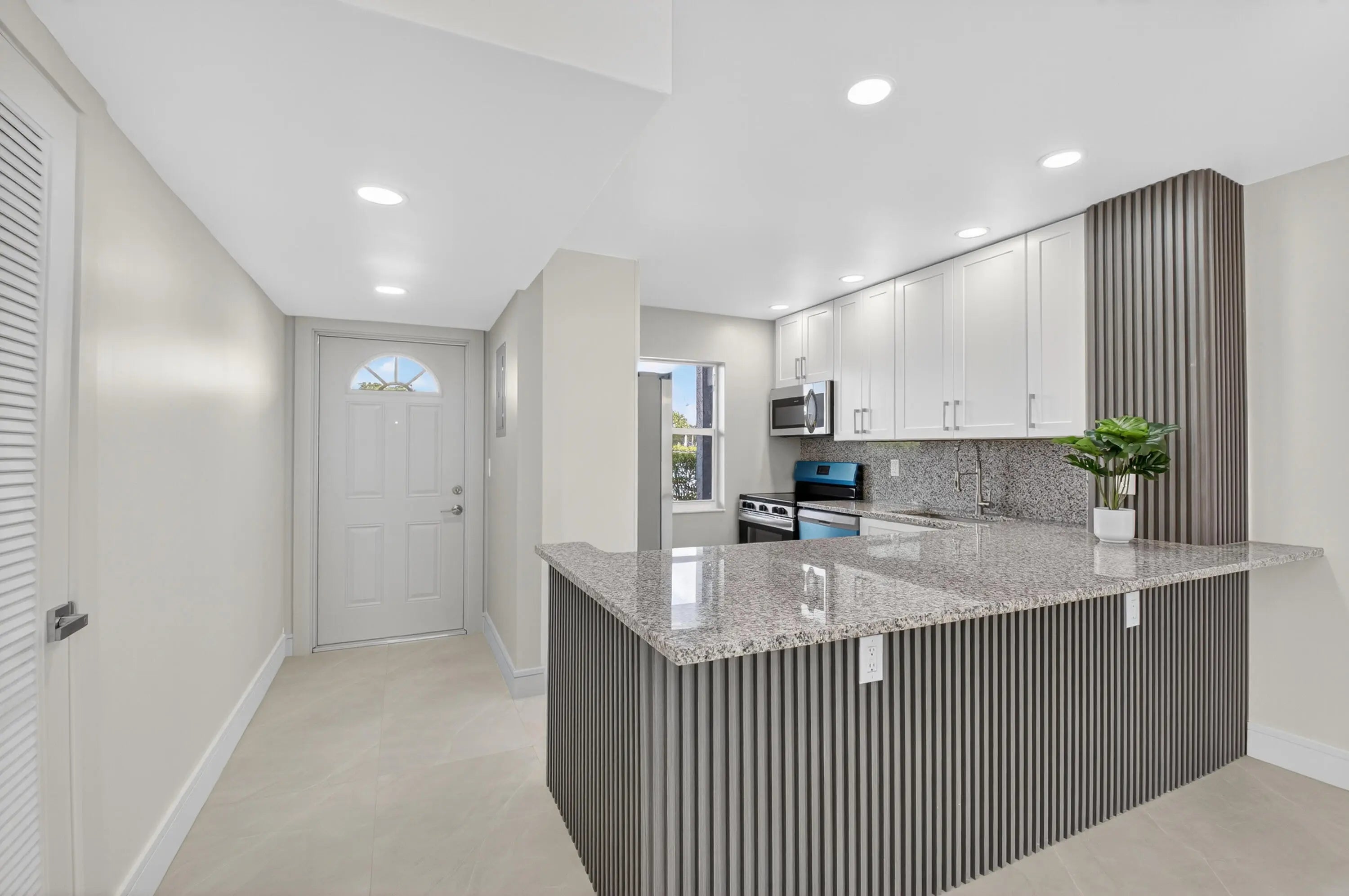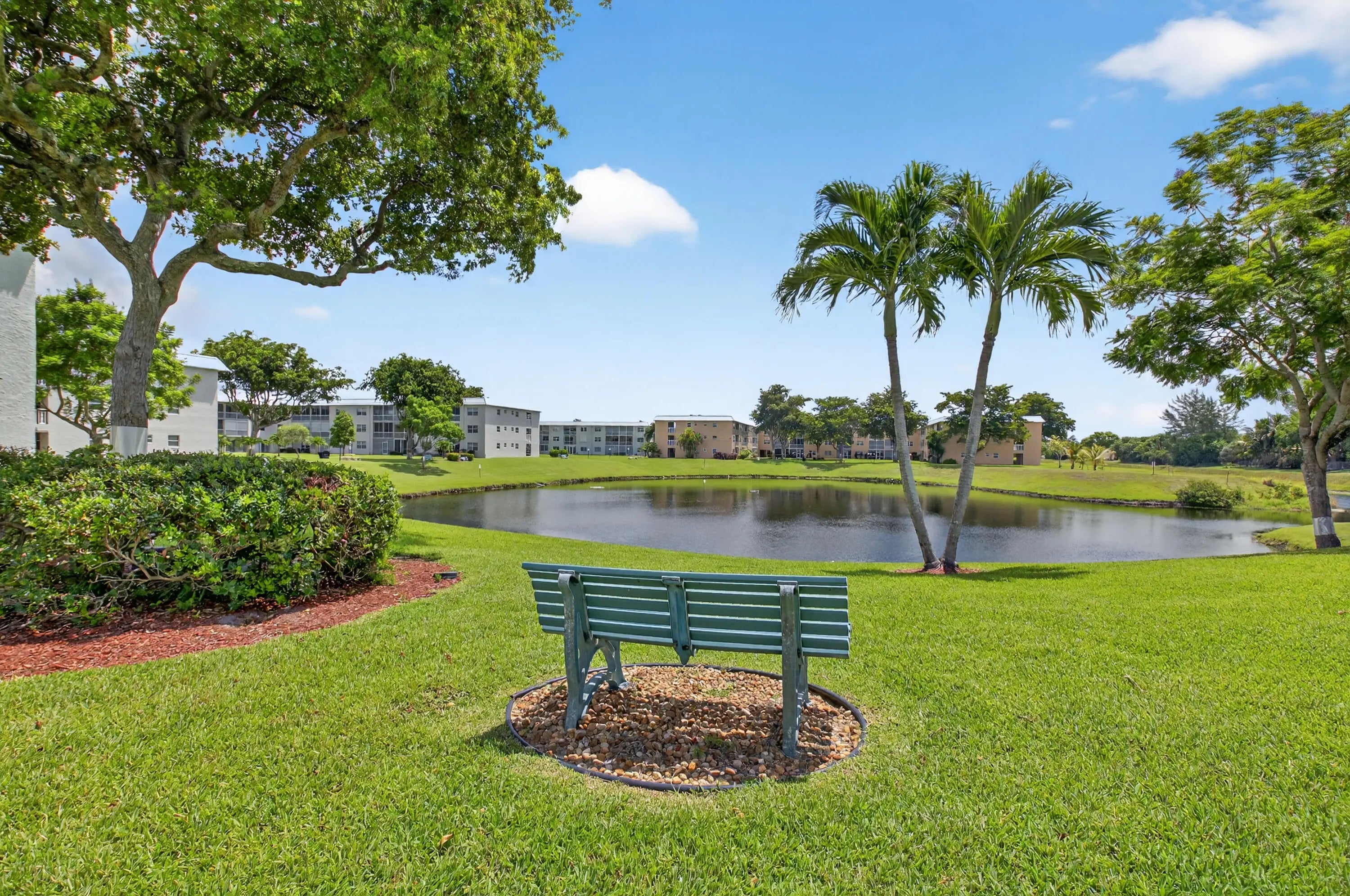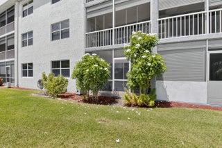 REDUCED!!! Magnificently remodeled 2 bedroom, 2 bath first floor unit overlooking the lake and garden beyond. 55+ Community. Sheer luxury featuring:. New AC system, New Electrical Panel, Neutral Porcelain tile throughout along with skimmed ceilings. Kitchen boasts New stainless steel appliances with extended granite counter. , impact windows. Greet guests in the formal foyer entry. Enjoy your gourmet white kitchen with granite counters. Great room with dining area is perfect for relaxing or entertaining. Primary bedroom with walk in closet and lavish primary bath. Guest bedroom and guest bathroom is ideal for friends. Close to shopping, major roadways and 25 minutes to the beaches. Florida living at its best. Great room and primary bedroom has staged photos