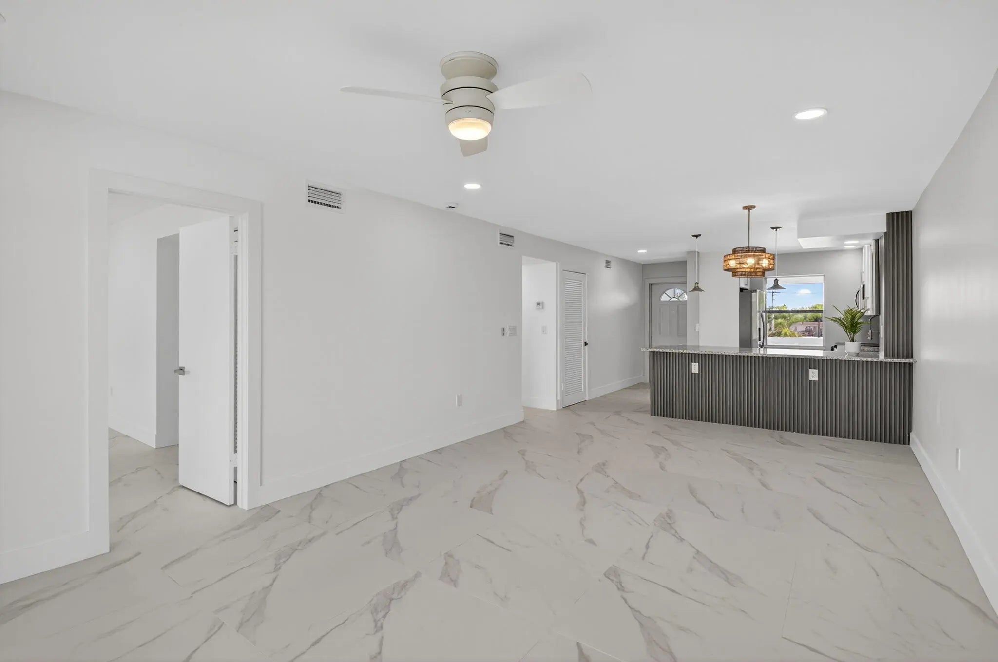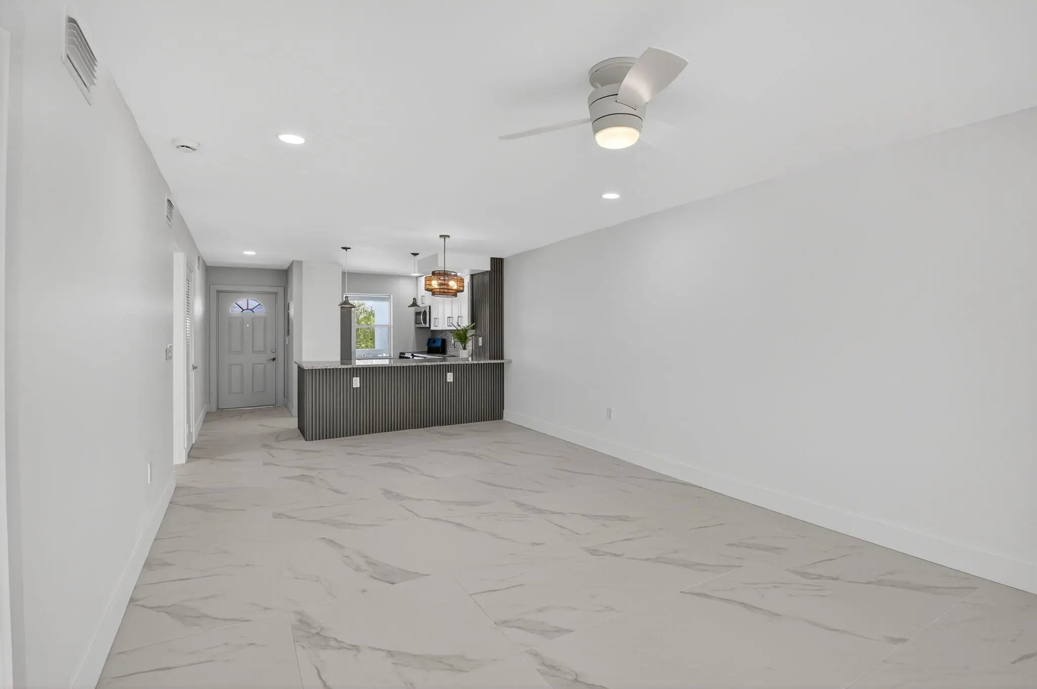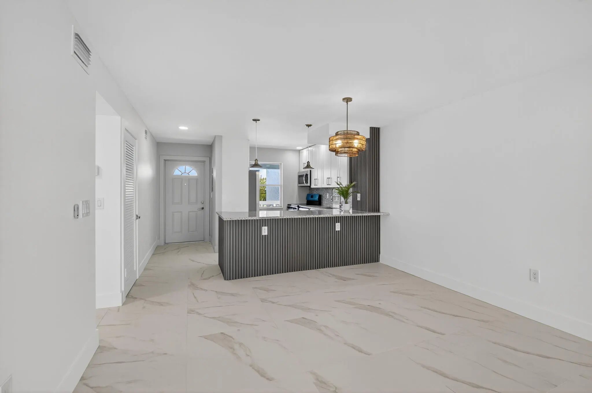 REDUCED!! Seller offers OWNER FINANCING for this Magnificently updated 2 bedroom, 2 bath unit in well maintained 55 + community overlooking the garden beyond. Pristine condition, gourmet kitchen with granite counters and stainless steel appliances. Kitchen is open to the spacious great room with dining and living room areas. Screened patio where you can relax and enjoy the garden beyond. Primary bedroom features a lavish bathroom with shower and outfitted walk in closet. Spacious guest room with shower. Totally REMODELED, TOP TO BOTTOM, New AC, New Electrical Panel and high hats. Porcelain tile throughout. No popcorn. Steps away from the state of the art saltwater pool. Close to major roadways, shopping and 20 minutes to the beaches. This exceptional unit is waiting for you