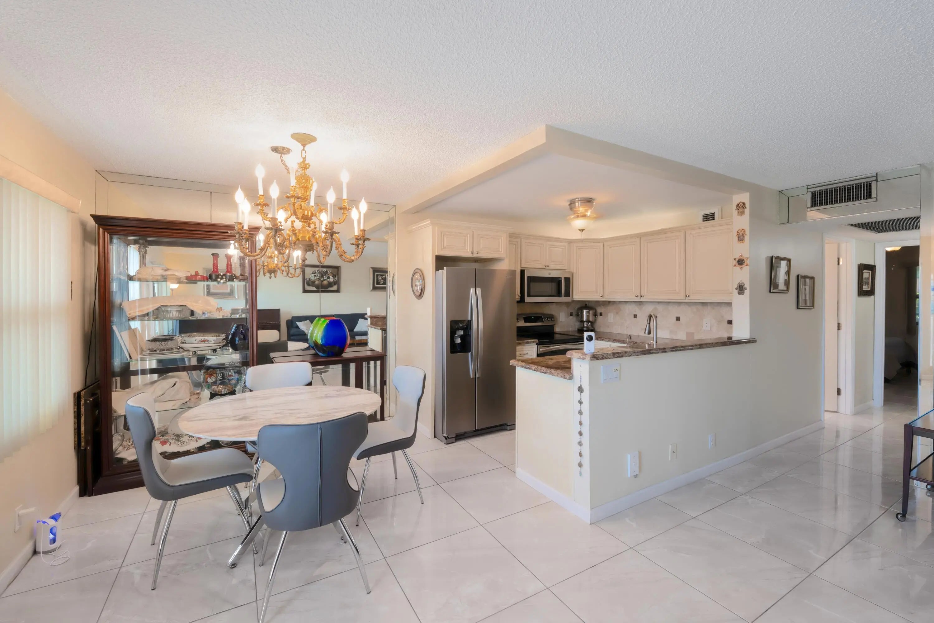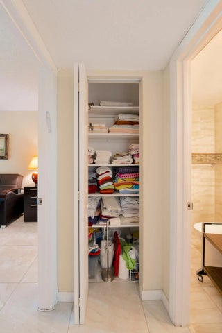 Welcome to resort style living with this Beautiful turnkey 2BR/2BA condo in Grantham E, a friendly 55+ community in Century Village. The kitchen boasts granite counters, tile backsplash, and stainless appliances that flow into the dining and living areas. Both bathrooms feature granite vanities and step-in showers.(water incl) Spacious bedrooms offer great storage, and the enclosed Florida room featuring a custom california closet for added storage space overlooks peaceful gardens. Tile flooring throughout, impact front door, and roll-down shutters add convenience and peace of mind. Steps from the elevator, laundry, and storage. Century Village provides 24-hour security plus pools, clubhouse, theater, fitness center, tennis, pickleball, and more—minutes from shopping, dining, & the beach!