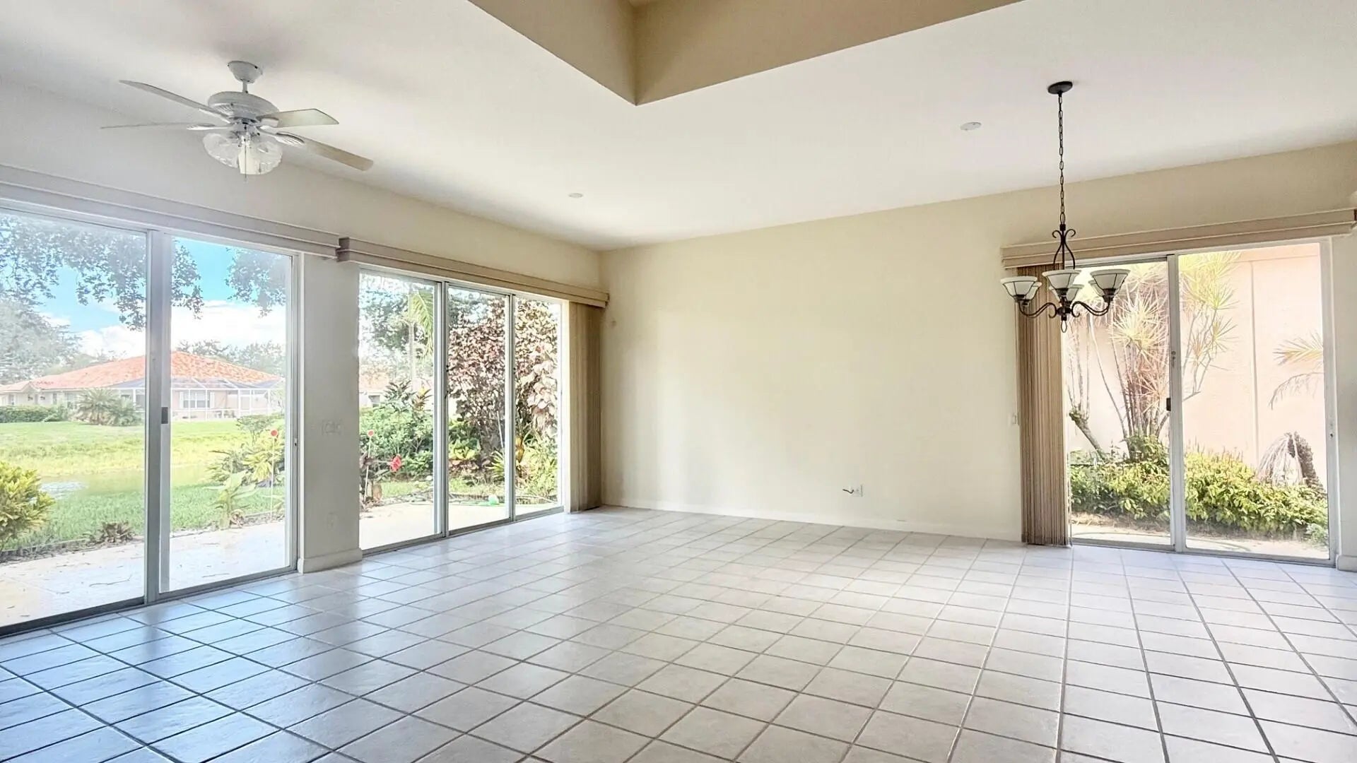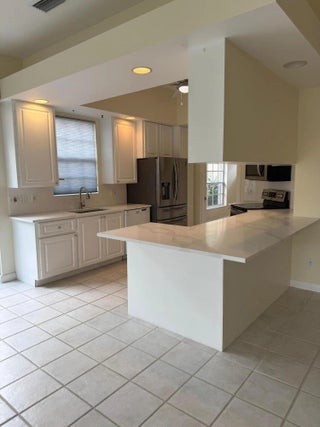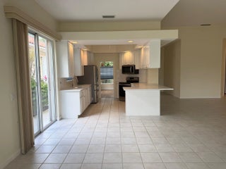 Spacious and beautifully maintained, this extended Oakmont model offers 3 bedrooms, 2 bathrooms, and a 2-car garage. The open floor plan features ceramic tile throughout the main living areas and luxury vinyl plank flooring in the bedrooms and den. Soaring 12-ft ceilings in the great room seamlessly connect the living and family rooms, creating the ideal space for entertaining. The principal suite boasts a unique double bathroom arrangement with walk-in shower, Roman tub, walk-in closet, and two additional wall closets. Two guest bedrooms on the opposite side of the home share a full bath, ensuring comfort and privacy for family or visitors. The laundry room includes a utility tub with updated washer and dryer. Added conveniences include a central vacuum and security system. Enjoy tranquil lake and bridge views from the open patio, surrounded by lush tropical landscaping that highlights pride of ownership. Located near the cul-de-sac with close proximity to the Town Center, this home combines space, functionality, and a prime location. The heart of this unique residential community is its waterfront Town Center where you can grab lunch or dinner at the on-site "Centanni" Italian restaurant; enjoy the tennis and pickle ball experience on the eight Har-tru lighted courts with on-site tennis instructor and active tennis program. Take a swim in one of the three heated pools, fish from one of the many picturesque bridges; stop by the library, play ping pong or pool. Also located in the Town Center is the full service Illustrated Properties real estate office, beauty salon, mail facility and children's playground. Enjoy 12 miles of scenic pedestrian pathways, take a bike ride or enjoy a vigorous work out in the renovated fitness center or play bocce - all for the exclusive use of River Walk residents! Yoga, mahjong, bridge, aqua aerobics, foreign language classes, crafts and more are some of the other fun activities offered! River Walk offers luxury resort-style living, without extravagant ''country club'' fees! Conveniently located near the turnpike, Palm Beach International Airport, the Outlet Malls, Kravis Center, Downtown, and Palm Beach Island.