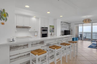 A must-see direct oceanfront residence! This beautifully updated 9th-floor home offers spacious living with 3 bedrooms, 2.5 baths, and two versatile bonus dens—perfect for additional guest space, a private office, or a personal gym. Highlights include: No carpet throughout 2021 HVAC system Brand-new appliances: 2025 KitchenAid wall oven/microwave combo, 2025 Bosch dishwasher, 2024 Frigidaire Gallery induction cooktop 2021 upgraded light fixtures Quartz kitchen countertops, fresh paint, custom closets, and a stylish coffee & beverage bar Plantation shutters in the guest suites and electric blinds in the living area This unit can be purchased turn-key for additional price point, fully furnished with mostly Baer's furniture (purchased in 2021), plus personal appliances, dishes, and two large TV. The water heater in 2017. A one car private garage and a beach storage cage also comes with this home.