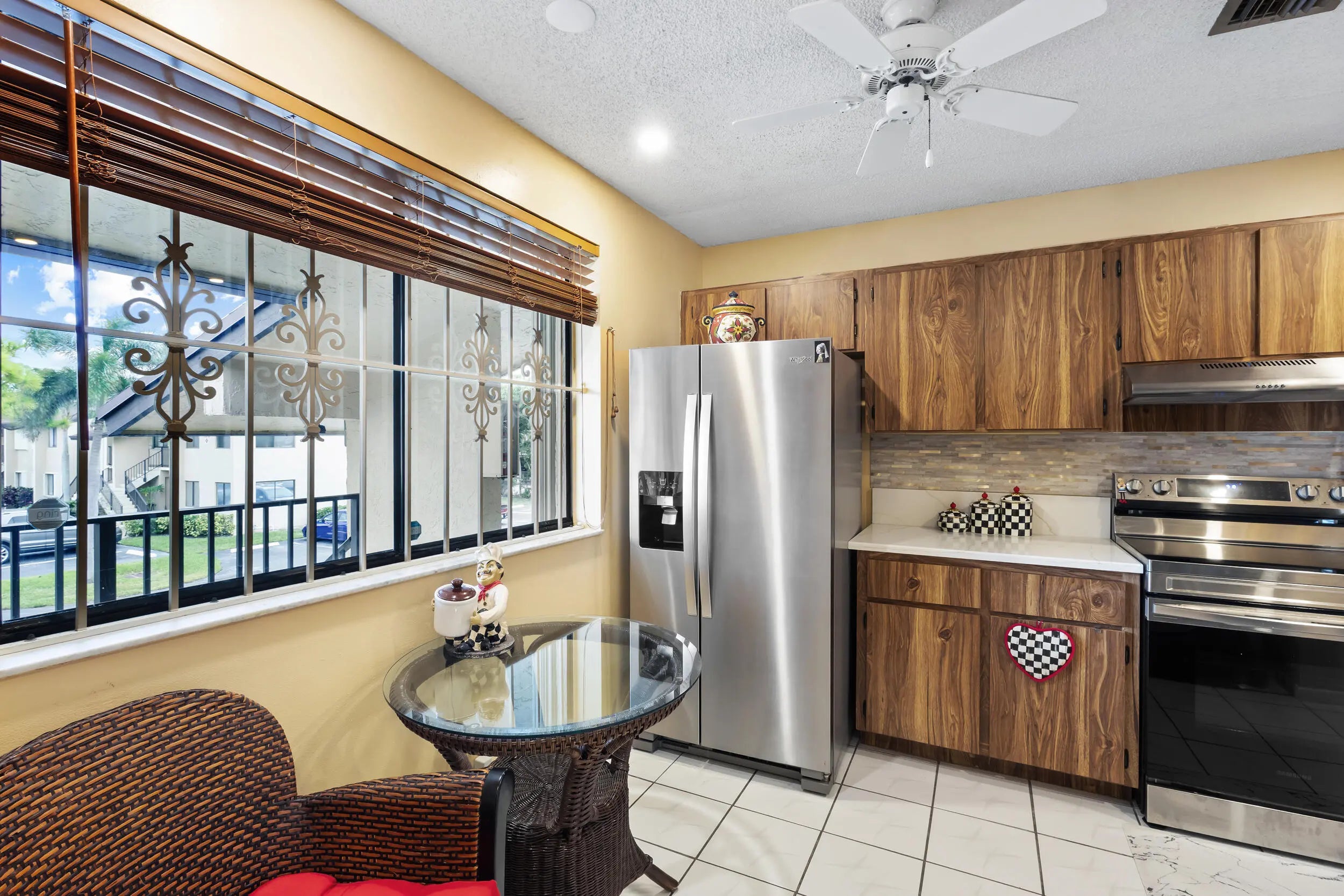 The perfect place to call home in East Deerfield Beach, just 1.5 miles from the ocean. This spacious 2 bed, 2 bath, second-floor corner unit in Windwood Isles offers an open layout with great natural light. The large eat-in kitchen features ample counter space, plenty of cabinets, stainless steel appliances, and a newer washer and dryer. Enjoy a private patio overlooking the tennis courts. Both bedrooms are generously sized with great closet space. Windwood Isles is an all-ages, pet-friendly community with assigned parking, guest parking, pool, and tennis courts—close to shops, dining, and the beach.
