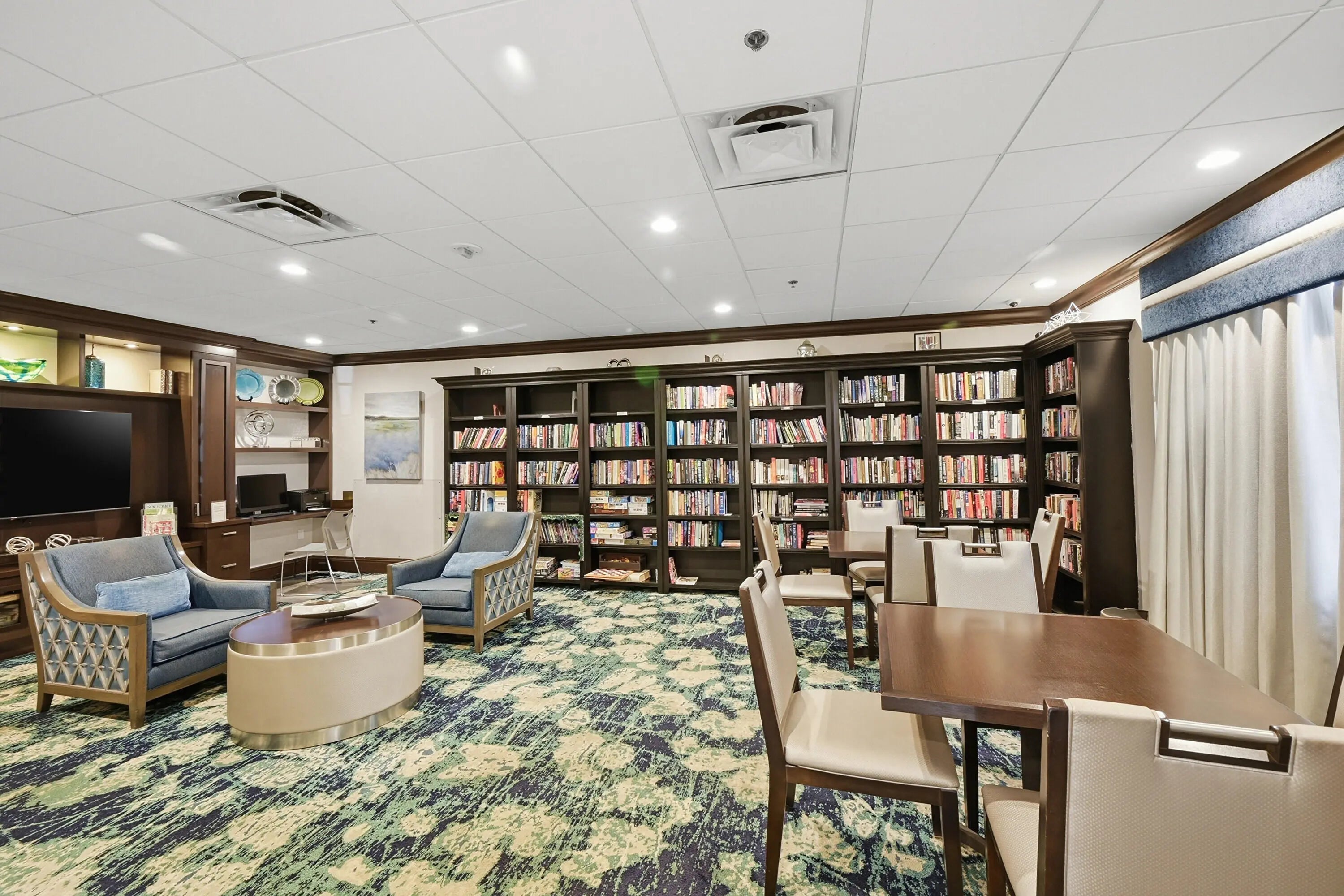 Basketball Court, Billiard Room, Clubhouse, Fitness Center, Game Room, Picnic Area, Pool, Sauna, Shuffleboard Court, Spa/Hot Tub, Tennis Court(s), Bocce Ball, Business Center, Cafe/Restaurant, Library, Pickleball Court(s)