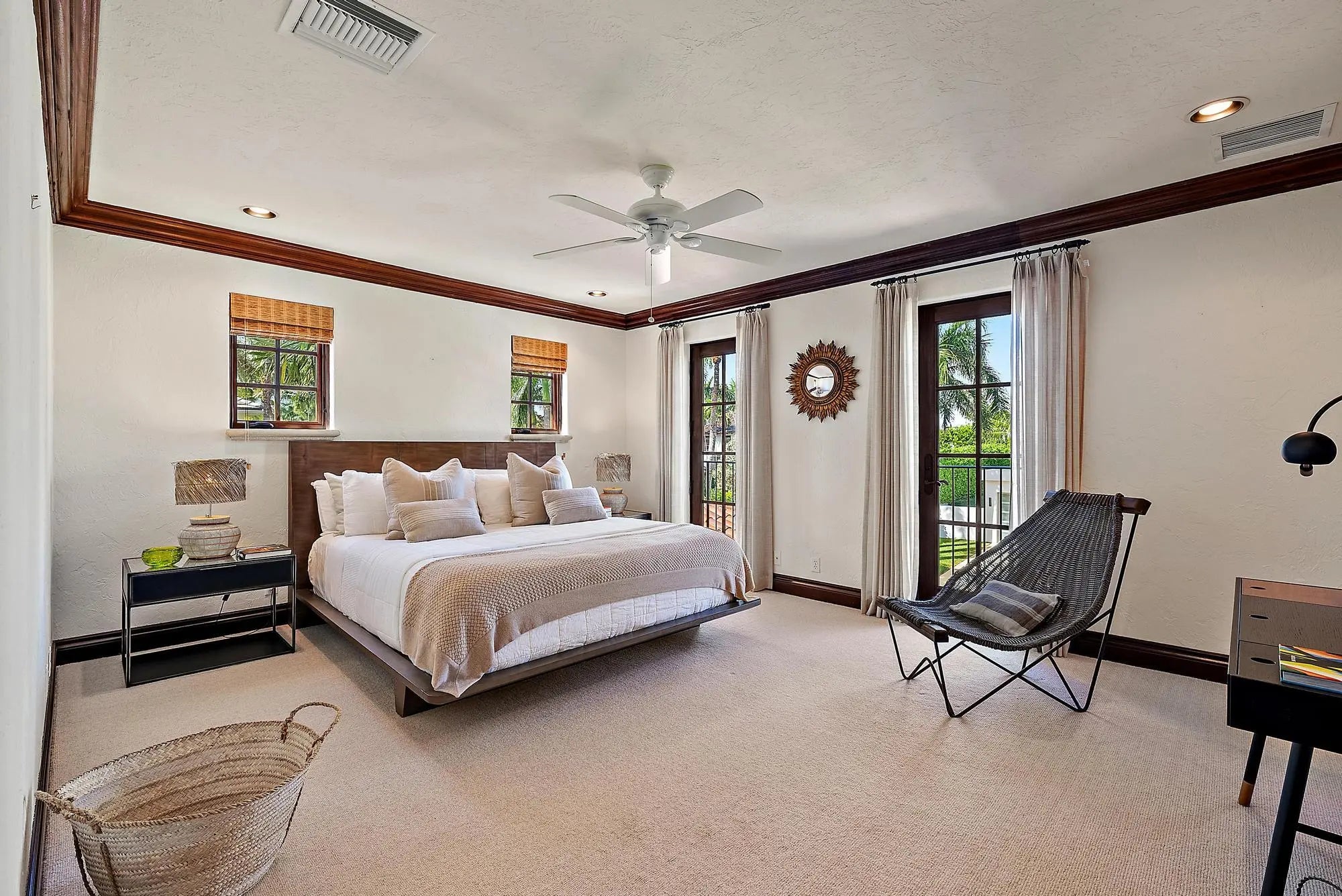 Dreamy Mediterranean style residence with easy ocean access & Lake Trail access at the east & west ends of the street. Beautifully appointed with 4 bedrooms, 6.1 baths. First floor primary suite with dual closets & baths. Spacious & recently renovated open kitchen with stone & wood countertops, luxury appliances & a very cozy Santa Barbara feel. Upstairs there are 3 spacious bedrooms with Juliet balconies & ensuite baths. Beautifully situated with a resort style backyard beautifully appointed with lush plantings, a heated pool & outdoor kitchen. Two car garage, generator and roof is 5 years old. Enjoy the easy Palm Beach lifestyle in this near north-end luxury property with easy proximity to Lake Trail, the ocean beach, fine dining, shops & cultural activities.
