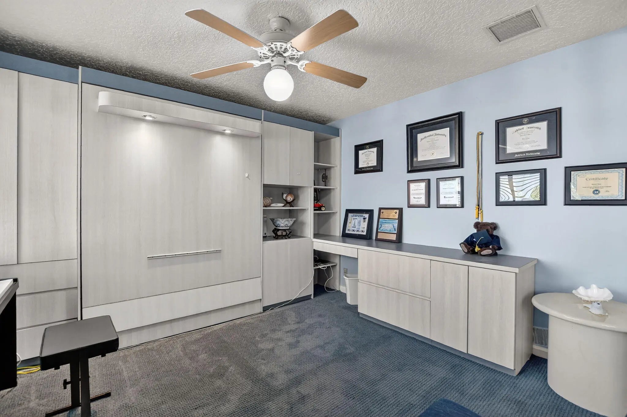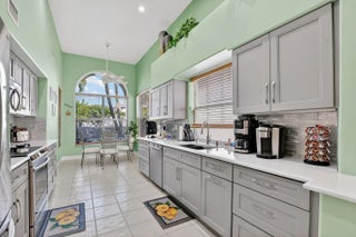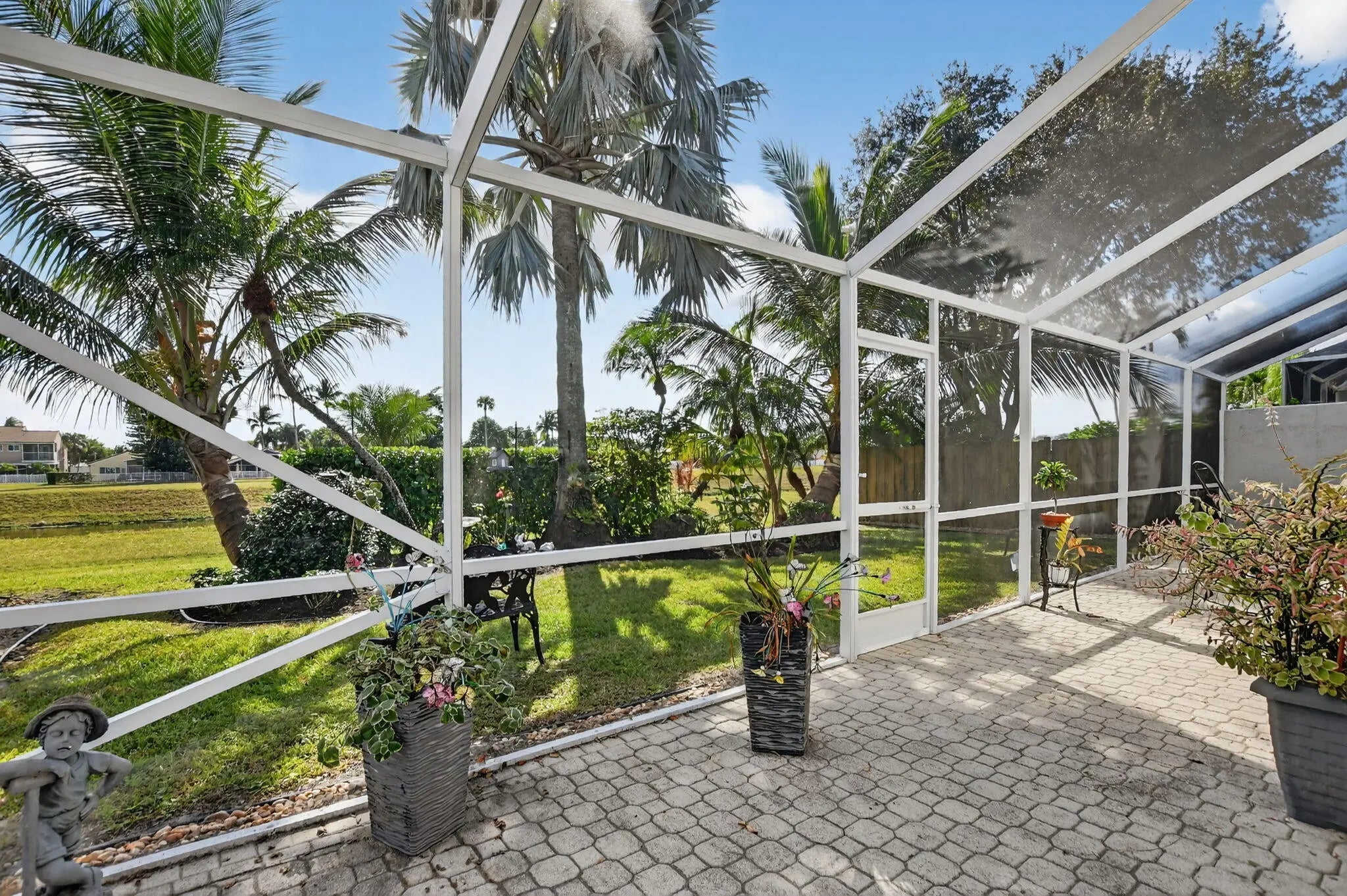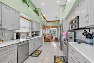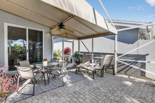 Beautifully maintained 2-story home in Palms at Boca Pointe, with true pride of ownership! 3/2.5 home features primary bedroom on the first floor, formal living room, family room, and 2 bedrooms upstairs. Updated kitchen has gray cabinetry, quartz countertops, stainless steel appliances, and large eat-in area. Bathrooms renovated. Expansive screened paver patio, has large covered area, overlooking private backyard with canal views. Impact glass on rear windows. Updates include 2018 roof and skylights and one of the two A/C units 2020. Level 2 electric car charger, built-in closet shelving, Murphy bed with desk add-on, updated washer and dryer, full-house water filtration system, newly replaced patio screening and framing, side-yard paver pathway, and more! Community pool.