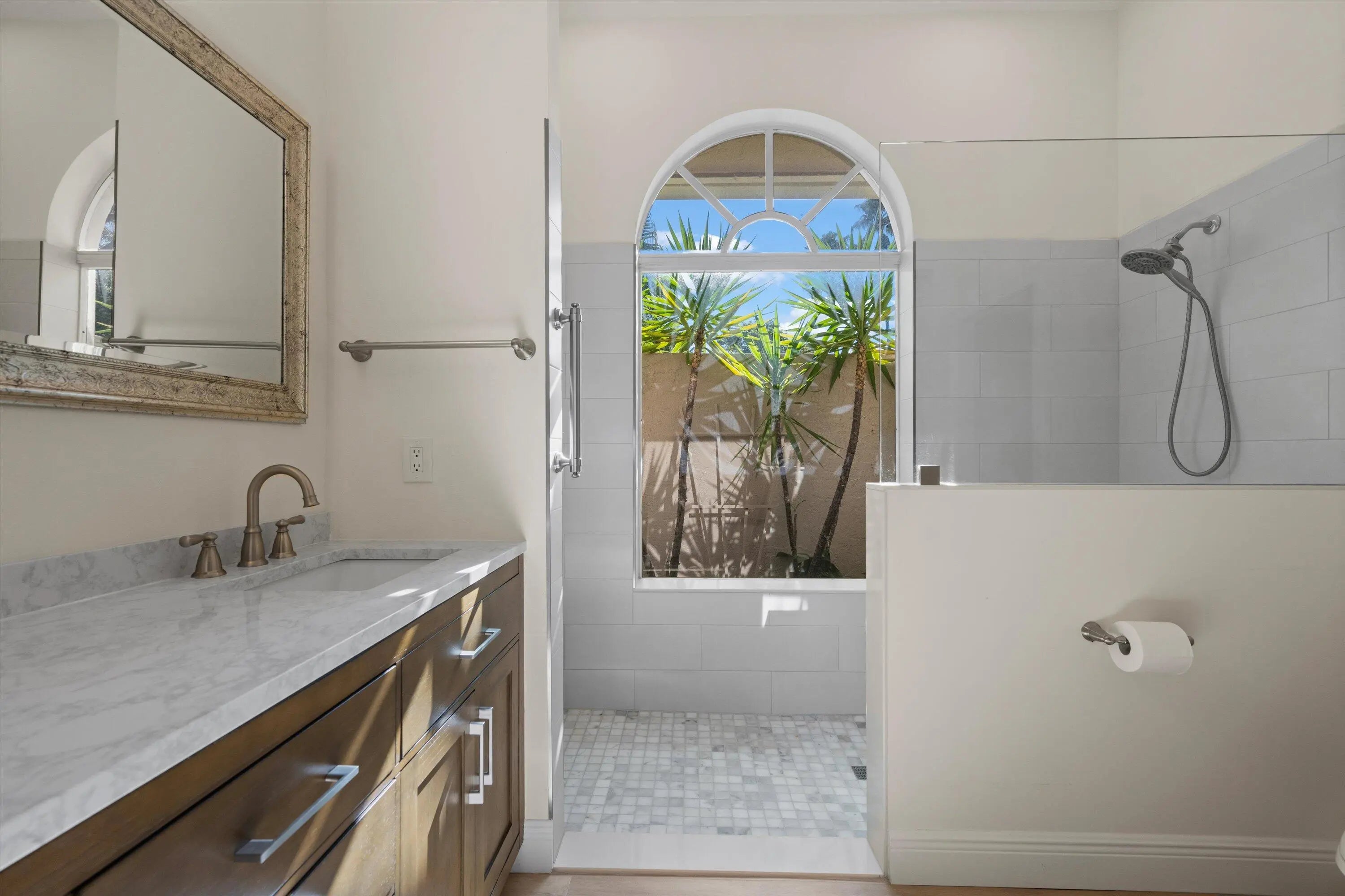 Spacious 2-bedroom single-story villa in a split floor plan (with a 1-car garage) in the Heather Run neighborhood within PGA National. With high ceilings and skylights in the great room, this villa has wonderful natural light. The primary bathroom was renovated and expanded in late 2023 to make it handicapped accessible, while the kitchen and guest bathroom were previously updated. There is neutral-colored tile in the main living area and new luxury vinyl flooring in both bedrooms. The HOA is responsible for maintenance, repair & replacement of the roof (as well as exterior painting). The community pool is across the street and the community allows each residence to be rented 2 times per year (with a 90-day minimum term). The PGA National development offers a variety of amenities - walking paths, sidewalks, bike trails, community pool, an on-site luxury resort with various dining options and a renowned spa. Membership in the PGA National Members Club is available (with Golf, Sports & Racquet membership levels) but not required. PGA National is conveniently located near Interstate 95, the Florida Turnpike, great restaurants, shopping and Palm Beach International Airport (PBIA).