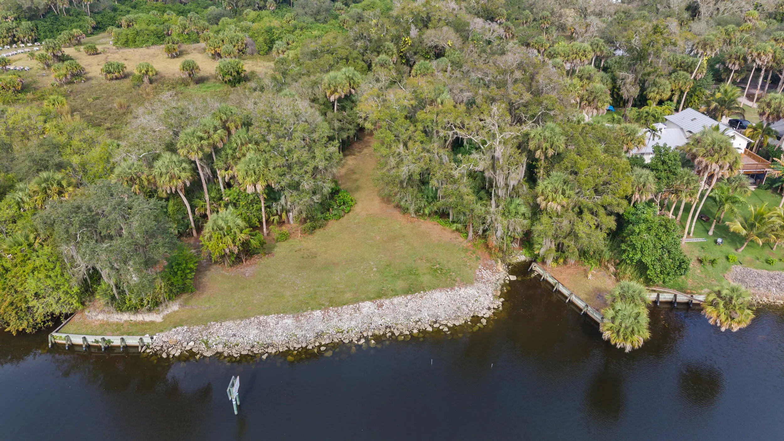 This exceptional and secluded 0.87-acre property boasts approximately 200 feet of waterfrontage on the Okeechobee Waterway, offering breathtaking views of the old Florida landscape beneath a majestic canopy of mature oaks and palms, with access to the Atlantic Ocean. The site features an established canoe launch and seawalls. Located at the end of a road, this private parcel provides unparalleled seclusion and tranquility, making it an ideal canvas for building your dream waterfront residence.