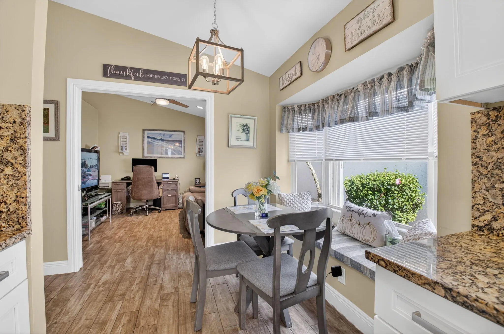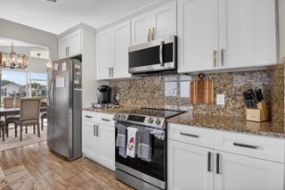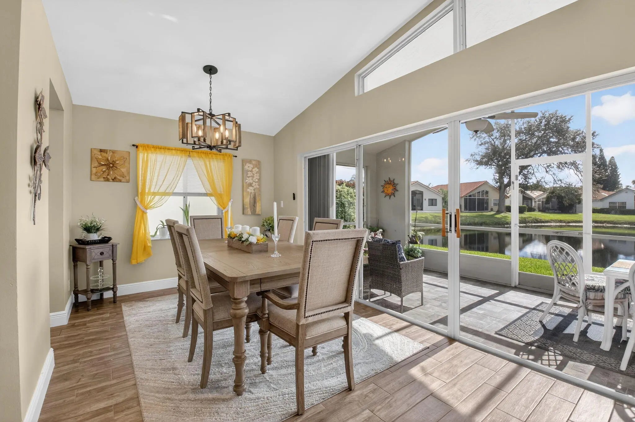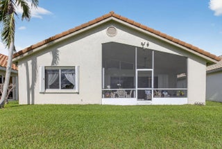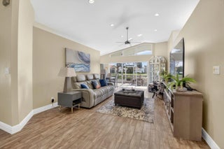 Welcome Home to this stunning 3 bed 2 bath Lakefront Beauty! This home features a beautifully renovated kitchen w/ white panel cabinetry, granite countertops & full backsplash as well as stainless appliances. Gorgeous wood-look ceramic flooring in living areas. Primary suite boasts newer renovated bath w/ barn style door, large closet,& slider to patio. Roofed/screened patio overlooking the lake! Hurricane impact windows, Accordion hurricane shutters. Roof replaced 2014. This beautiful home has been impeccably maintained and is awaiting a new owner. Association paints exterior of homes every 8 years and cleans roofs every 2 years. Super LOW HOA in this 55+ community!
