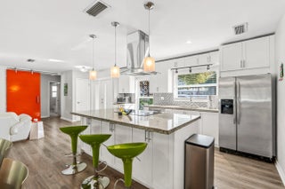 Updated 3BR/2BA mid-century pool home in the sought-after waterfront community of Hypoluxo Shores, just steps from the Intracoastal. This single-story home features a split floor plan, open living spaces, and a Florida room overlooking a private tropical backyard. Recent upgrades include impact windows and doors (2022), new roof (2023), and new HVAC (2024). The kitchen offers granite countertops, stainless steel appliances, and ample storage, with laminate flooring throughout the main living areas. Enjoy a fenced backyard with a heated pool, spa, and lush landscaping, perfect for relaxing or entertaining. Quiet dead-end street location close to beaches, shopping, dining, and major highways. Move-in ready with all major updates completed.