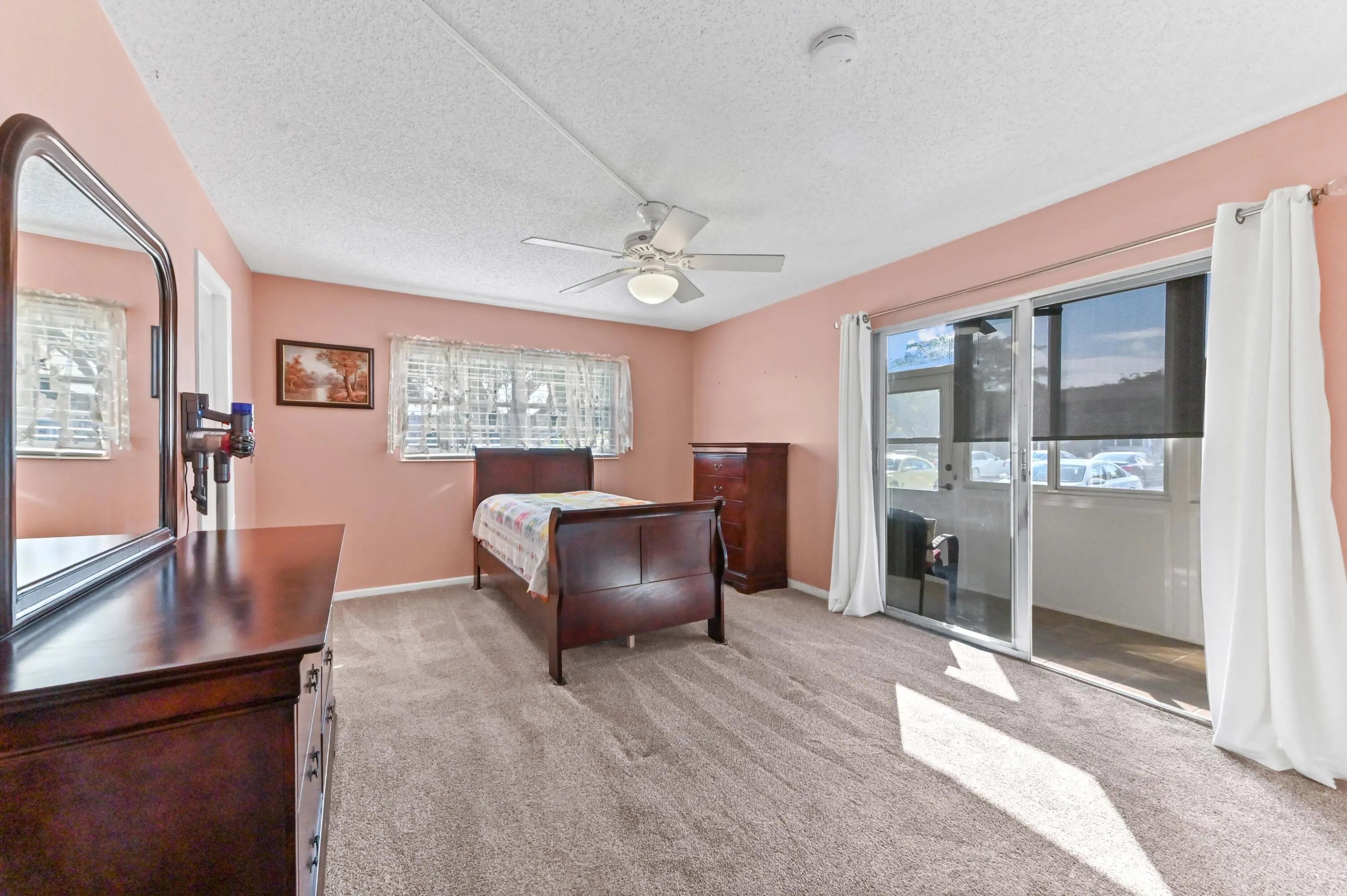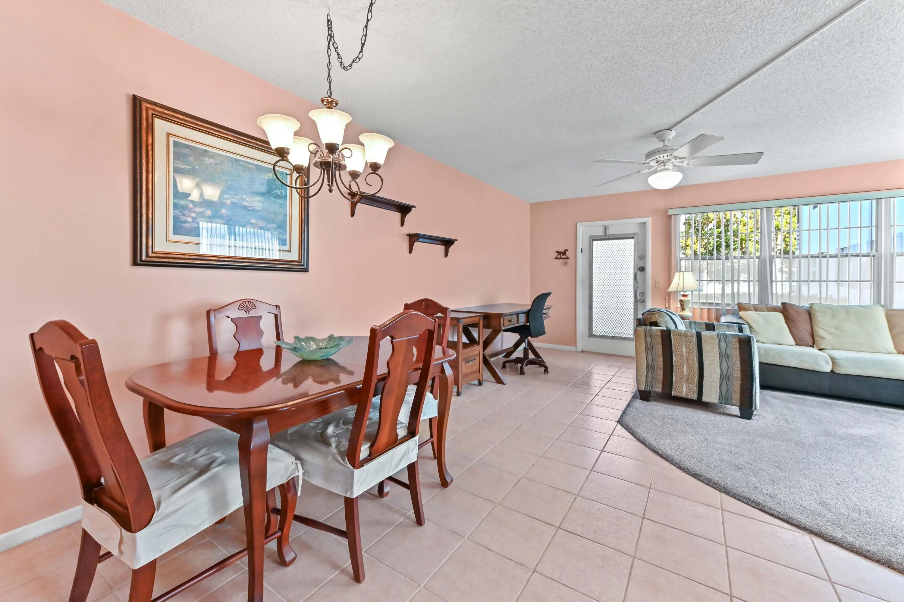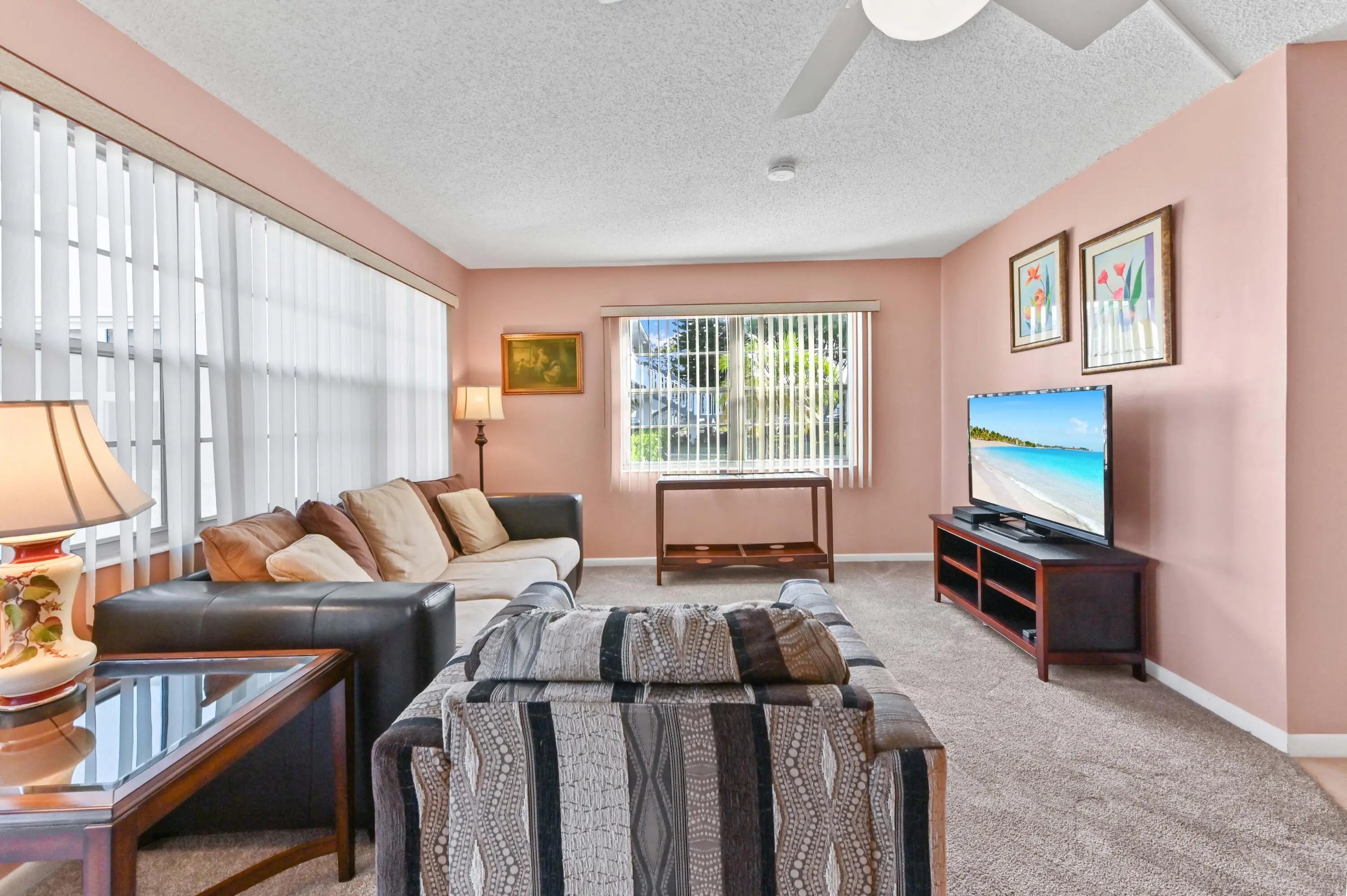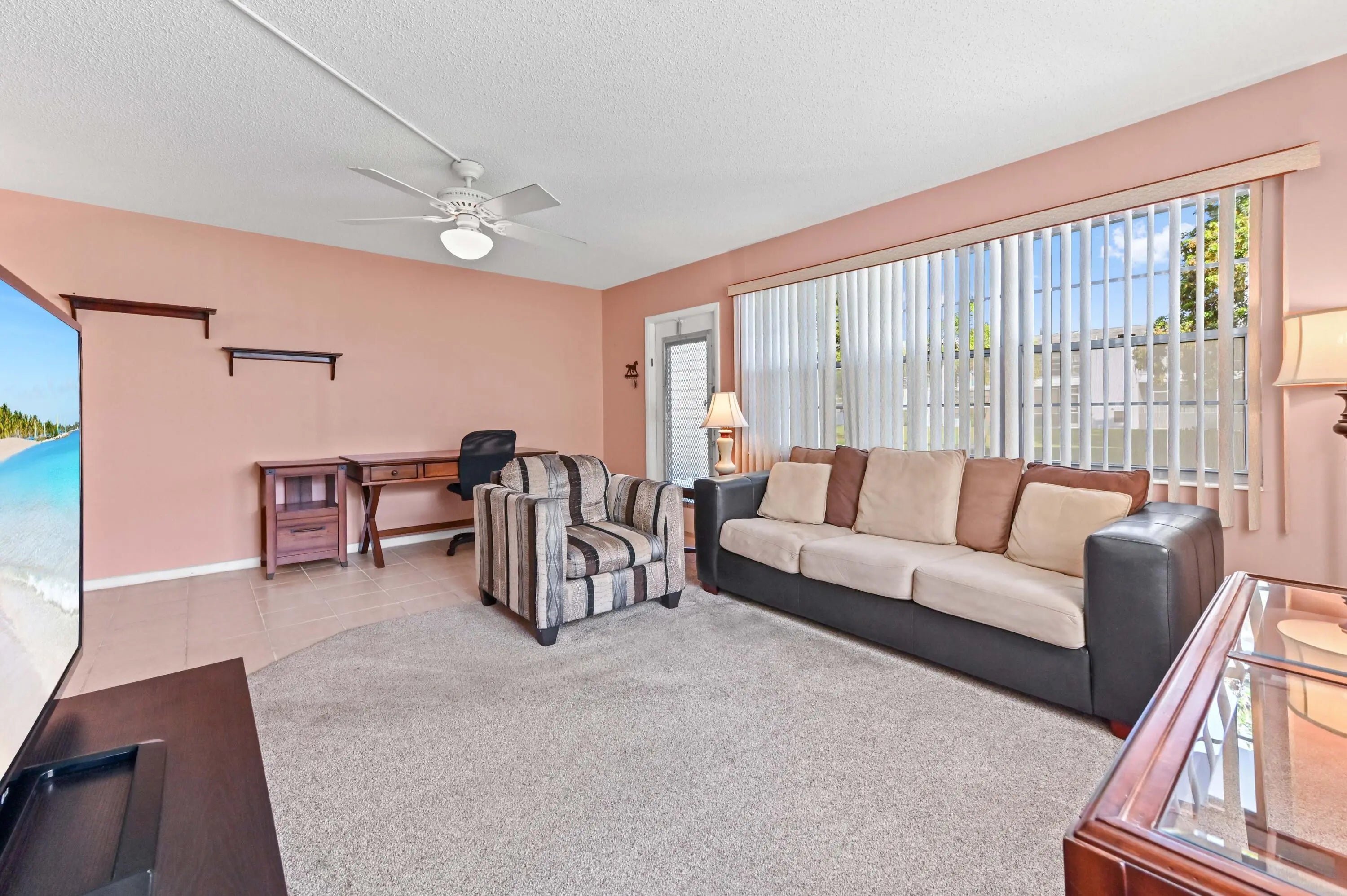 Welcome to resort style living! Century village is an active 55+ community with tons of activities, amenities and conveniently located to shopping and dining. State of the art Gym, Pool, Pickleball and more! Step into a world of sunshine and ease in this bright and cheerful ground-floor corner residence, perfectly positioned for both privacy and convenience. This fully furnished gem is move-in ready and packed with desirable features, including central A/C for year-round climate control. The bathroom has a spacious stall shower for enhanced accessibility and style. Step outside to your private enclosed patio, which features a convenient back door for easy outdoor accessperfect for enjoying the Florida breeze. Located in a vibrant 55+ community, this home offers the ideal blend of social opportunities and peaceful living.
