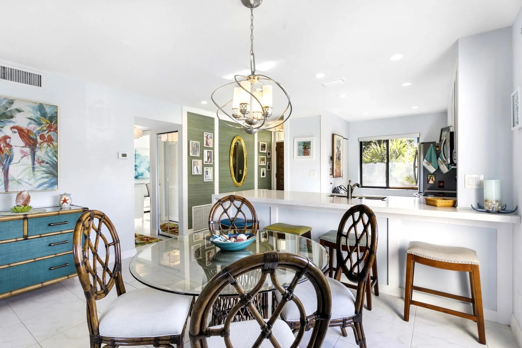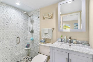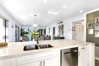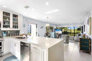 MOTIVATED SELLER! PRICE REDUCED. Recently renovated from top to bottom, this rare and stunning top floor, corner unit residence offers effortless move-in living with 2 sizeable bedrooms and 2 beautifully appointed baths. The new designer kitchen shines with top-of-the-line appliances and sleek, modern finishes with a tankless hot water heater. The roller shade window treatments and accordion hurricane shutters seamlessly blend into the delightful ambiance of this hidden gem. Bathed in natural light and enhanced by its private corner setting, the home features a screened, wraparound balcony with tranquil views of the sparkling pool - the perfect backdrop for morning coffee or evening unwinding with colorful sunset views. A sophisticated retreat designed for embracing the very best of the Florida lifestyle