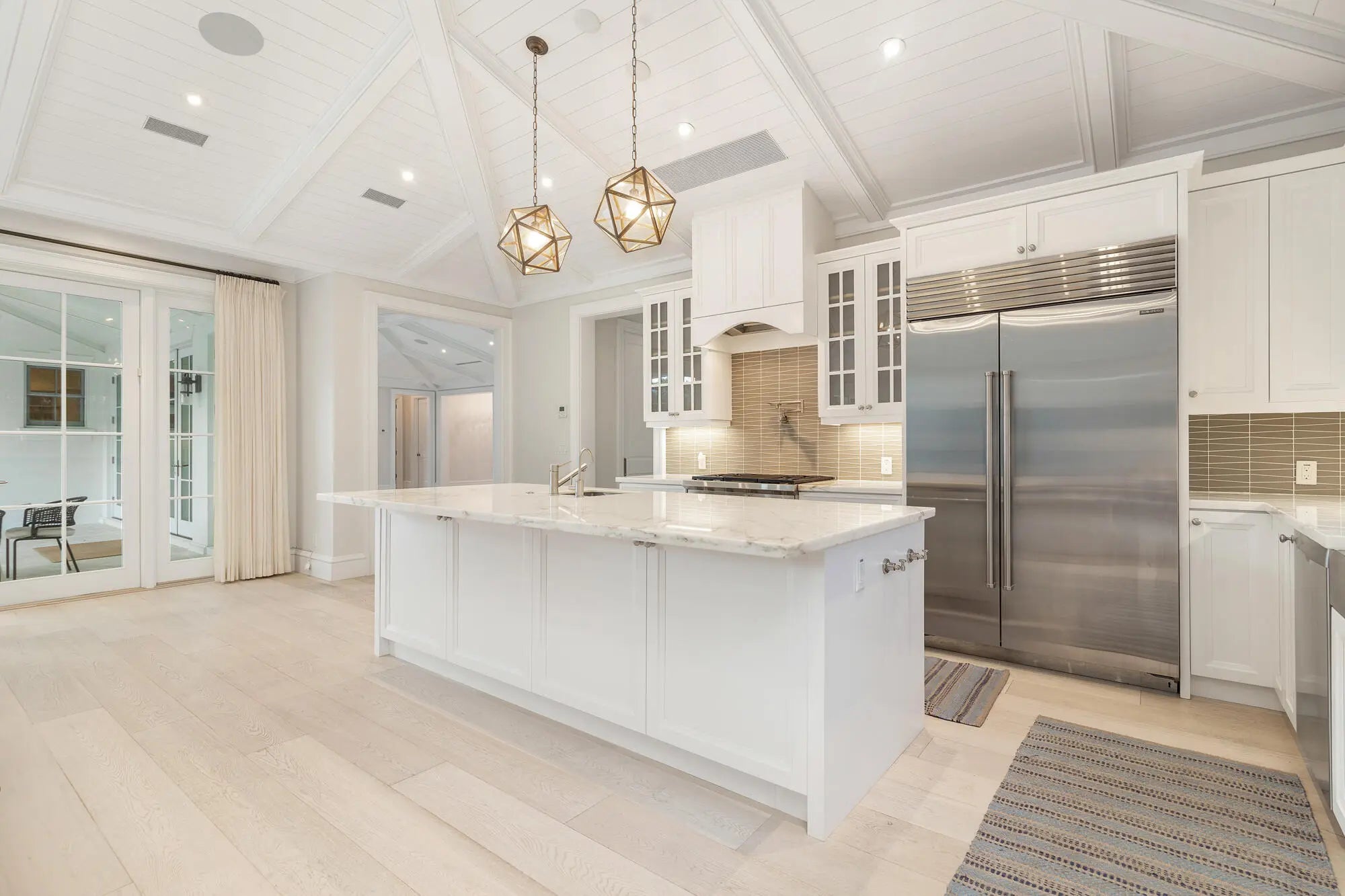 Exquisite Bermuda-style residence completed in 2018 and positioned on high elevation (9'+), just moments from the beach. This refined designer home offers 5 bedrooms and 6.2 baths within a thoughtfully crafted floor plan. An open-concept kitchen and family room overlook serene pool and garden views. The chef's kitchen features a large island, Wolf and Sub-Zero appliances, and custom birch cabinetry, ideal for both daily living and entertaining. Additional highlights include 8-zone climate control including the 2-car garage, whole-house generator, and impact-resistant windows, delivering comfort, security, and effortless Palm Beach living.