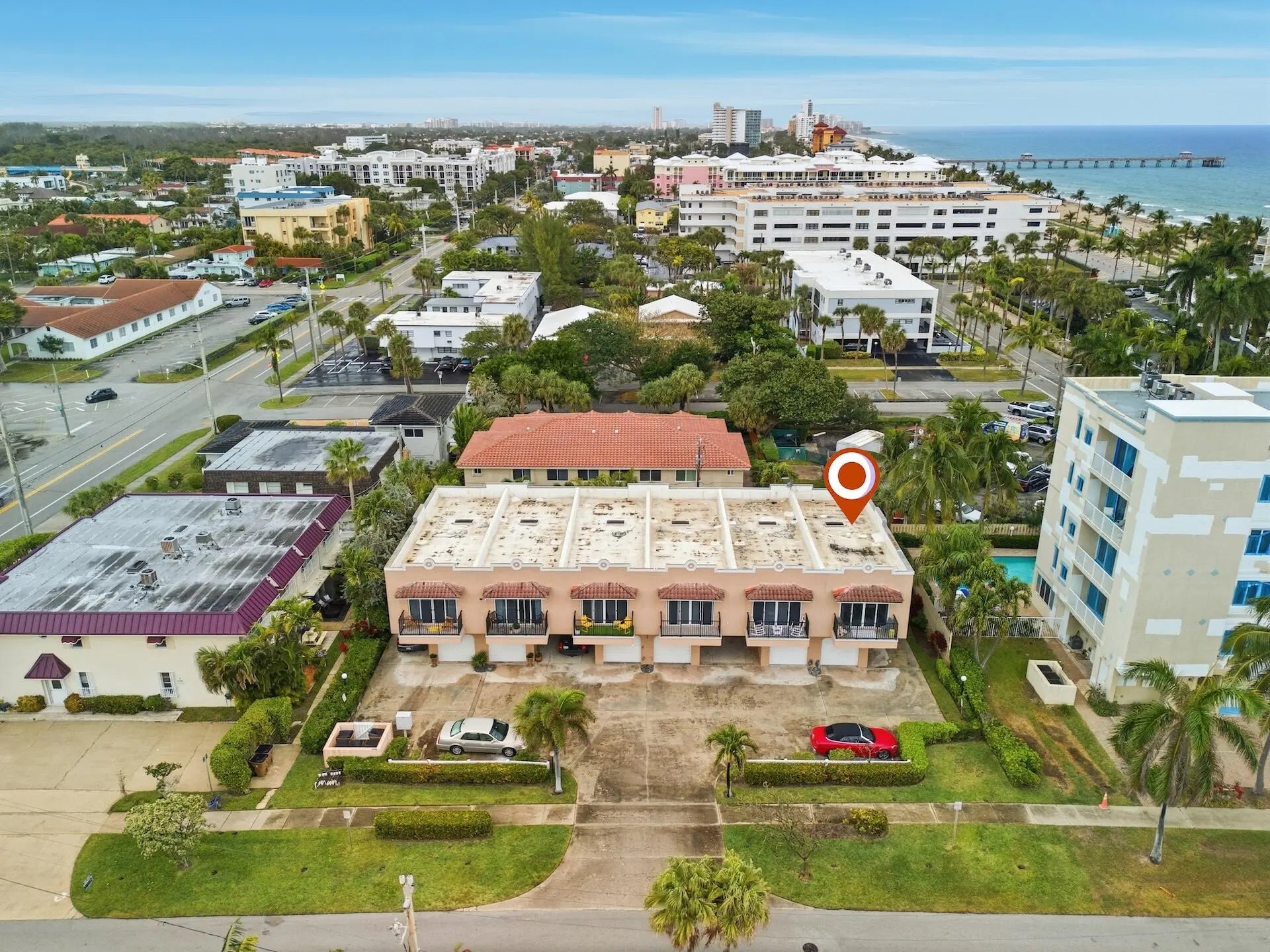 Available for annual rental the beginning of April. Steps away from the beach! This ideally located corner unit townhouse boasts a private 1 car garage and covered carport. Two primary bedrooms available with one located on ground floor and the other on the second floor. Additional half bath located by the kitchen great for guests to use. Enjoy views of the ocean from your balcony. Walk to restaurants and shops or enjoy a bike ride along A1A. Washer & Dryer in unit!