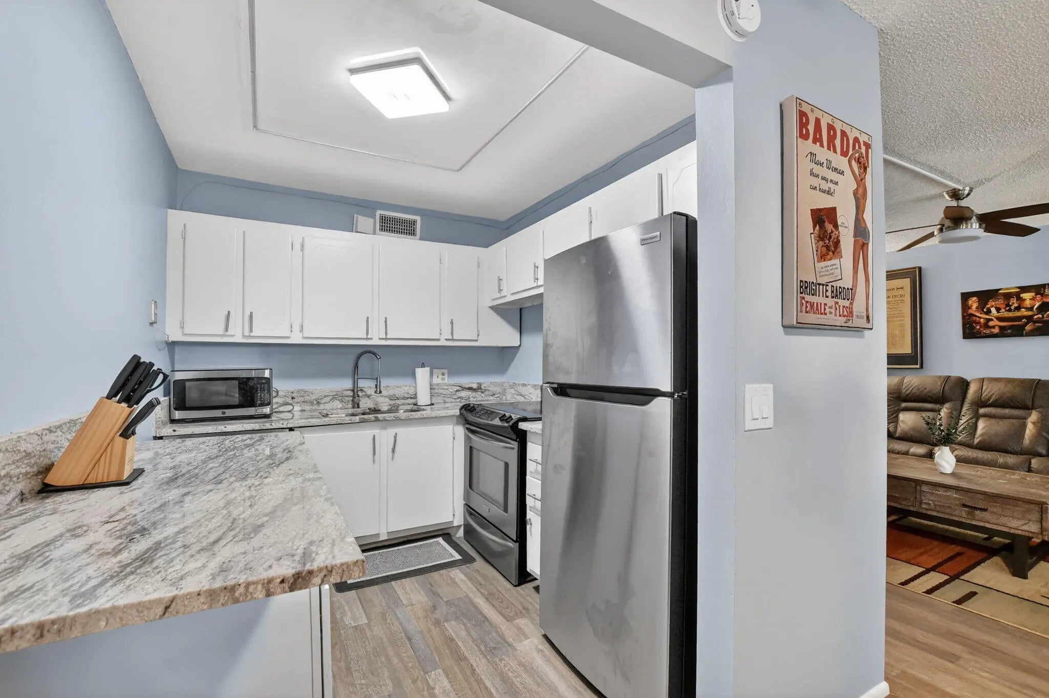Bright, open, and impeccably maintained, this spacious 2-bedroom, 1.5-bath residence is located in the desirable Ventnor R building, offering one of the largest floor plans in the community. Modern vinyl flooring flows throughout, complementing the pristine condition of the home. Enjoy large closets, a private enclosed balcony, and a quiet, peaceful setting. Features include a brand-new A/C and refrigerator. Residents enjoy a private building pool, plus access to a stunning clubhouse with fitness center, classes, events, indoor and outdoor pools, tennis and shuffleboard courts. Man-gated Century Village, just 10 minutes from the beach, an exceptional lifestyle awaits.