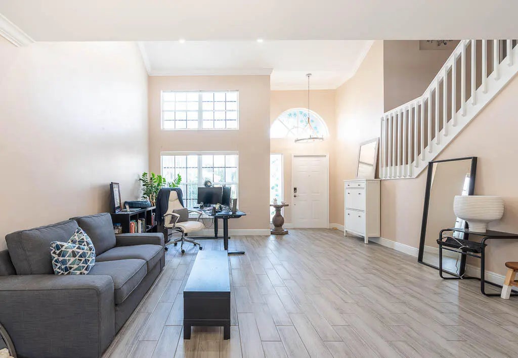 This exceptional 4-bedroom, 3-bath residence with a 2 car garage offers refined living and effortless entertaining. The home features abundant light, an open layout, custom kitchen, tile flooring throughout the first floor, tankless water heater (2023), A/C (2023), and roof (2023). Your private oasis awaits you in your backyard with a newly installed fence, screen enclosed heated pool, fire pit, fruit trees (mature avocado, coconut and mango trees), and lush landscaping all on a rare oversized lot that backs up to an undevelopable open field providing even more seclusion. Located within a gated community offering a clubhouse, tennis courts, basketball courts, a fitness center, swimming pool, beach volleyball and a tot lot. Ideally situated near shopping, dining and every day convenience.