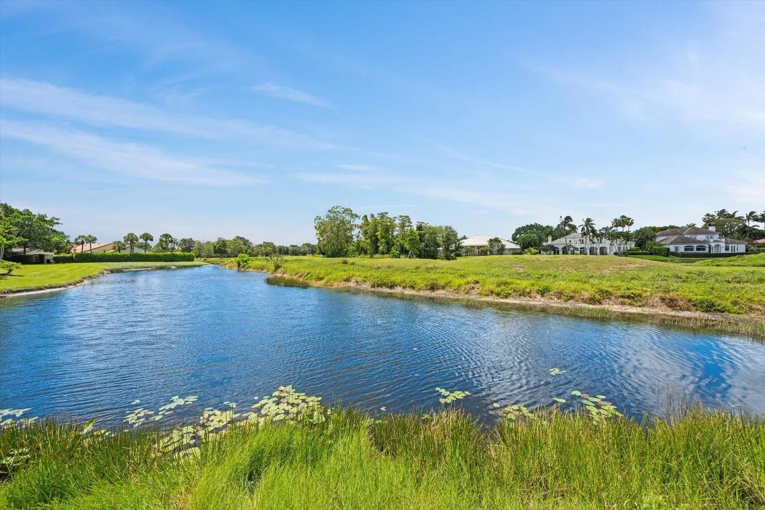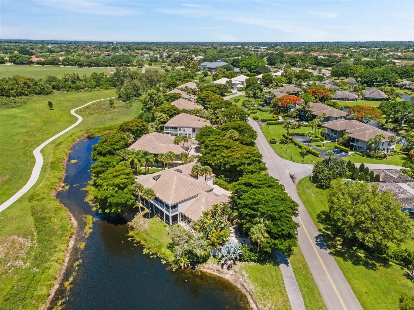 ONE OF A KIND- ONLY GROUND FLOOR UNIT WITH FENCED COURTYARD AND SPA IN PALM BEACH POLO! END BUILDING WITH TOTAL PRIVACY! Private beyond compare, this rarely available first-floor, end-unit waterfront residence is discreetly positioned within one of Palm Beach Polo's most coveted and tranquil enclaves. With sweeping, unobstructed views and over 100 feet of water frontage overlooking a protected preserve, the setting is defined by quiet beauty, natural privacy, and a sense of calm rarely found within the community. Designed to maximize both serenity and livability, the residence features a private courtyard with spa (new spa equipment), offering a peaceful outdoor retreat with a fireplace--ideal for intimate gatherings or quiet moments. A screened lanai extends the living space outdoors, framing long water views and a constantly changing natural landscape where waterfowl, birds, and otters frequent visitors. The interiors are filled with natural light and thoughtfully oriented to take full advantage of the end-unit vantage point, ensuring privacy and open sightlines throughout. The main residence offers three bedrooms and three baths, complemented by an additional private one-bedroom, one-bath apartment with its own entrance, providing exceptional flexibility for guests, staff, or extended stays. All systems are current and meticulously maintained, offering peace of mind and turnkey ease. Quiet, peaceful, and impeccably positioned, this residence is not simply a home- it is a private waterfront sanctuary within Palm Beach Polo, one of Wellington's most exclusive addresses.