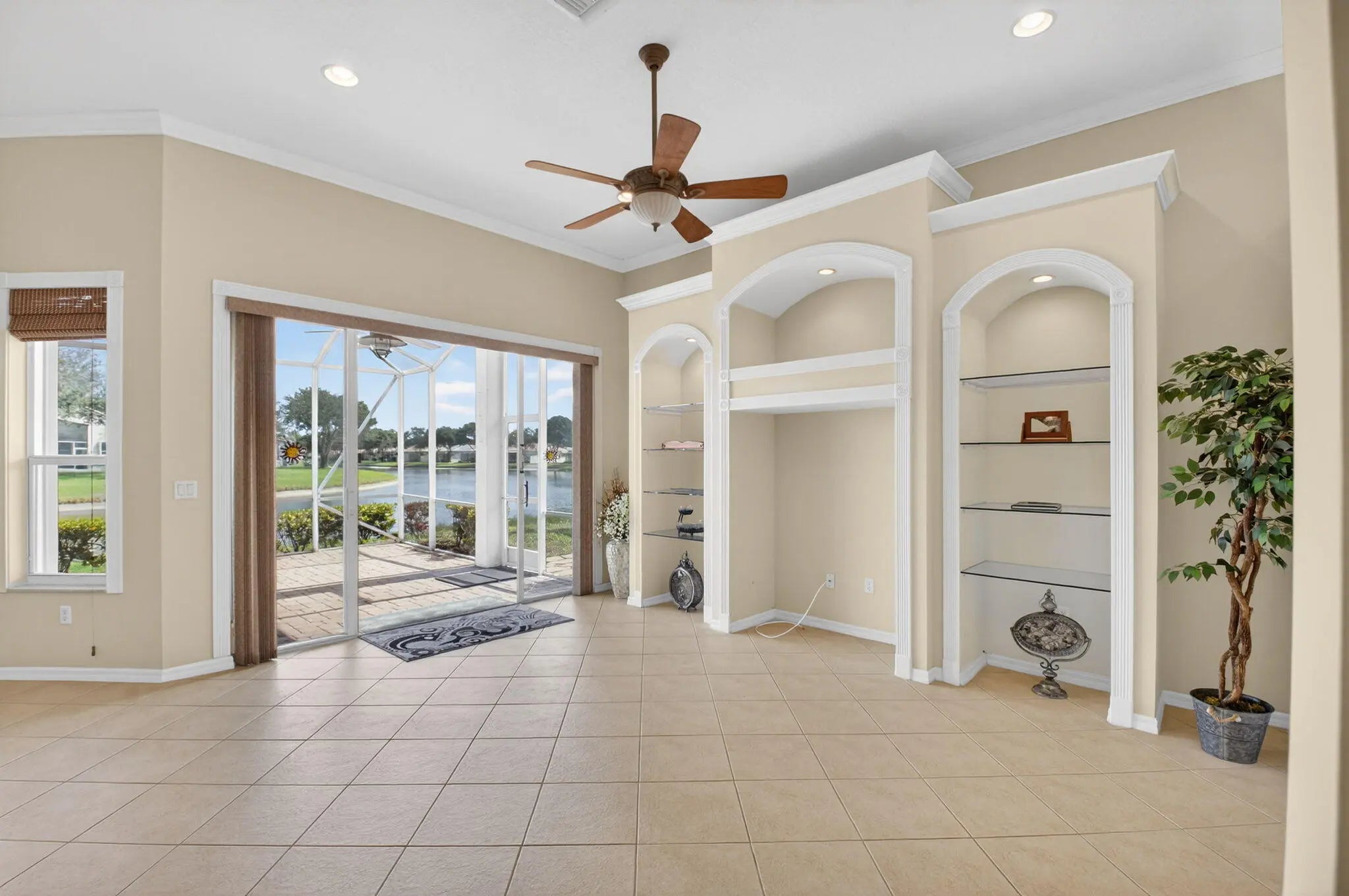 This beautifully maintained residence offers exceptional value and peace of mind with a BRAND NEW roof completed August 22, 2025 and a stunning, full glistening lake view that creates a serene and picturesque backdrop for everyday living. Gently used by its snowbird owner, the home has been meticulously cared for and lightly lived in. Designed for both comfort and elegance, the home features ceramic tile throughout the main living areas and a versatile den that can be easily converted into a third bedroom. The open, eat-in kitchen is ideal for casual dining and entertaining, showcasing granite countertops, tile backsplash, snack bar seating, pull-out shelving, and a large pantry, all flowing seamlessly into the family room. The great room serves as a formal living room and dining room provide refined spaces for gatherings, while tray ceilings in the foyer, primary bedroom, and primary bath add architectural character. The spacious primary suite includes large dual walk-in closets and a luxurious ensuite bath with granite vanities, dual sinks, a Roman tub, and a large walk-in shower. The split floor plan ensures privacy for guests, with a second bathroom featuring a granite vanity and glass-enclosed walk-in shower. Additional highlights include crown molding throughout the living areas, volume ceilings, keypad garage entry, and full accordion shutters for added storm protection and convenience. Schedule your private showing and see for yourself why this home stands out from the rest. Discerning buyers place AVALON ESTATES at the TOP OF THEIR LIST! The community offers care-free, resort-style living at its very best! CABLE AND HIGH SPEED INTERNET is INCLUDED in the HOA FEES. There is a Fitness Center, Aerobics Room and Saunas, Arts & Crafts Studio, Library, Billiards Room, Card Rooms, and Performance Theater. The Community Director is on site weekdays. There is also a Social Director on site from Monday to Thursday. The Sports Center features 6 Har-Tru Tennis Courts, 2 Pickleball Courts (with 4 additional almost completed), 2 Bocce Courts, Shuffleboard, a Putting Green, and more. There is even a tot lot for visiting grandchildren. In addition, there are Movie Nights, Entertainment, Weekly Craft Classes, a full array of Clubs and More! You can be as active as you like and never be bored. Easy access to the Publix Shopping Plaza. Just a short drive to Whole Foods, the Delray Marketplace, Canyon Town Center, and Cobblestone Commons.